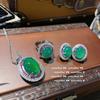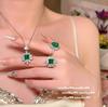 An emerald colored zircon necklace, Emerald color denier zircon opening ring one, Pair of emerald colored denier zircon earrings