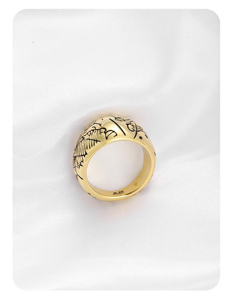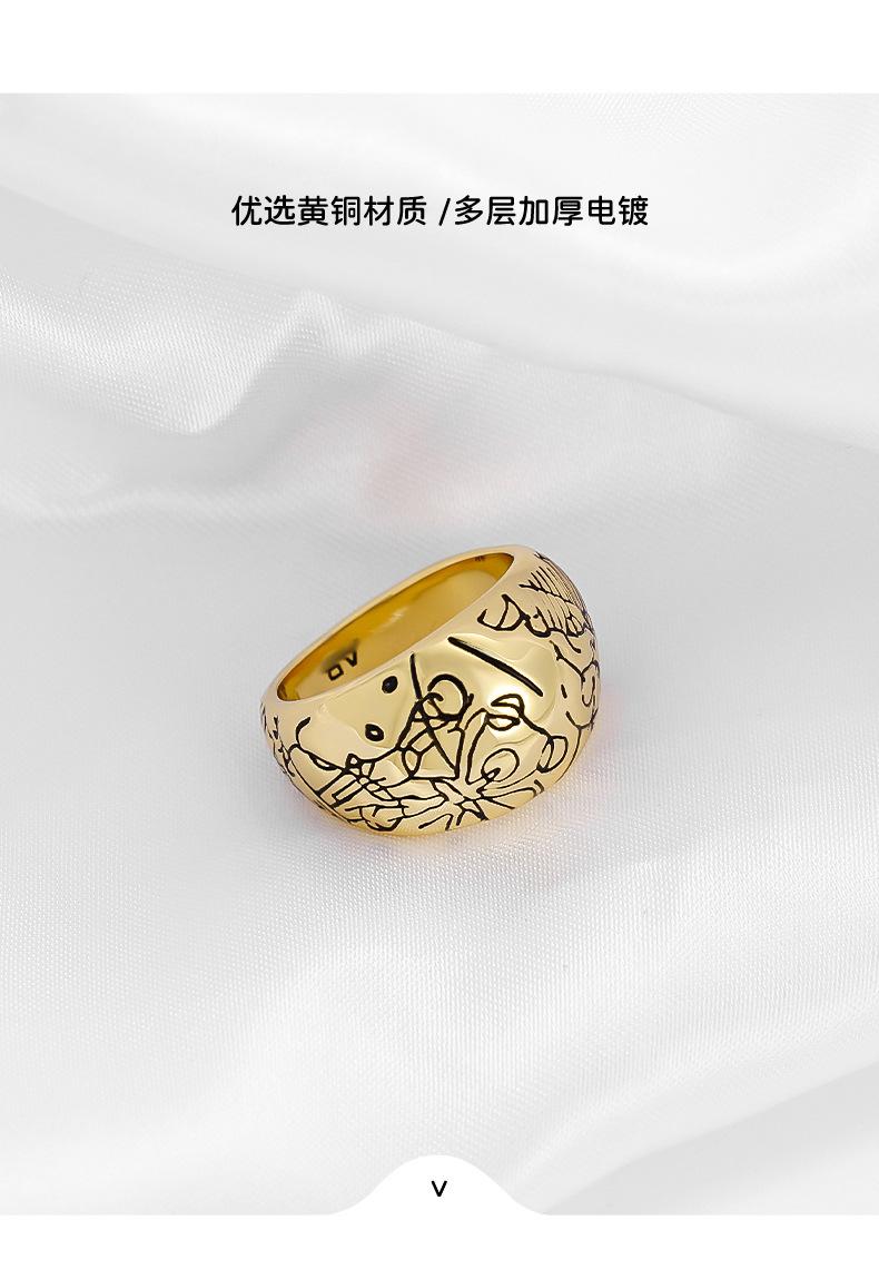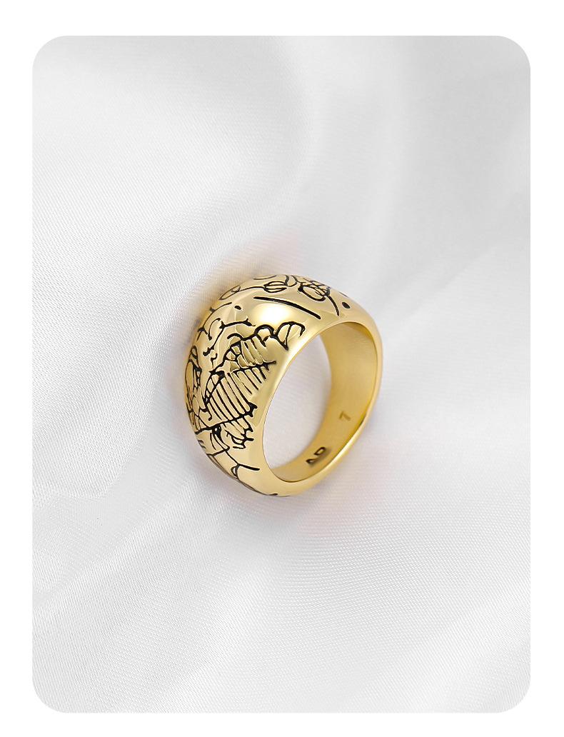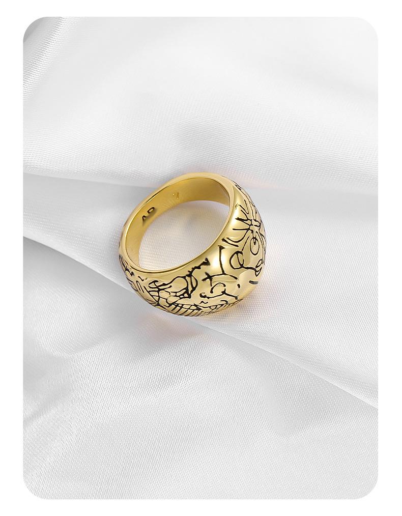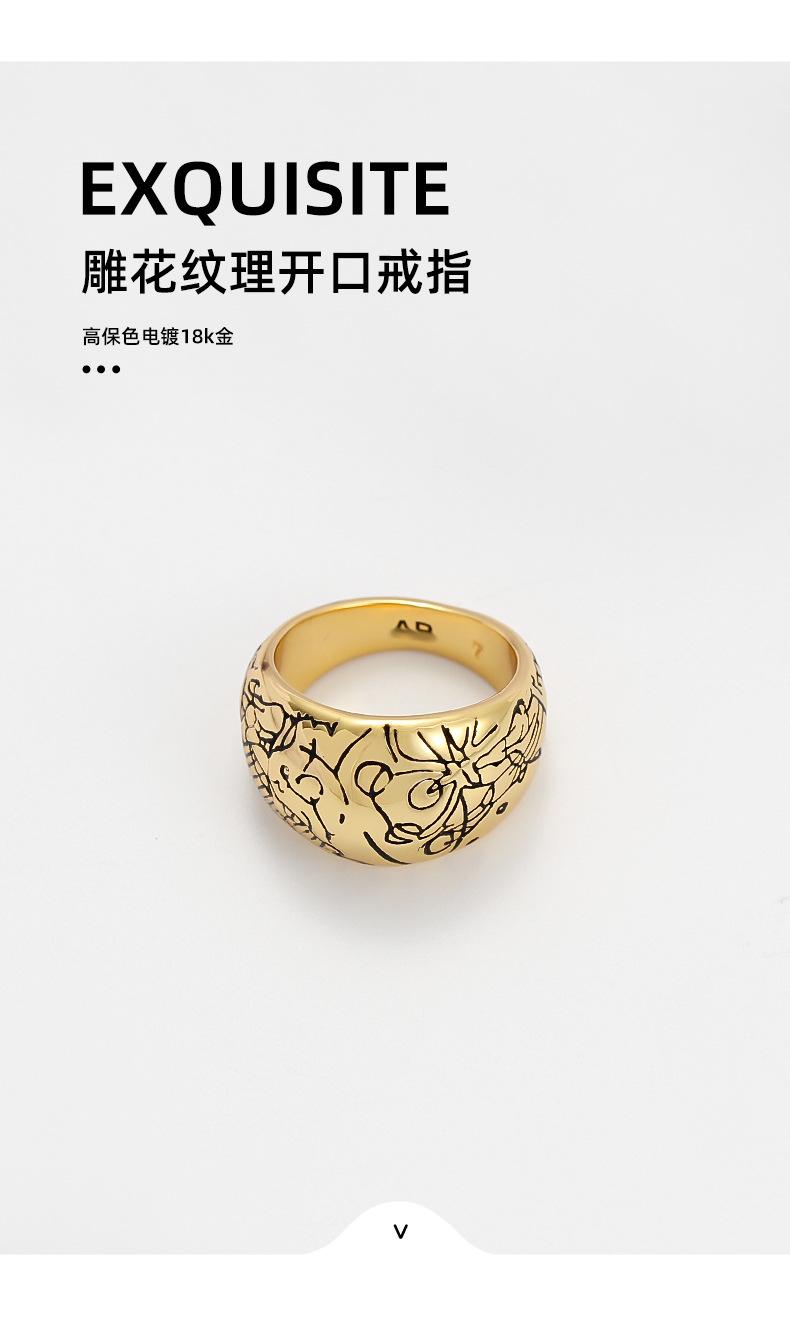 Anillo de estilo retro chapado en oro de latón con personalidad exagerada y exquisita con diseño de trazo simple AB para mujer