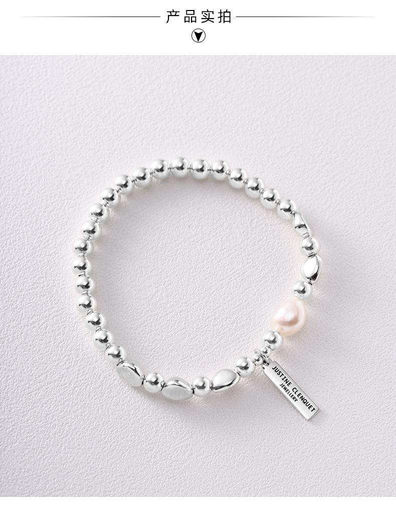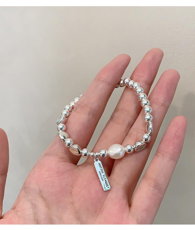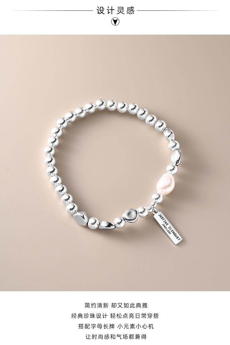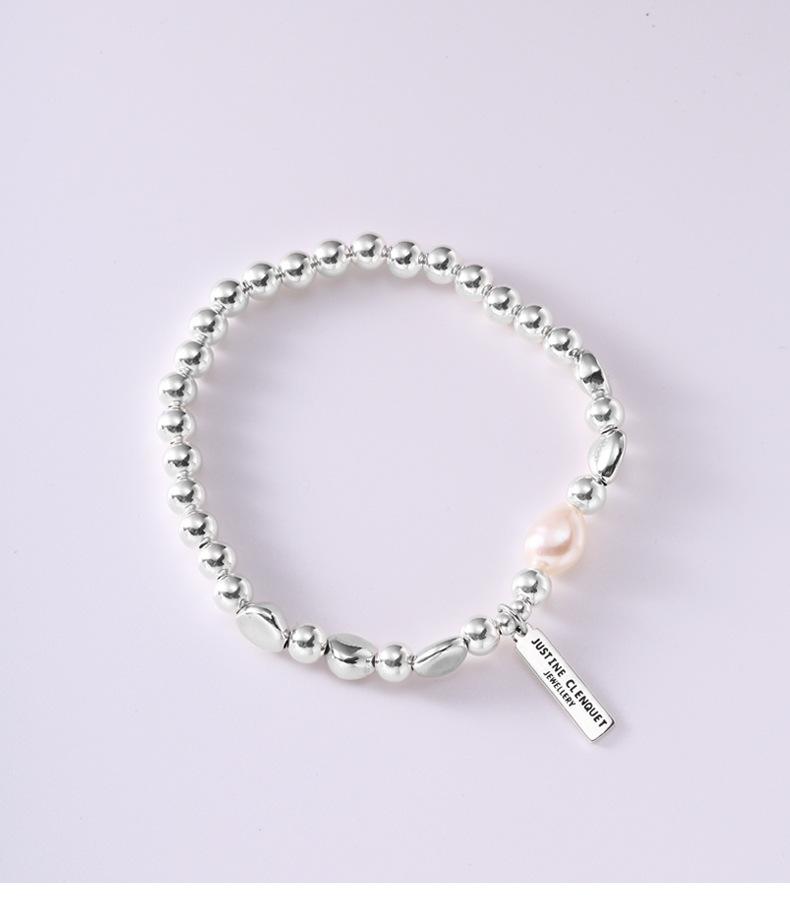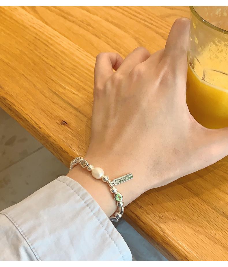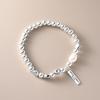 Pulsera de Plata Esterlina 925 Lucky Bean Larga con Letra de Marca para Mujer, Hecha a Mano, Diseño de Cuerda Elástica, Pulsera de Cuentas de Plata Perla B3051