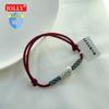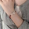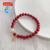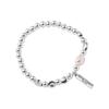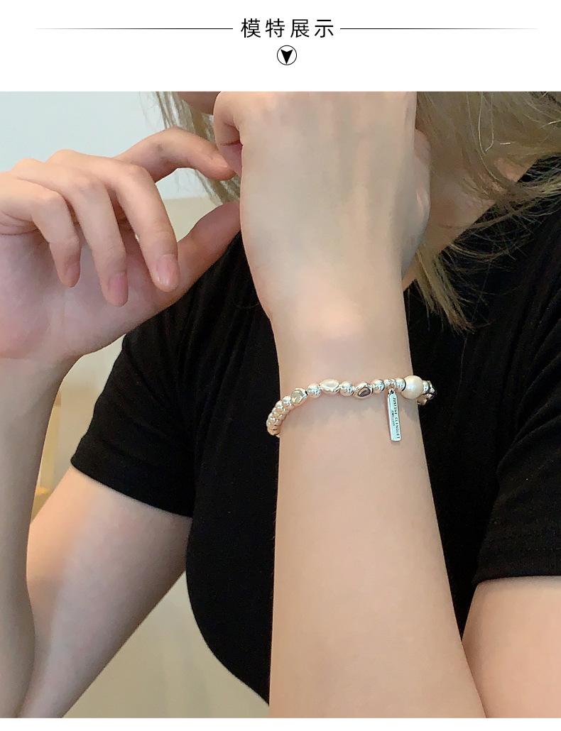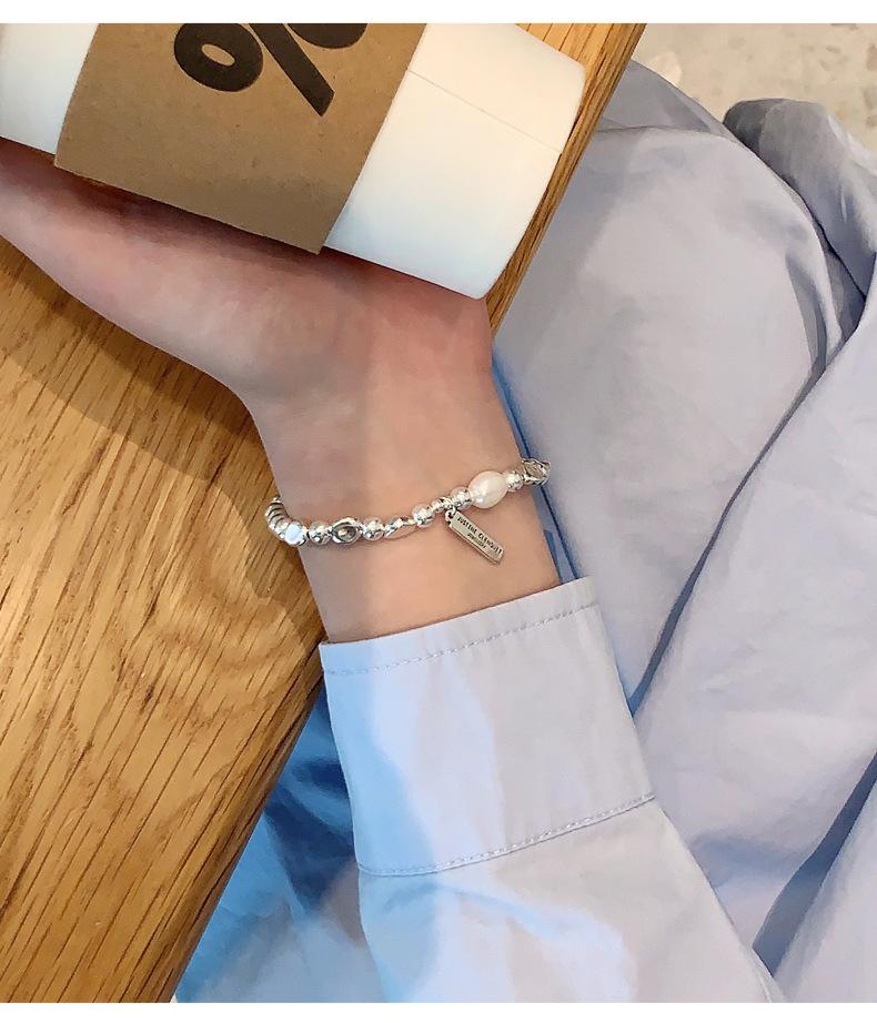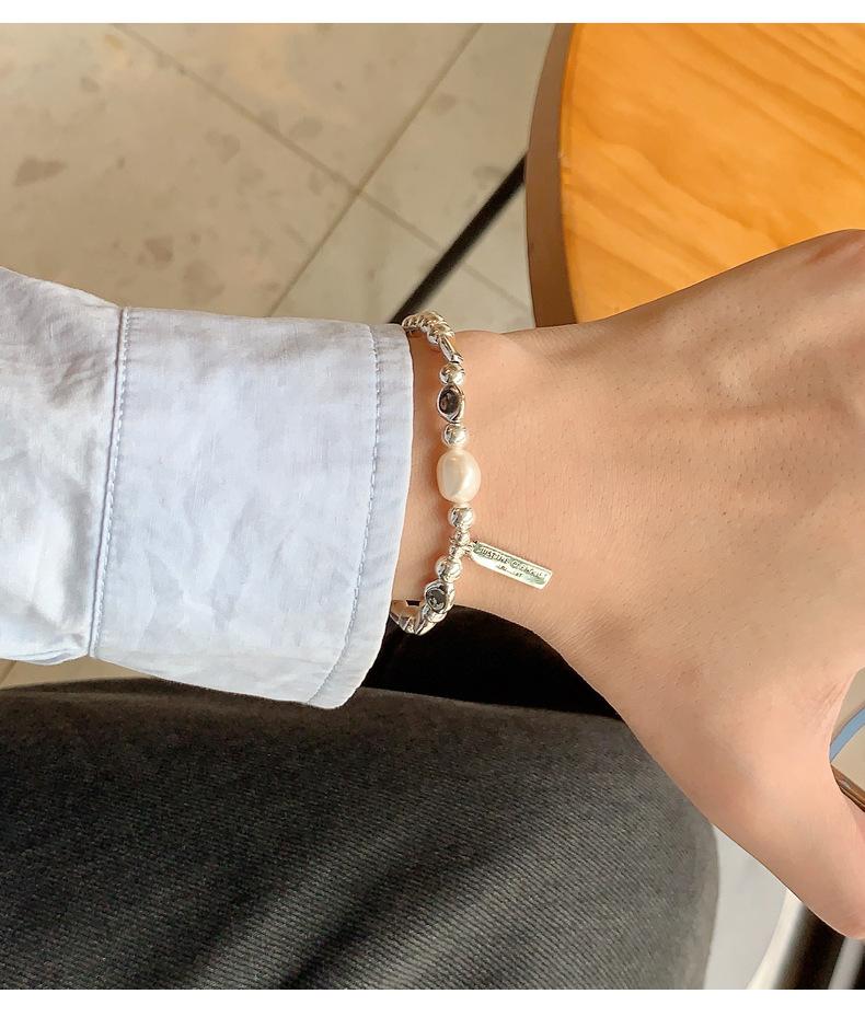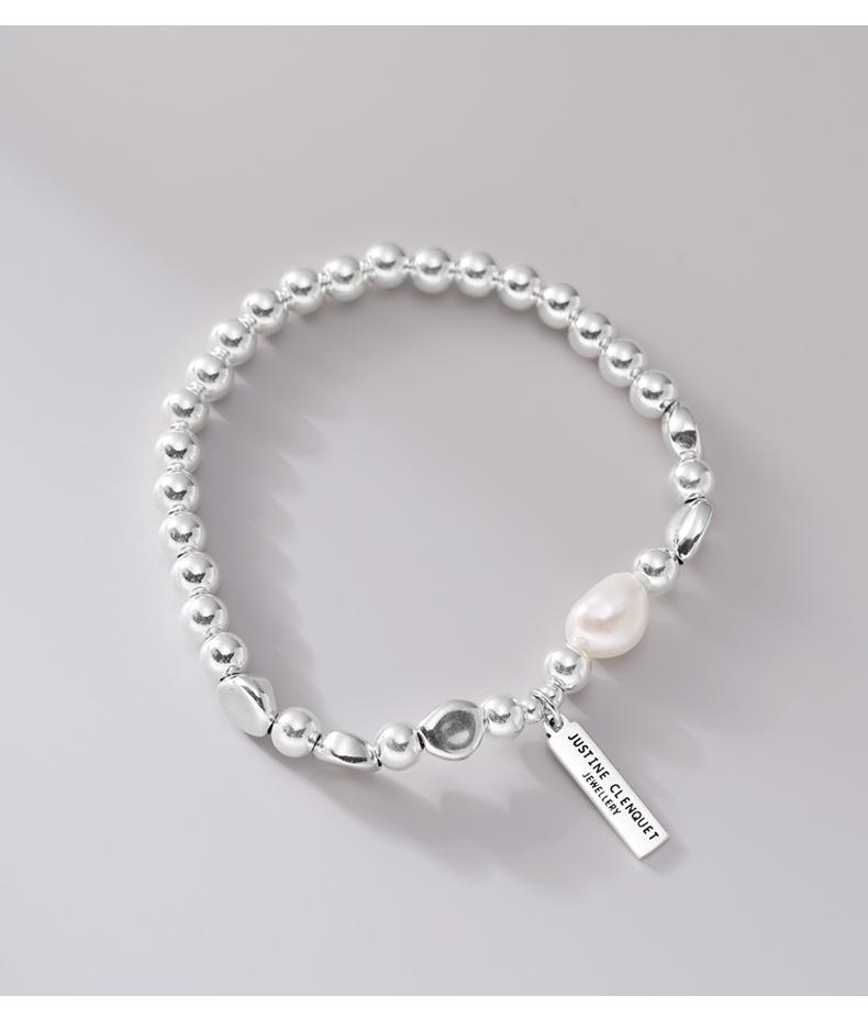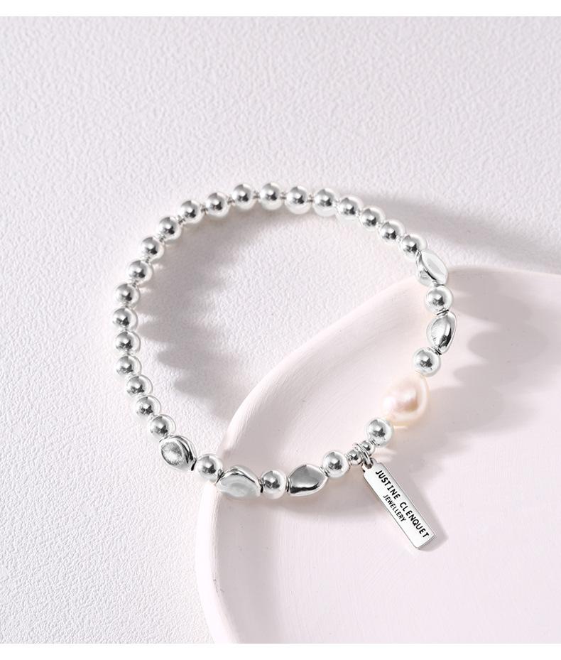 Pulsera de Plata Esterlina 925 Lucky Bean Larga con Letra de Marca para Mujer, Hecha a Mano, Diseño de Cuerda Elástica, Pulsera de Cuentas de Plata Perla B3051