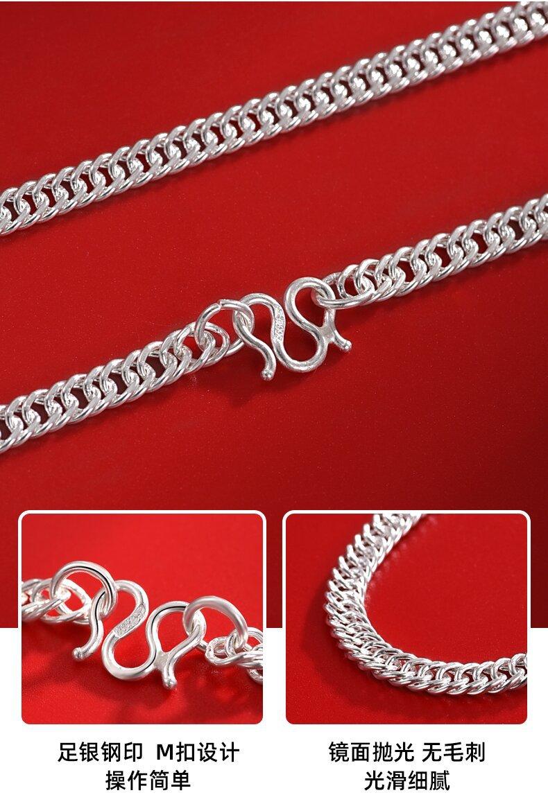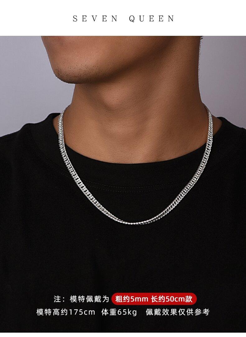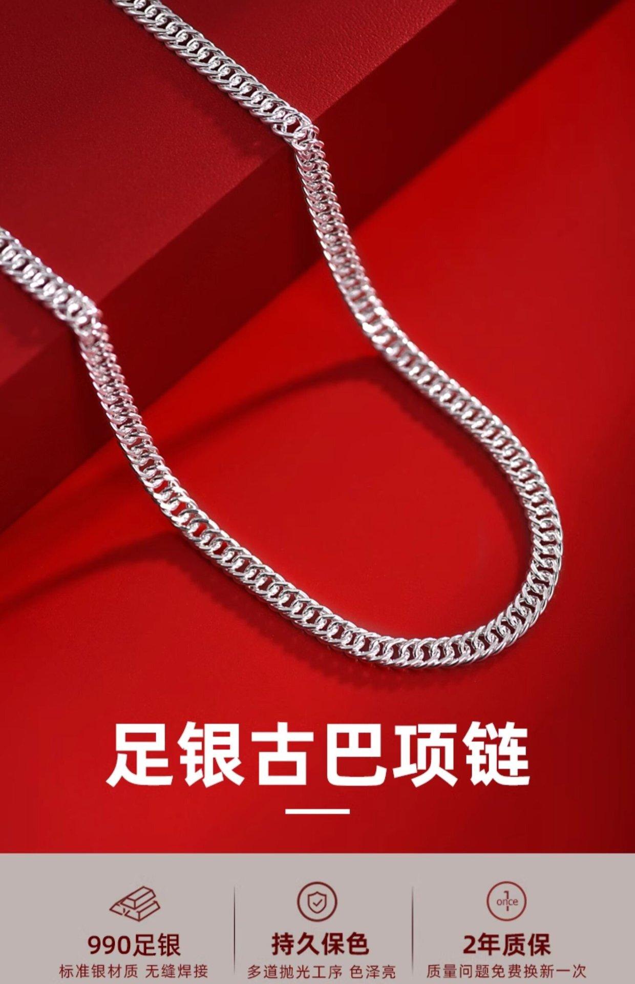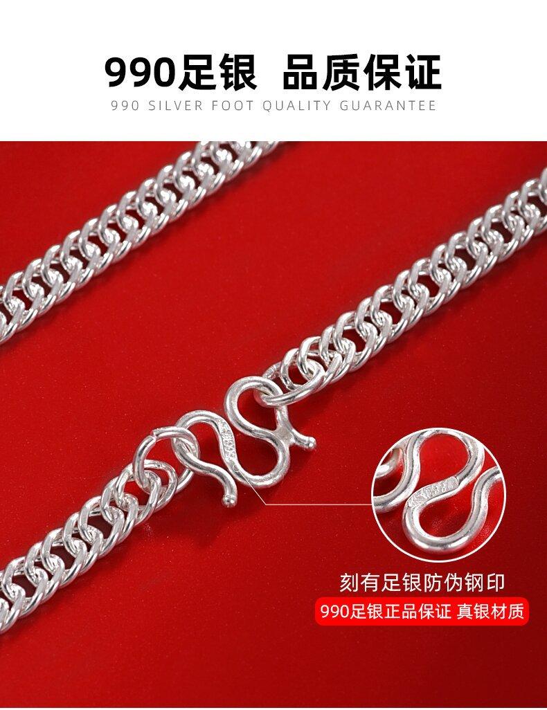 Collar de Plata Esterlina 990 Marca de Moda para Hombre Cadena de Pie de Plata Cadena Plana Cadena para Clavícula Cadena Verban Cadena Cubana para Mujer y Niño