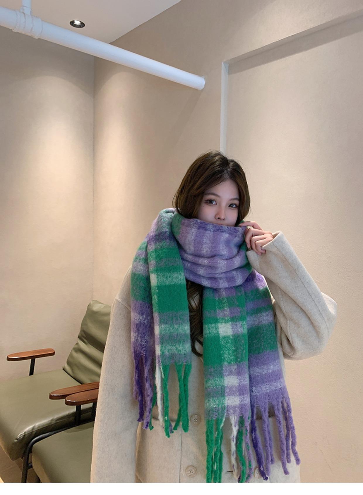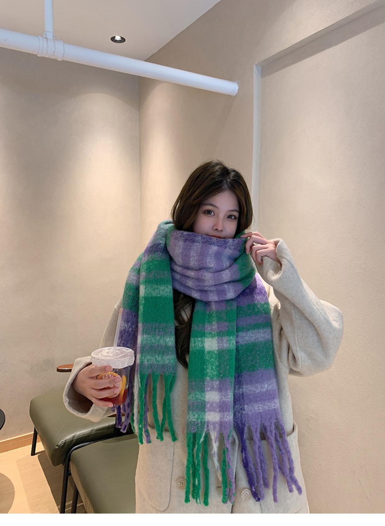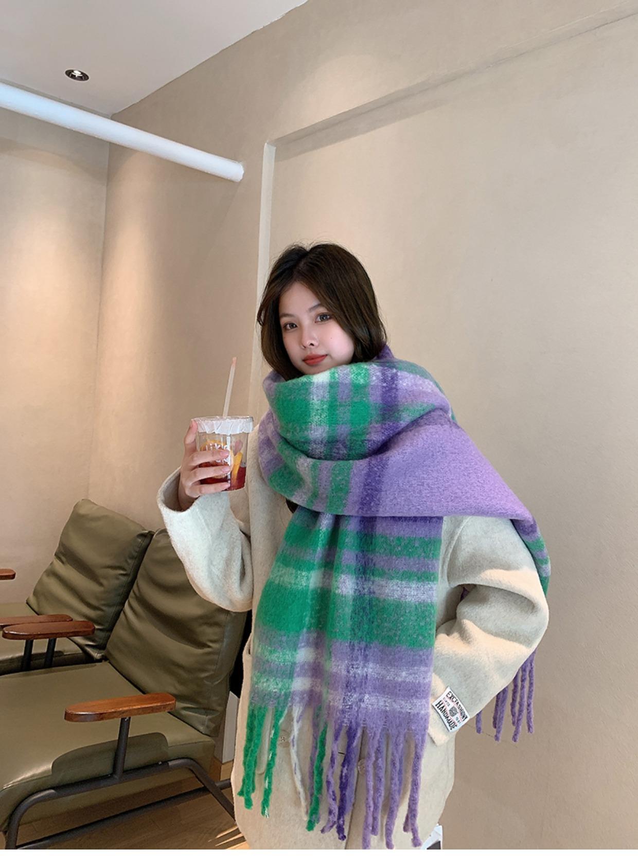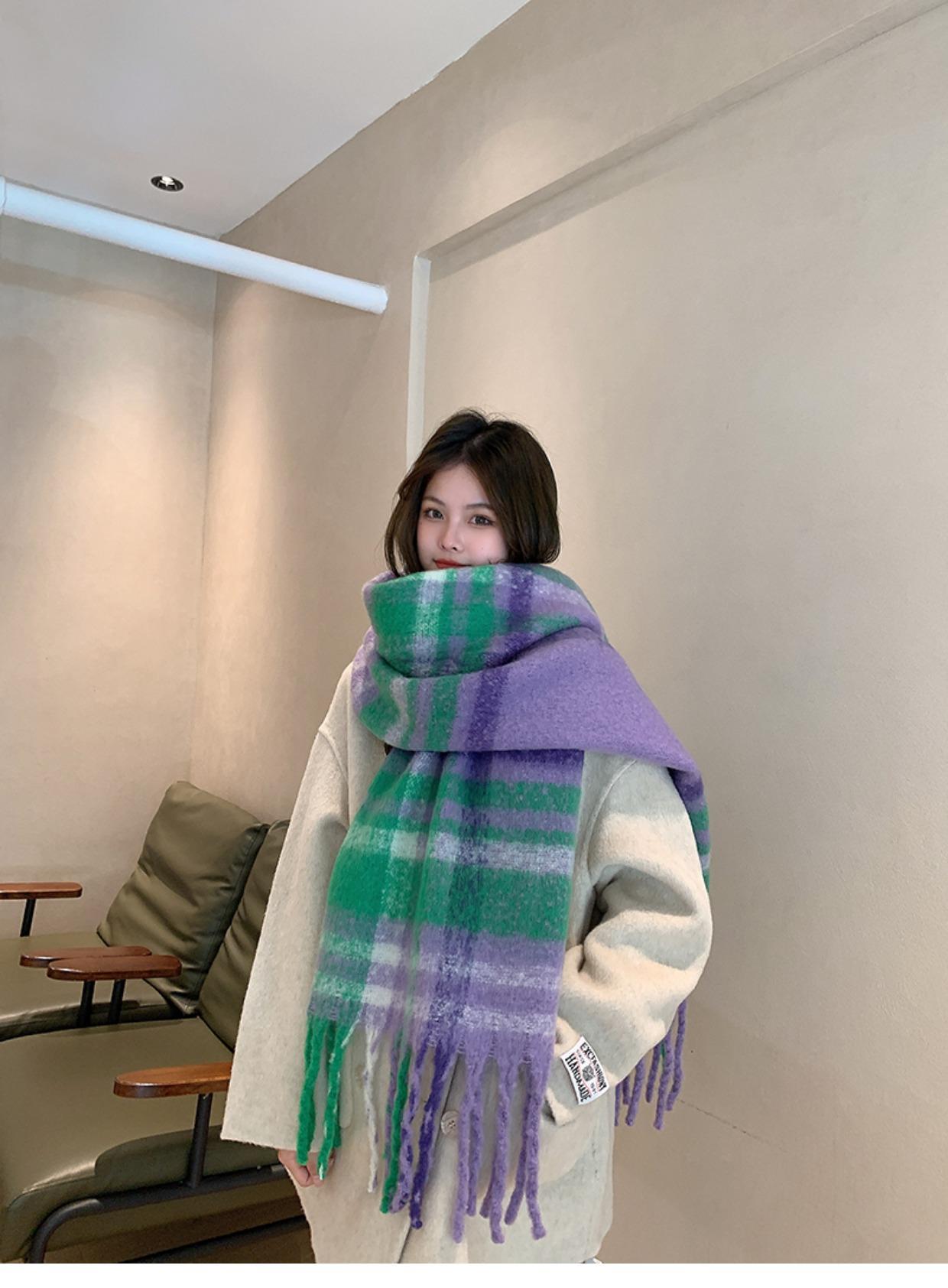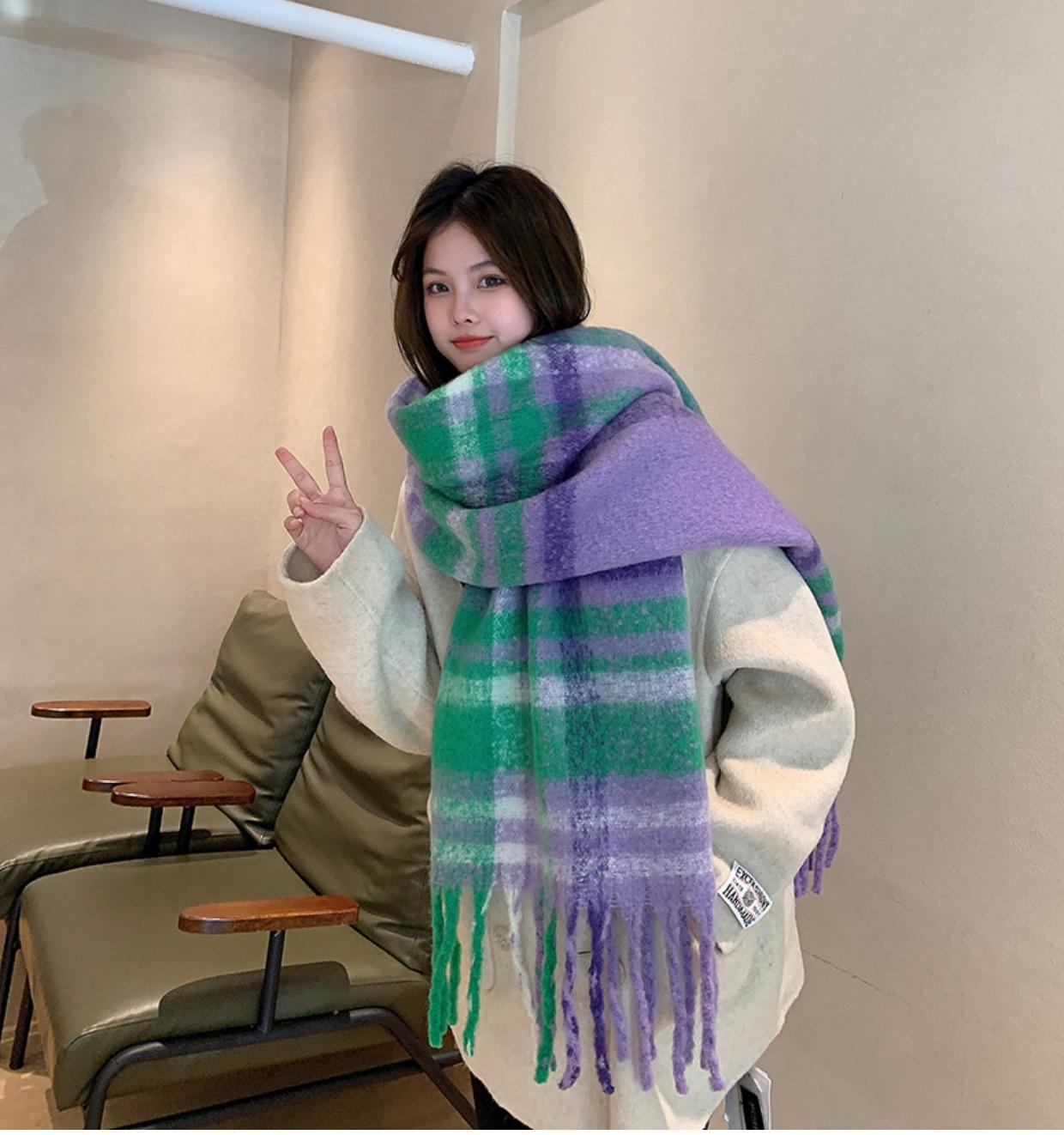 Bufanda Gruesa de Cachemira Imitación a Cuadros Arcoíris para Otoño e Invierno, Cálida para el Cuello, Chal Grueso para Parejas de Estudiantes