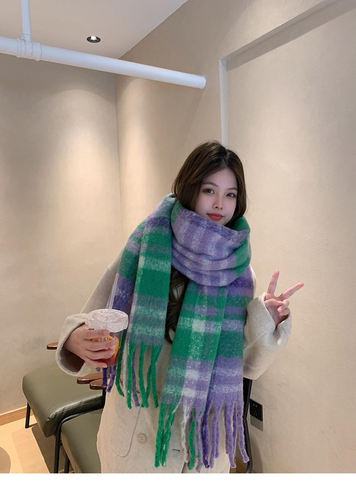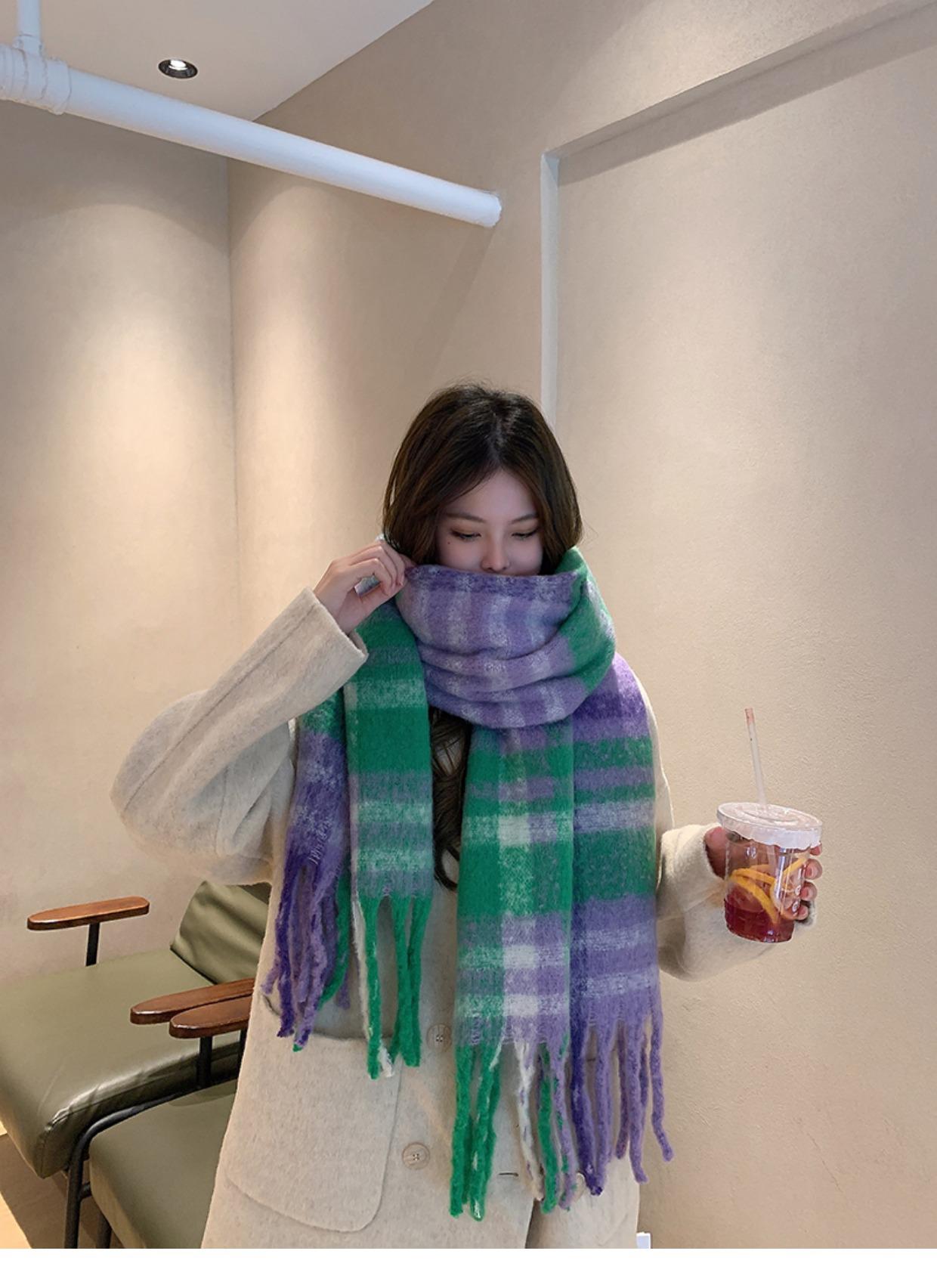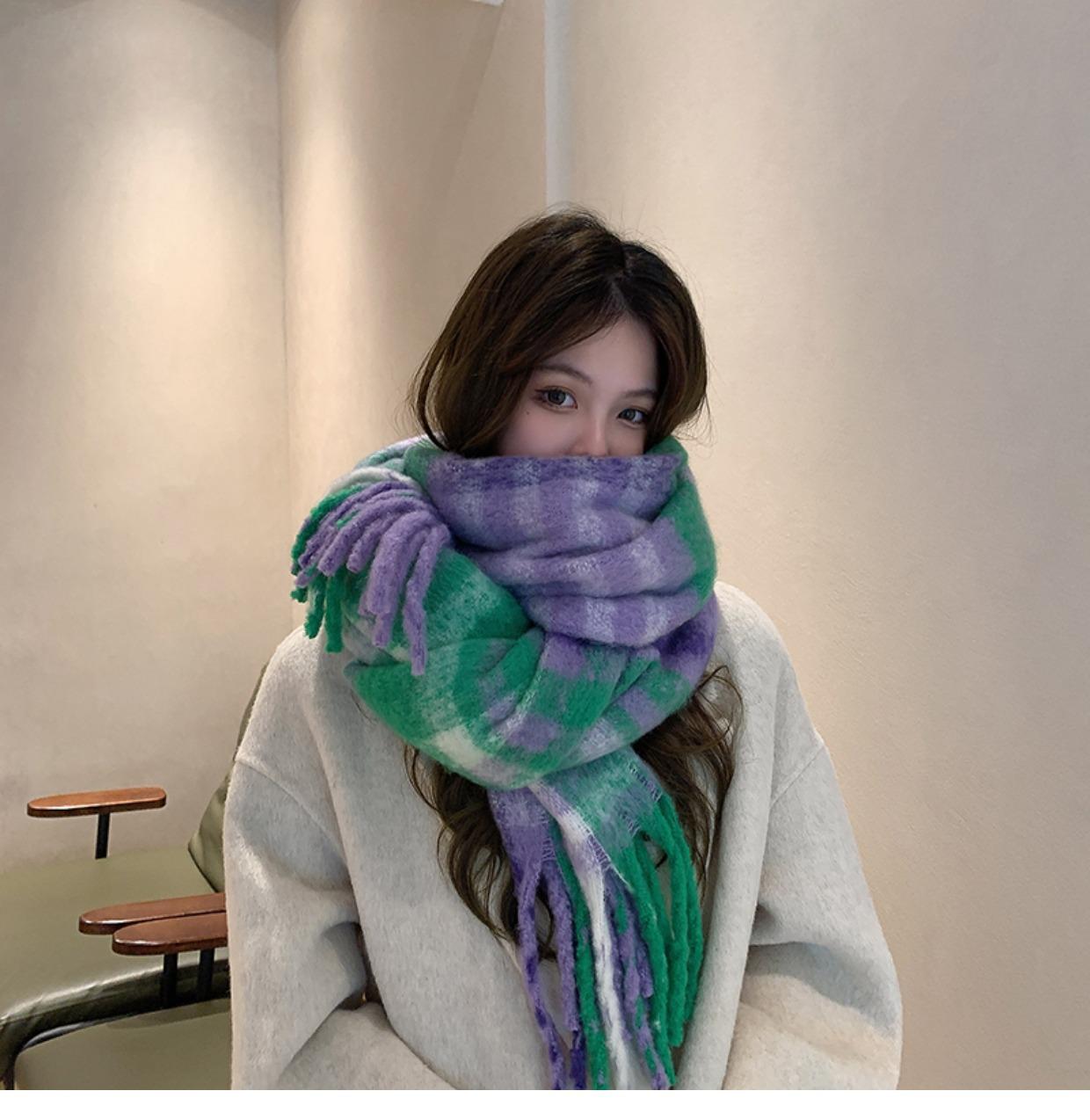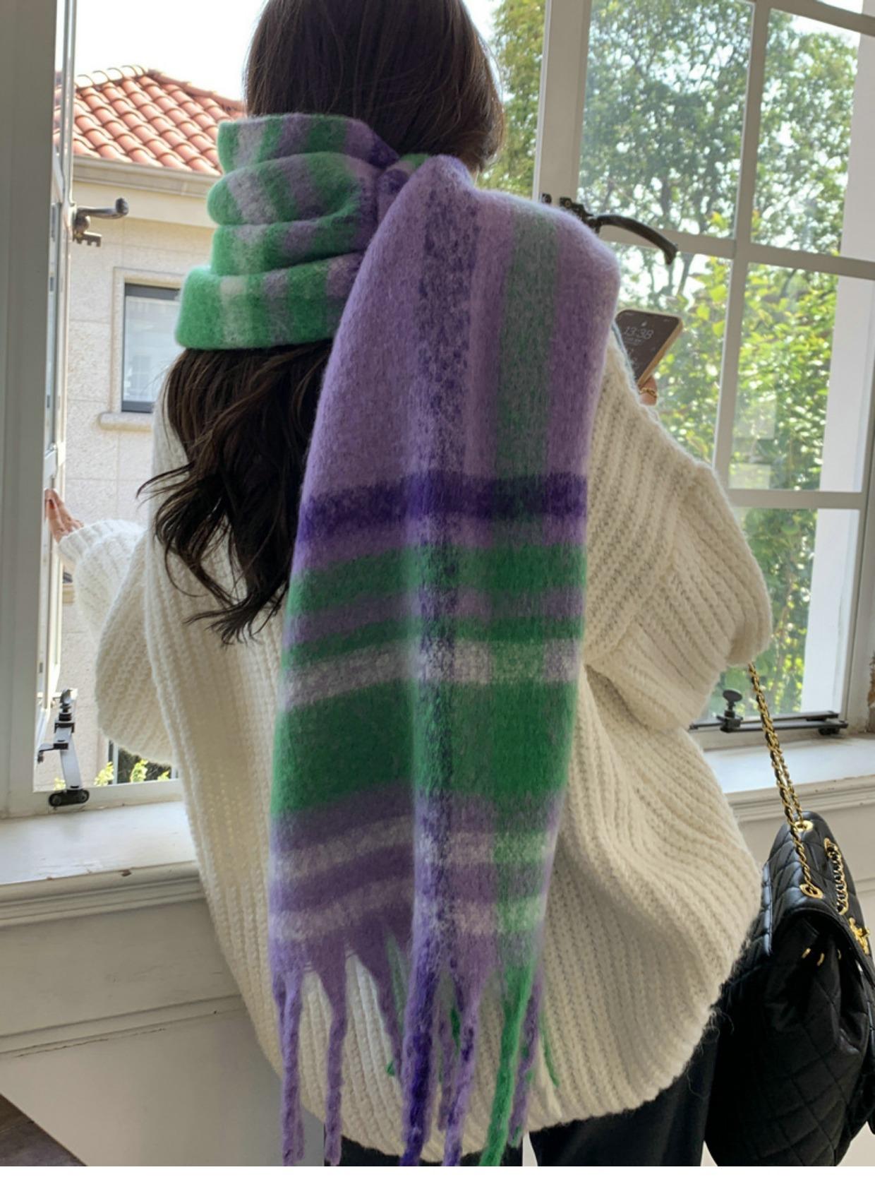 Bufanda Gruesa de Cachemira Imitación a Cuadros Arcoíris para Otoño e Invierno, Cálida para el Cuello, Chal Grueso para Parejas de Estudiantes