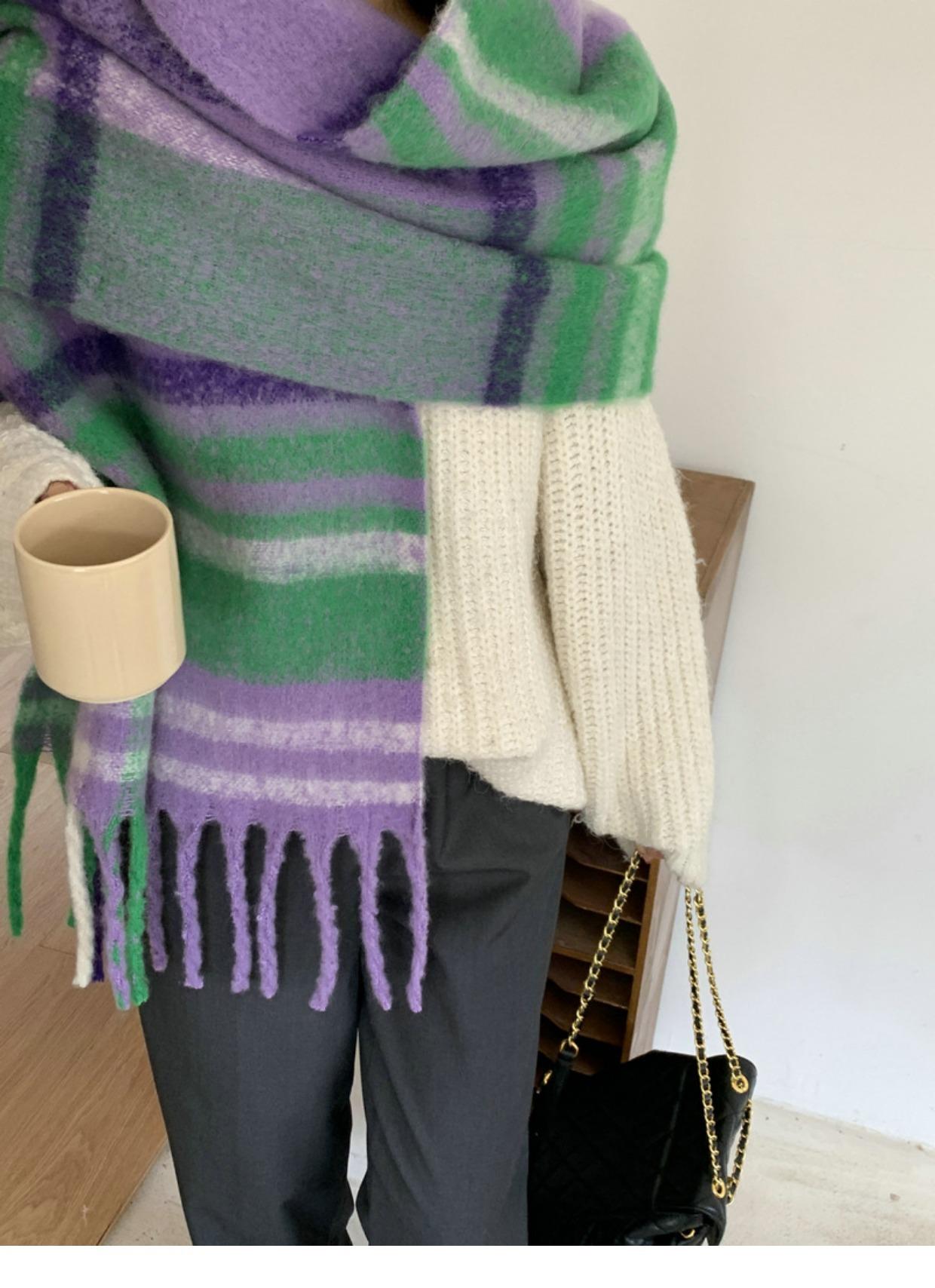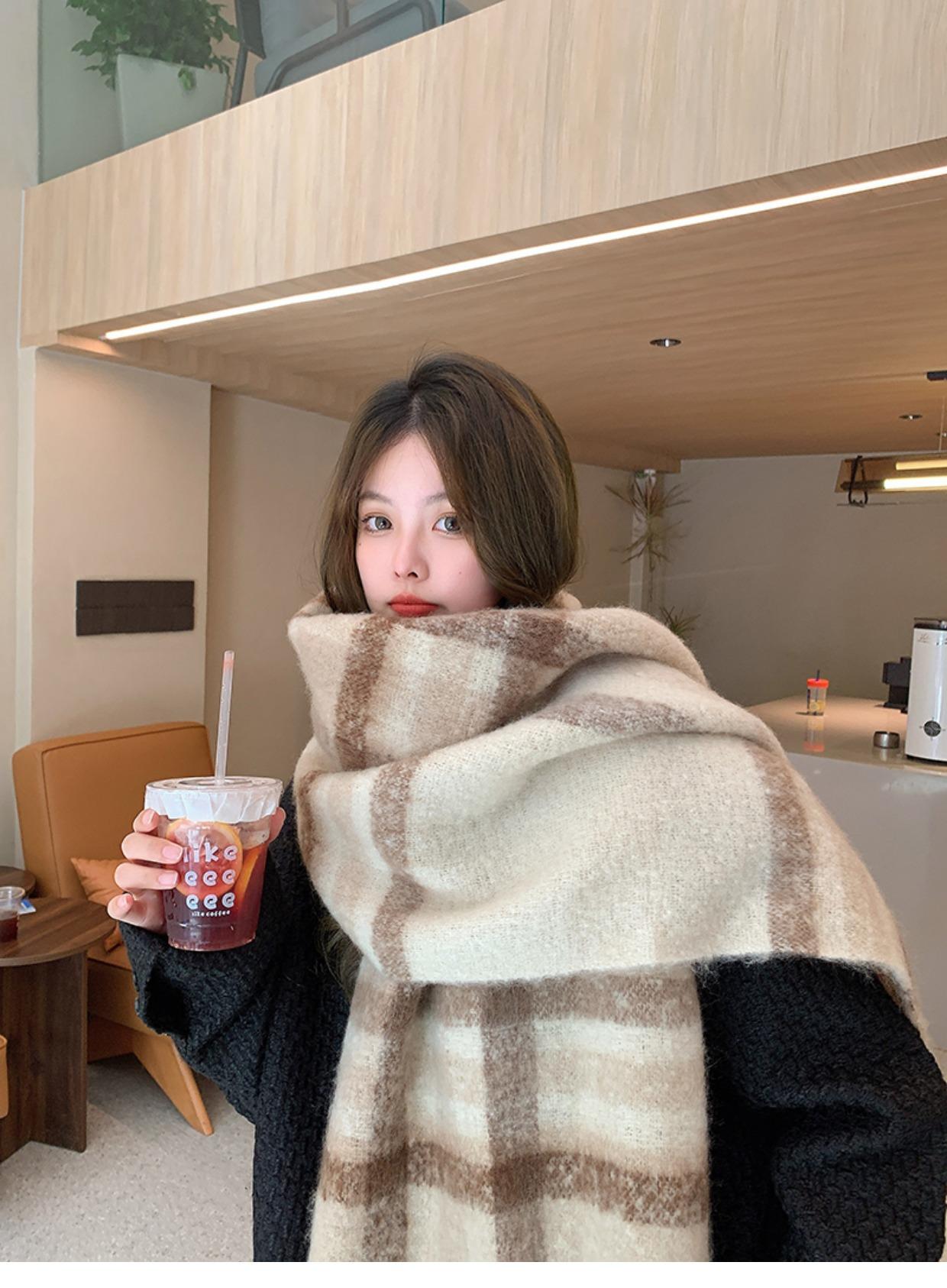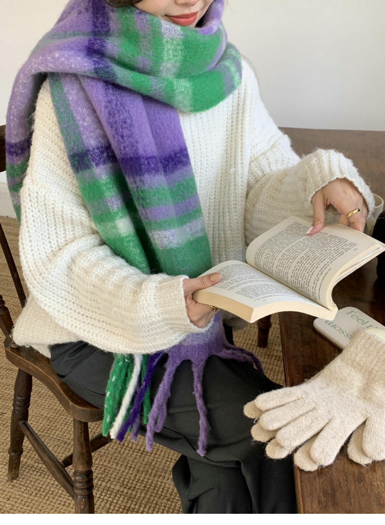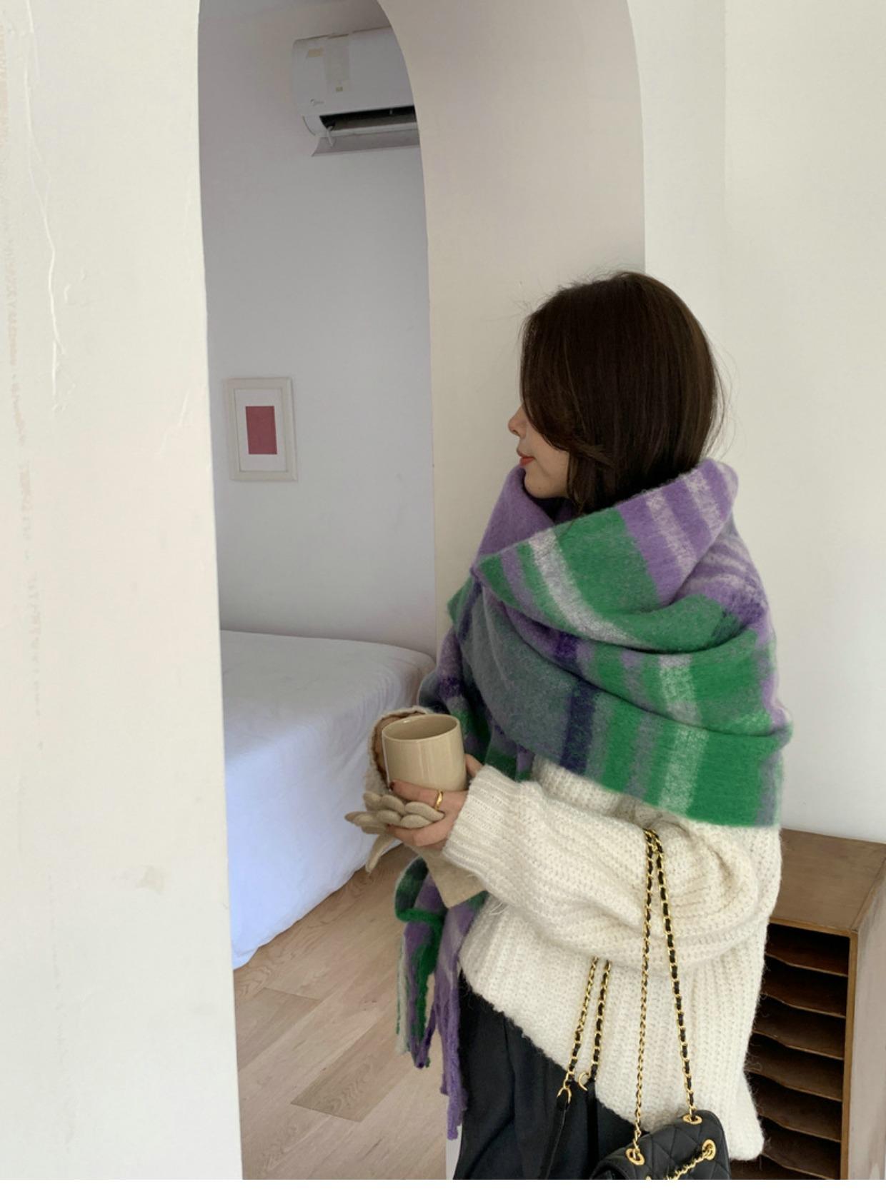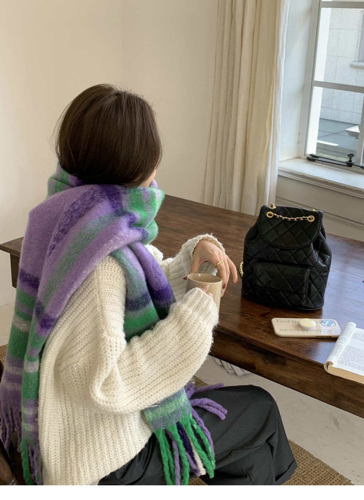 Bufanda Gruesa de Cachemira Imitación a Cuadros Arcoíris para Otoño e Invierno, Cálida para el Cuello, Chal Grueso para Parejas de Estudiantes