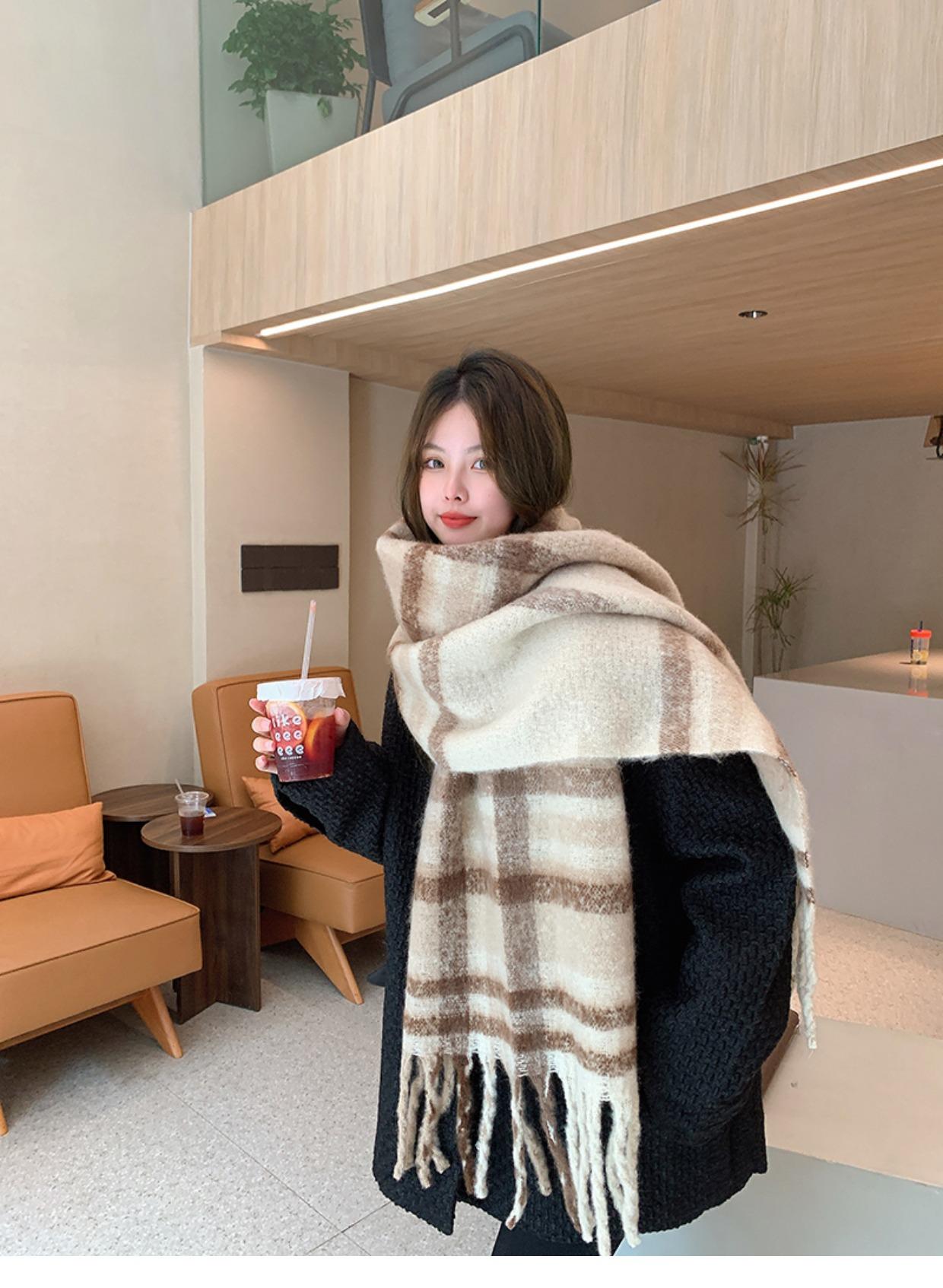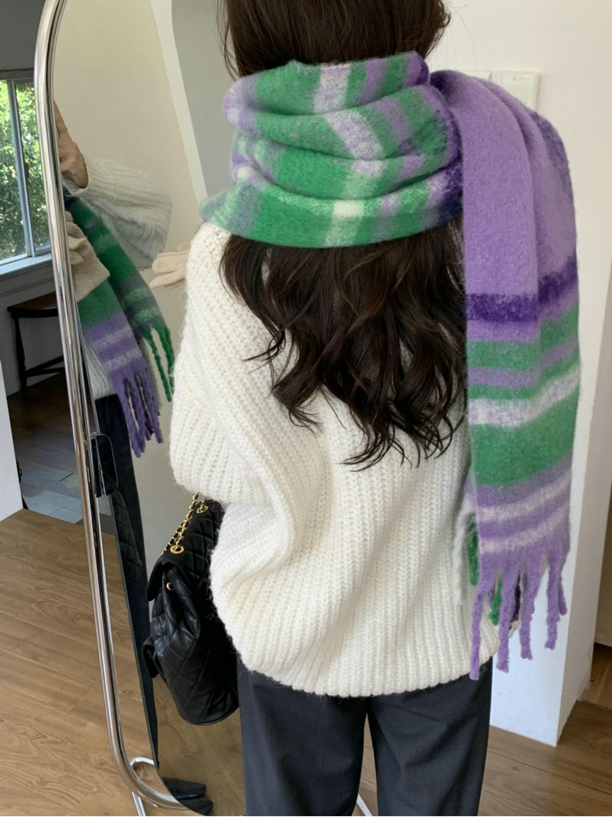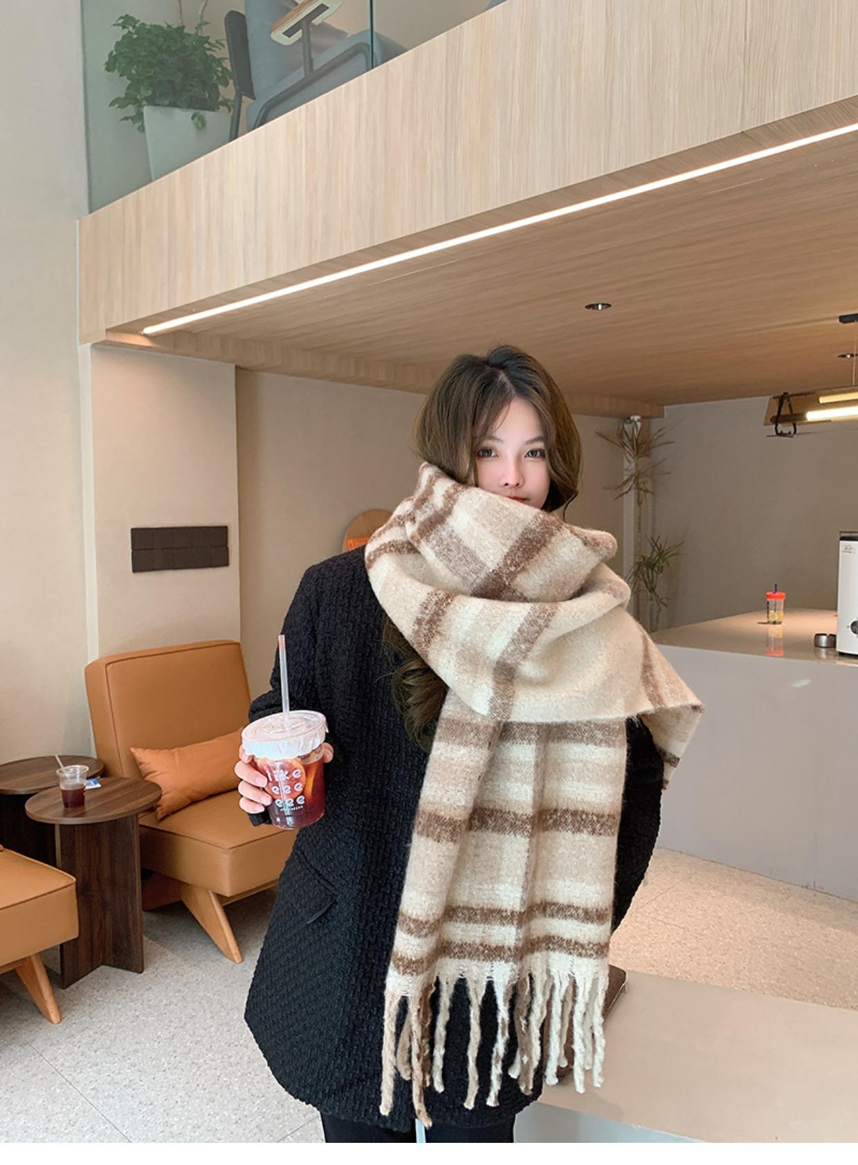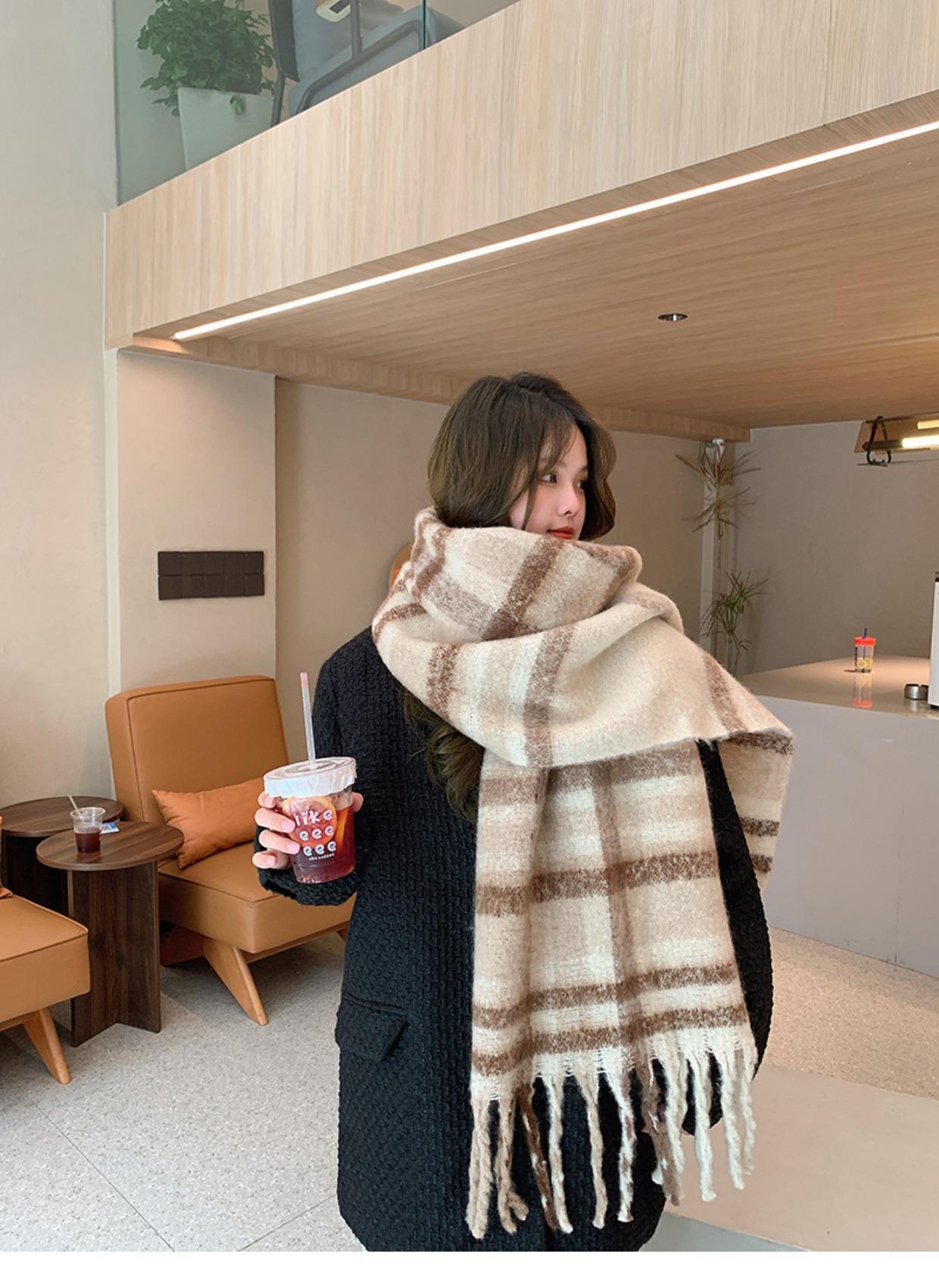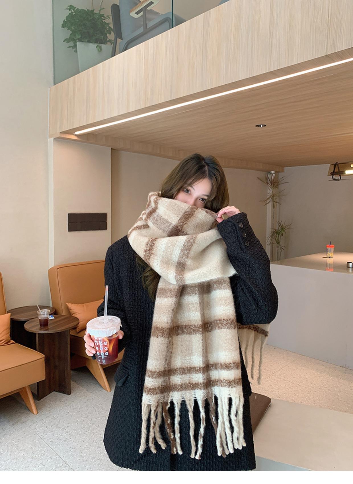 Bufanda Gruesa de Cachemira Imitación a Cuadros Arcoíris para Otoño e Invierno, Cálida para el Cuello, Chal Grueso para Parejas de Estudiantes