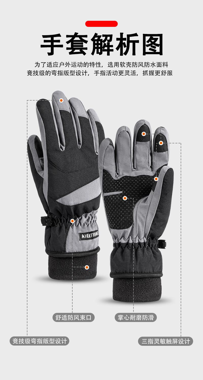 Guantes de esquí cálidos para deportes al aire libre en invierno, resistentes al viento y al agua, guantes de montar acolchados de terciopelo con pantalla táctil, guantes cálidos