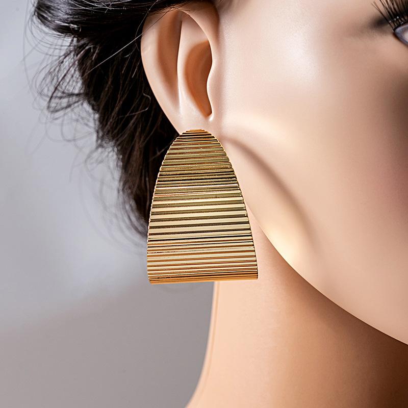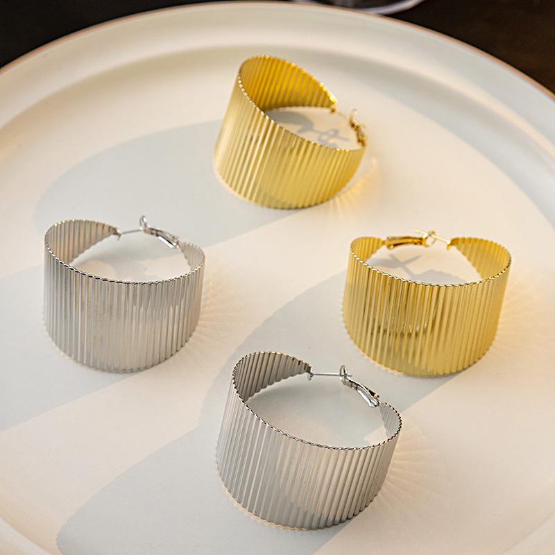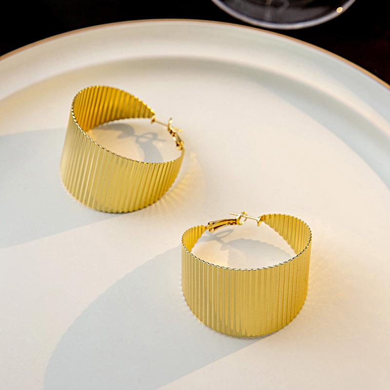 Aretes Europeos y Americanos Retro Exagerados Distintivos en forma de C Aretes Geométricos Redondos con Sentido Avanzado Aretes Distintivos con Patrón de Onda Aretes Dorados