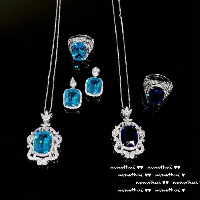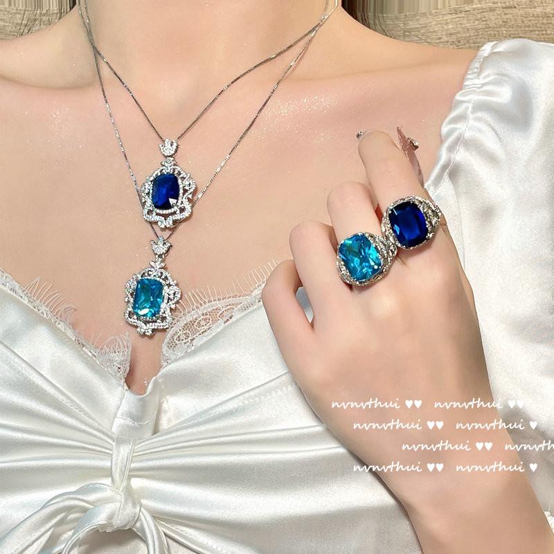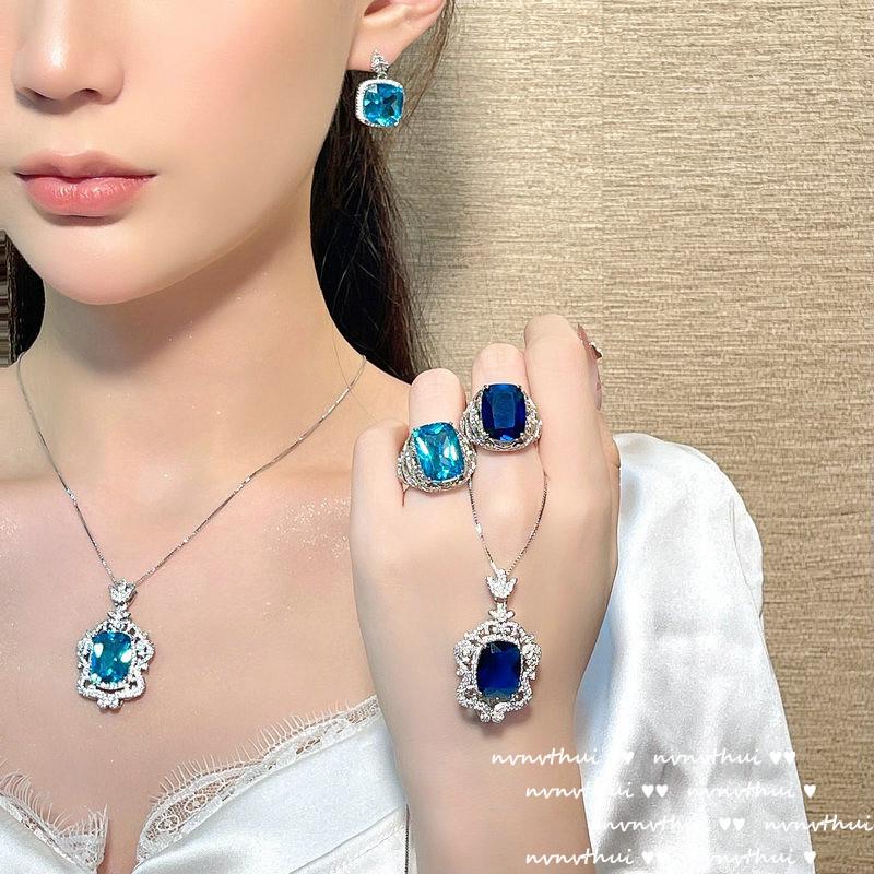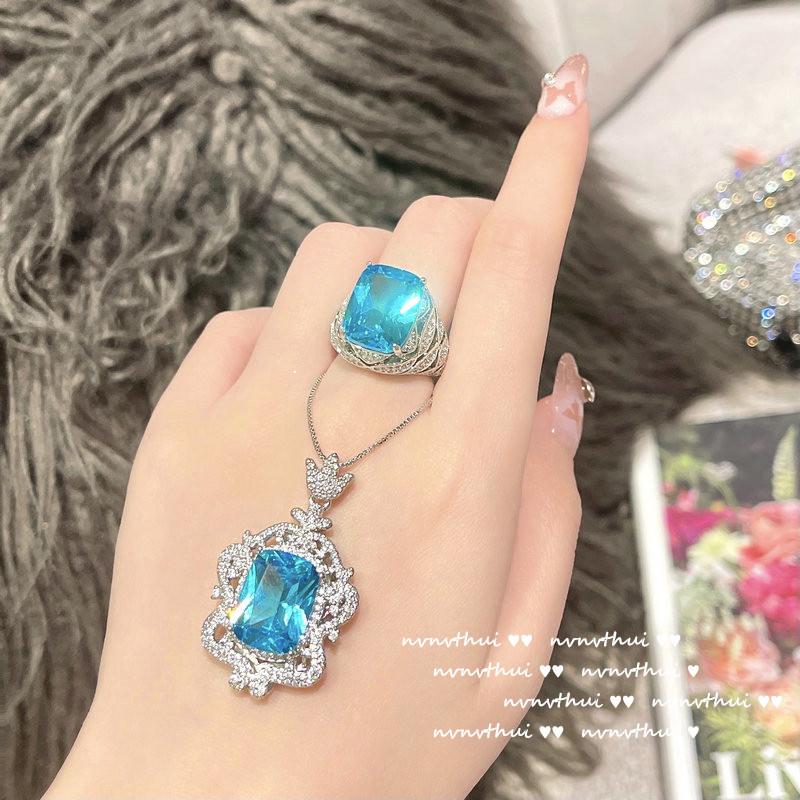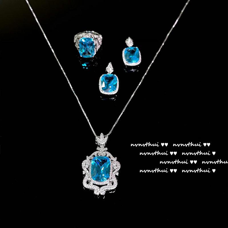 069F Aqua Blue Zircon Iris Necklace, 069F Aqua Blue Zircon Iris Open Ring, 069F aqua blue zircon arrow earring...