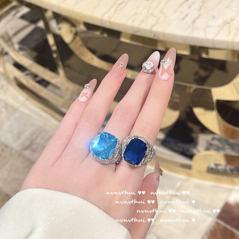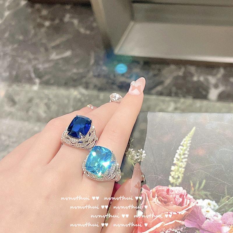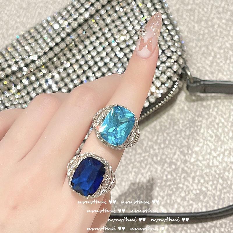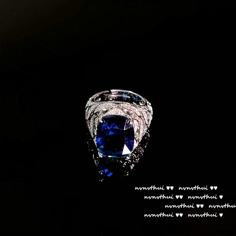 Anillo de zafiro de agua Julianne, diseño chapado en oro de 18 quilates, color azul marino intenso, con circonita y hebilla de iris.
