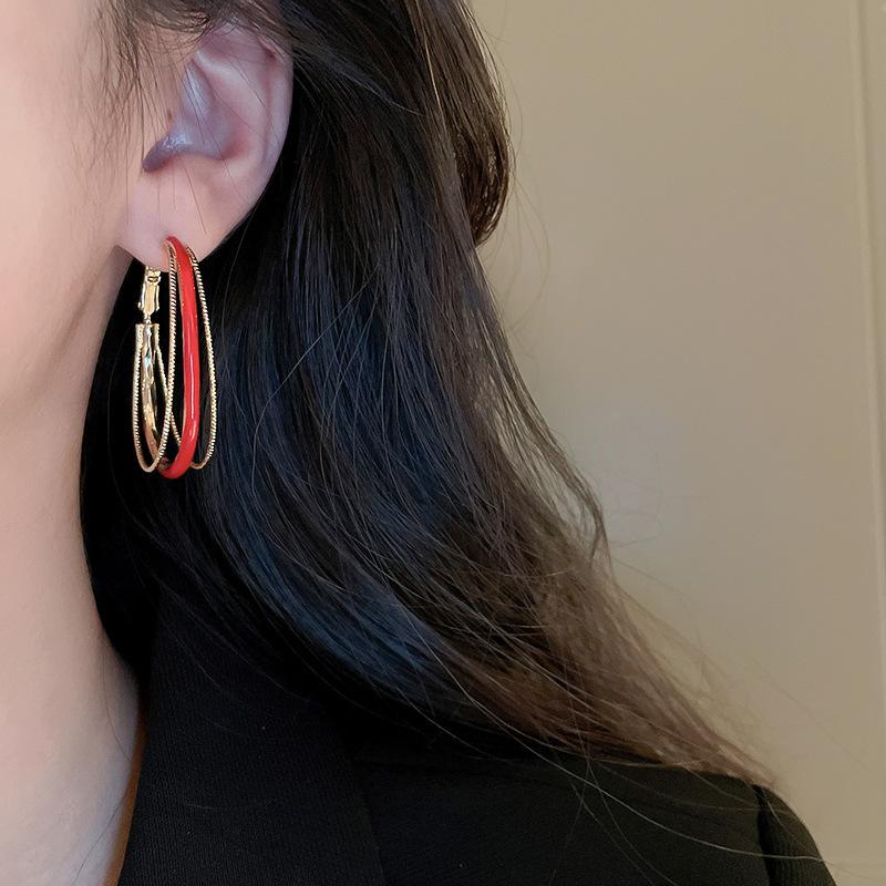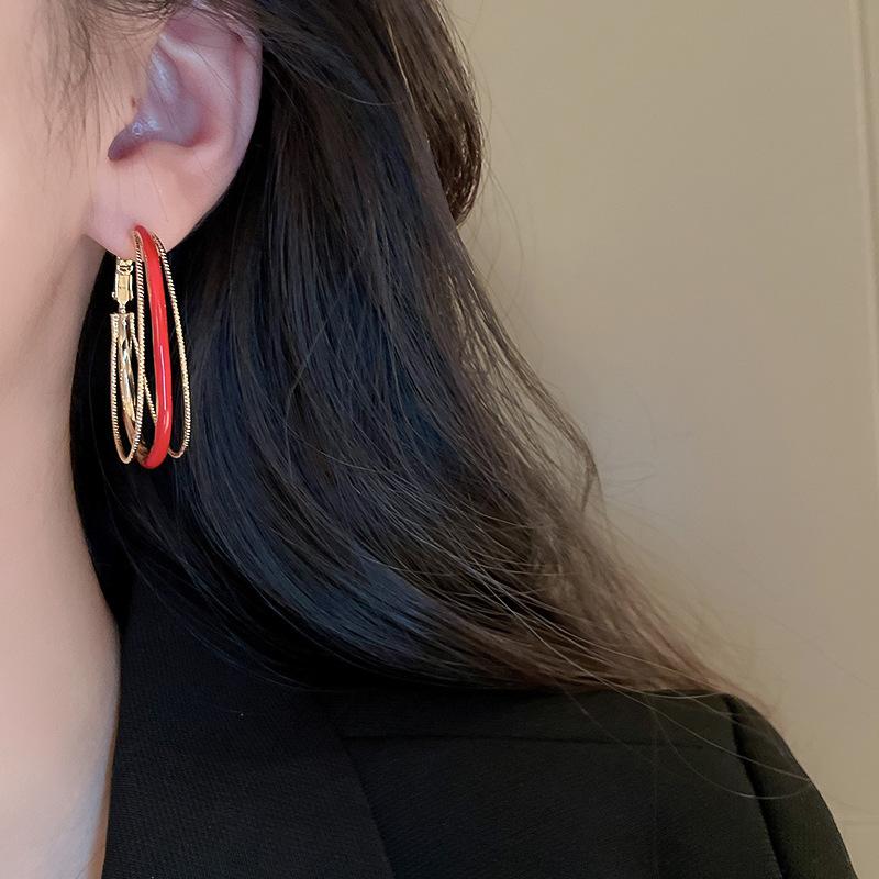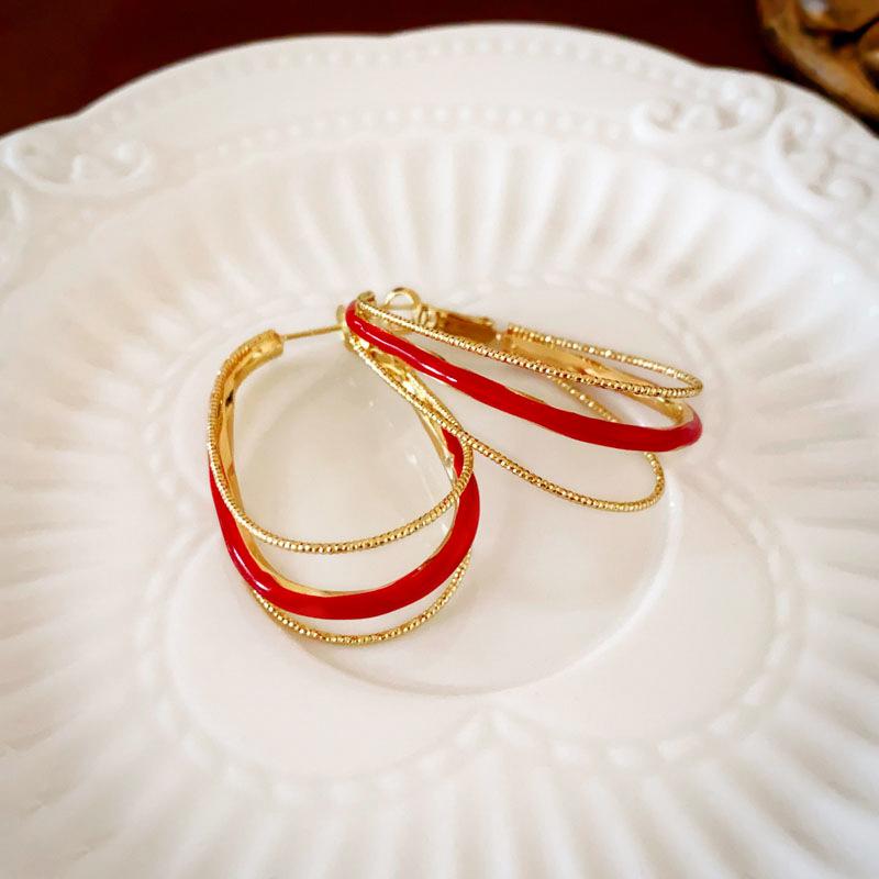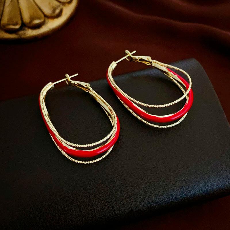 Aretes Vintage de Goteo de Aceite Geométricos Ovalados Multicapa de Aguja de Plata Aretes de Moda Simples Nicho Elegantes Celebridad de Internet de Gama Alta para Mujer
