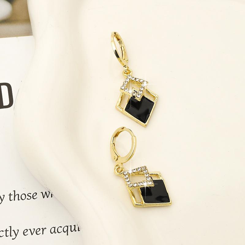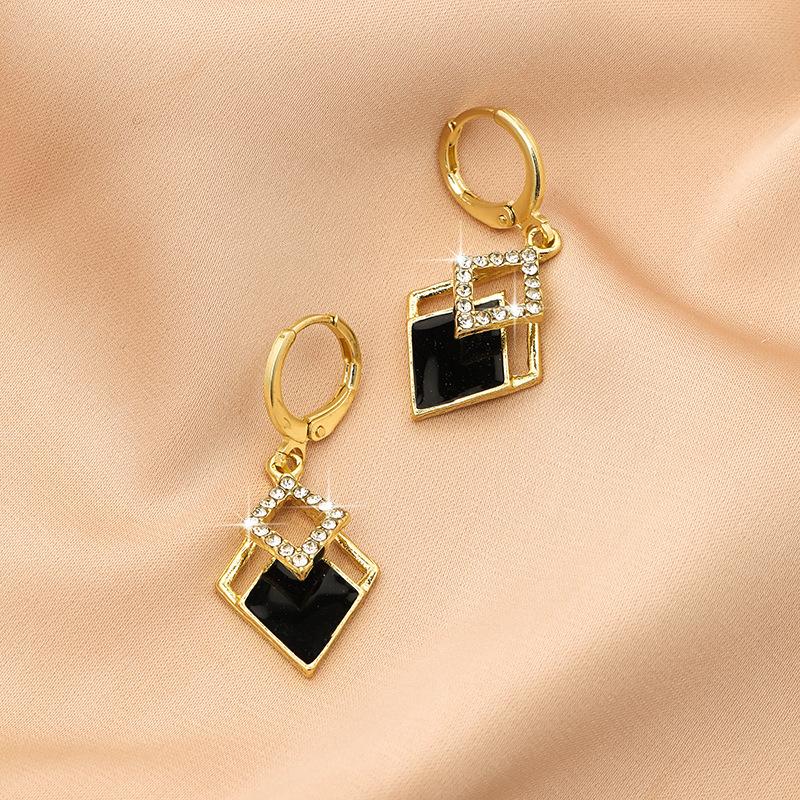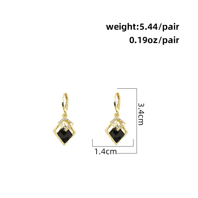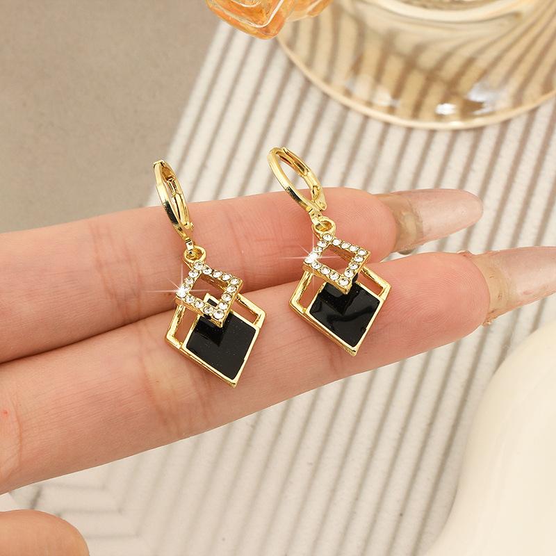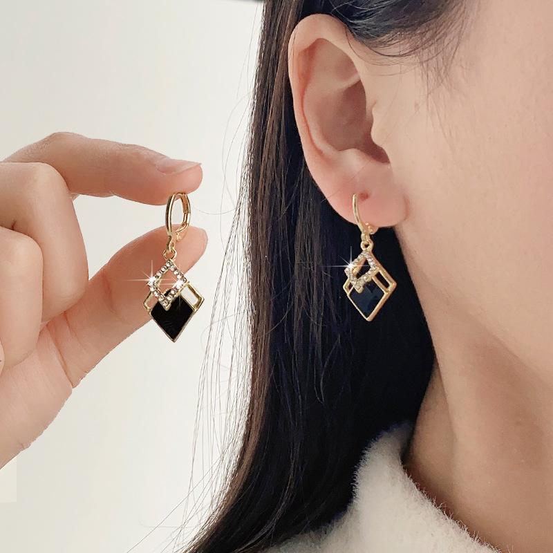 Compra Pendientes compactos personalizados de moda japoneses y coreanos, nuevos y modernos, pendientes elegantes con doble diamante negro y diseño de nicho. al por mayor en Joom.pro