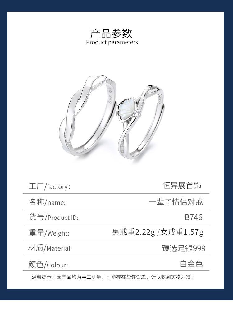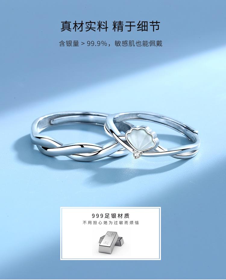 Un Anillo de Pareja Beizi para Hombres y Mujeres un Par de Plata Esterlina 999 Nuevo Anillo de Pareja Creativo Coreano Regalo Conmemorativo