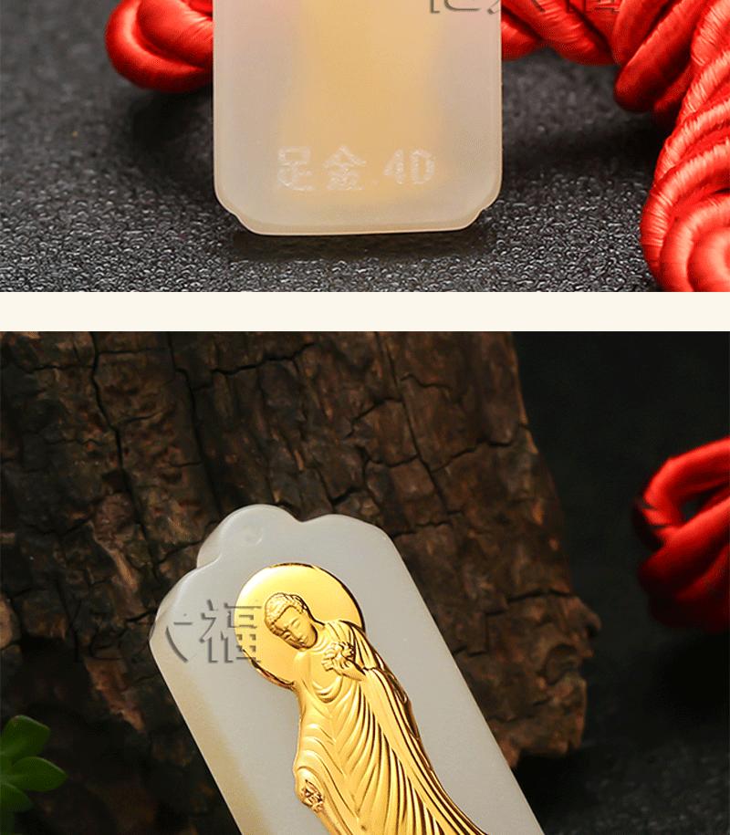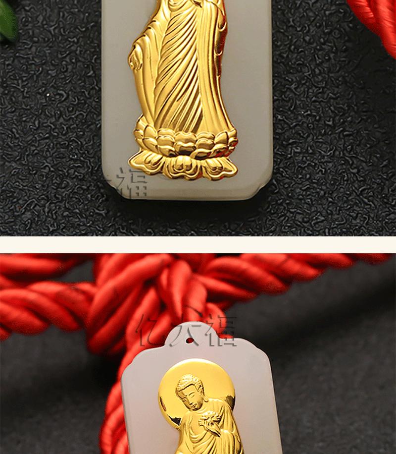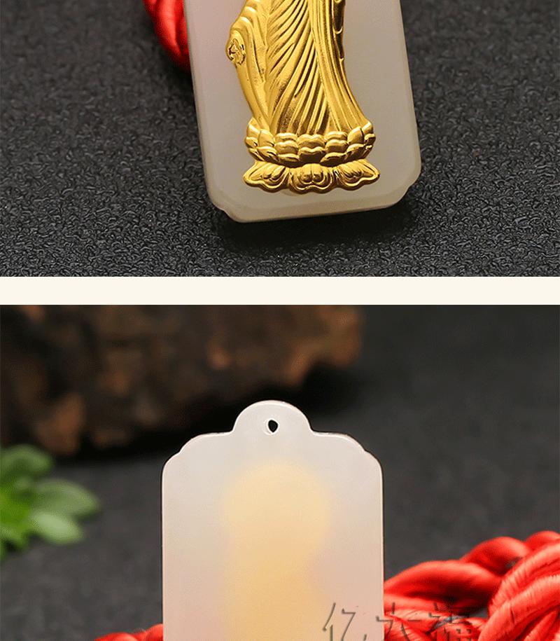 Nuevo colgante Namo Amitabha de jade blanco 999, oro y jade, para hombre y mujer. Oferta de seguro.