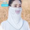 Mascarilla de protección solar de malla de seda de hielo para mujer, transpirable, lavable, con estampado simple, para proteger los ojos y facilitar la respiración.