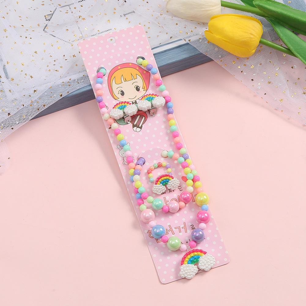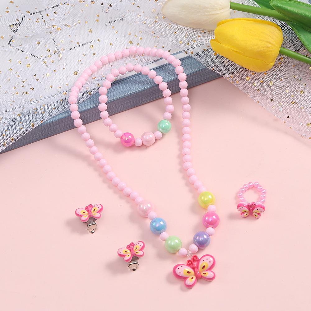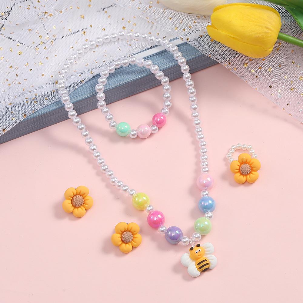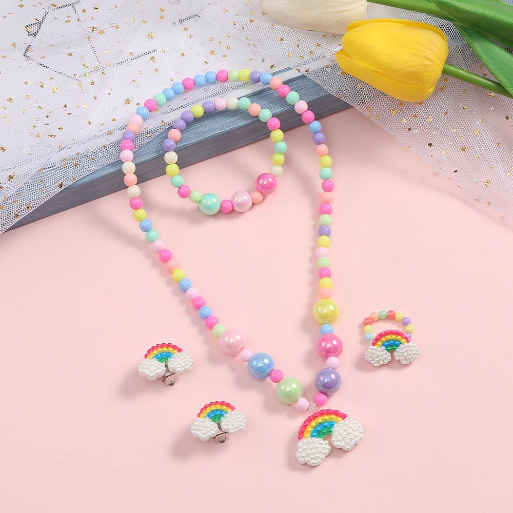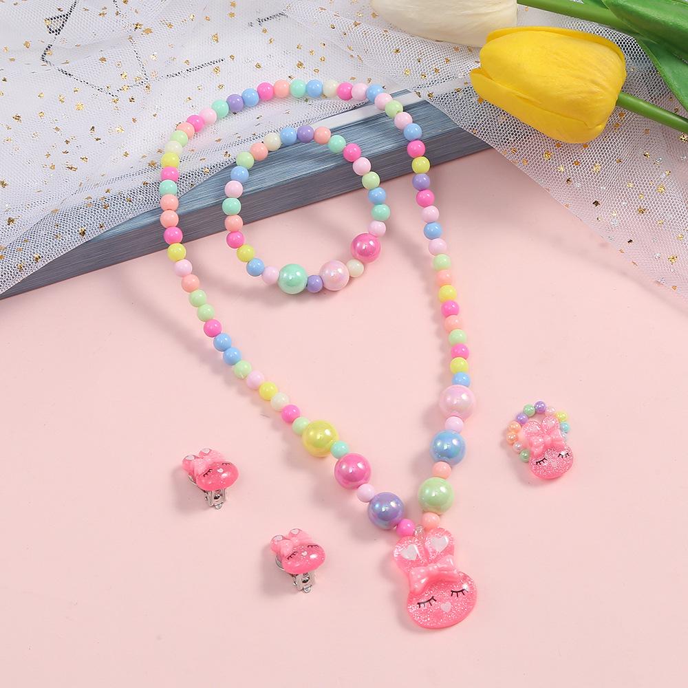 Clips para Orejas de Resina de Dibujos Animados, Anillos, Pulseras, Collares, Juego de Cinco Piezas, Accesorios de Joyería DIY de Perlas para Niñas