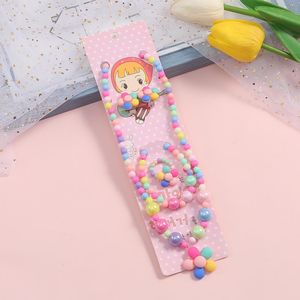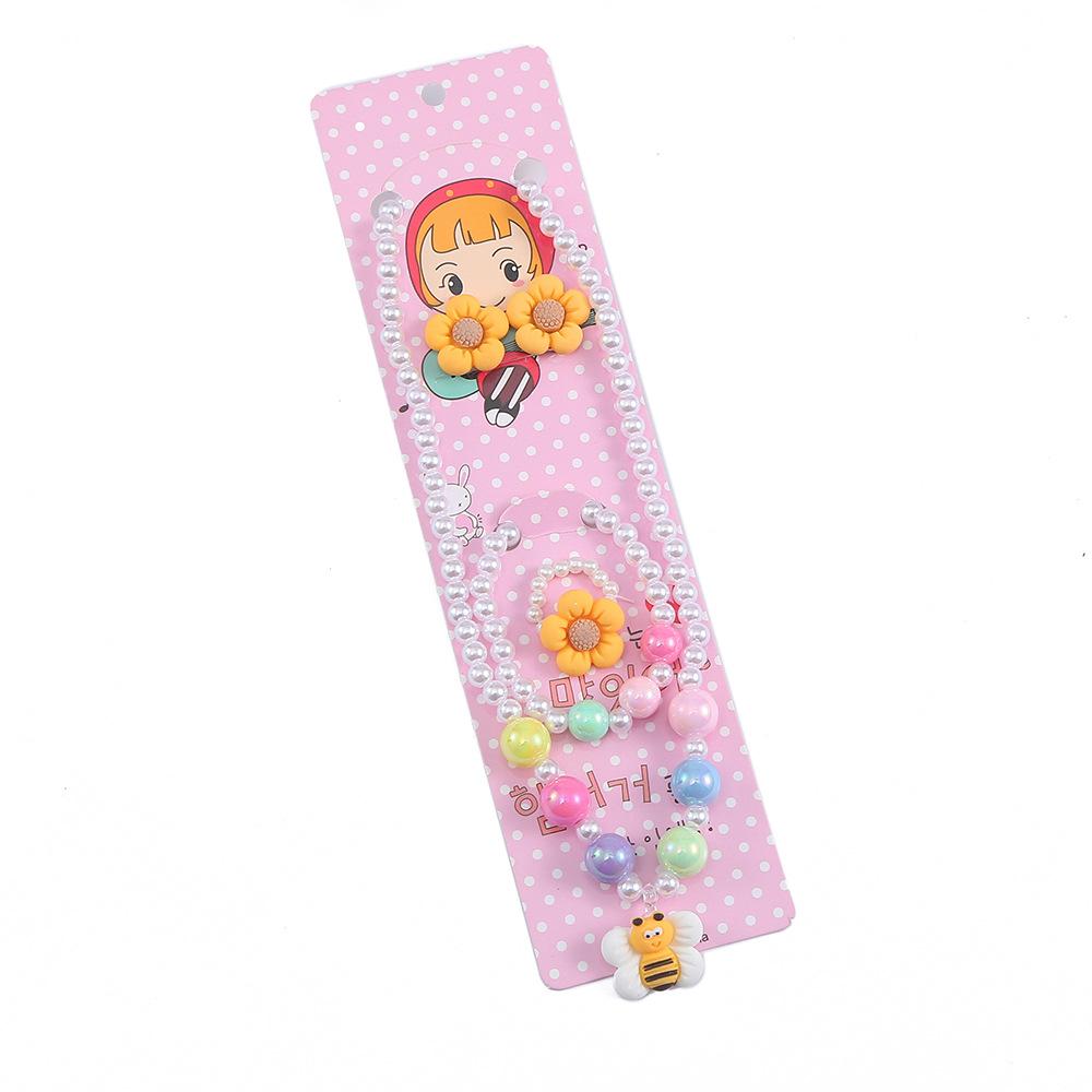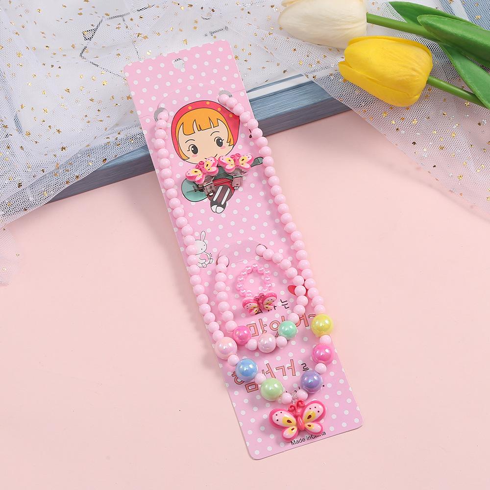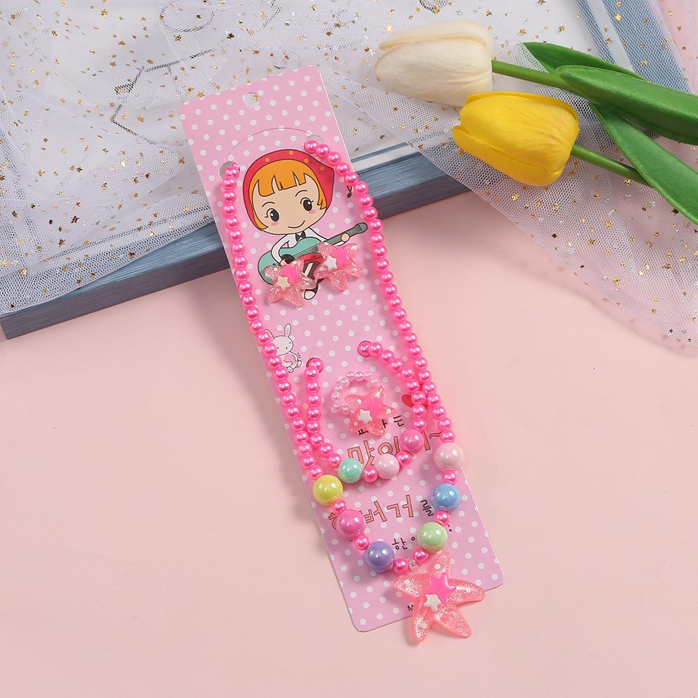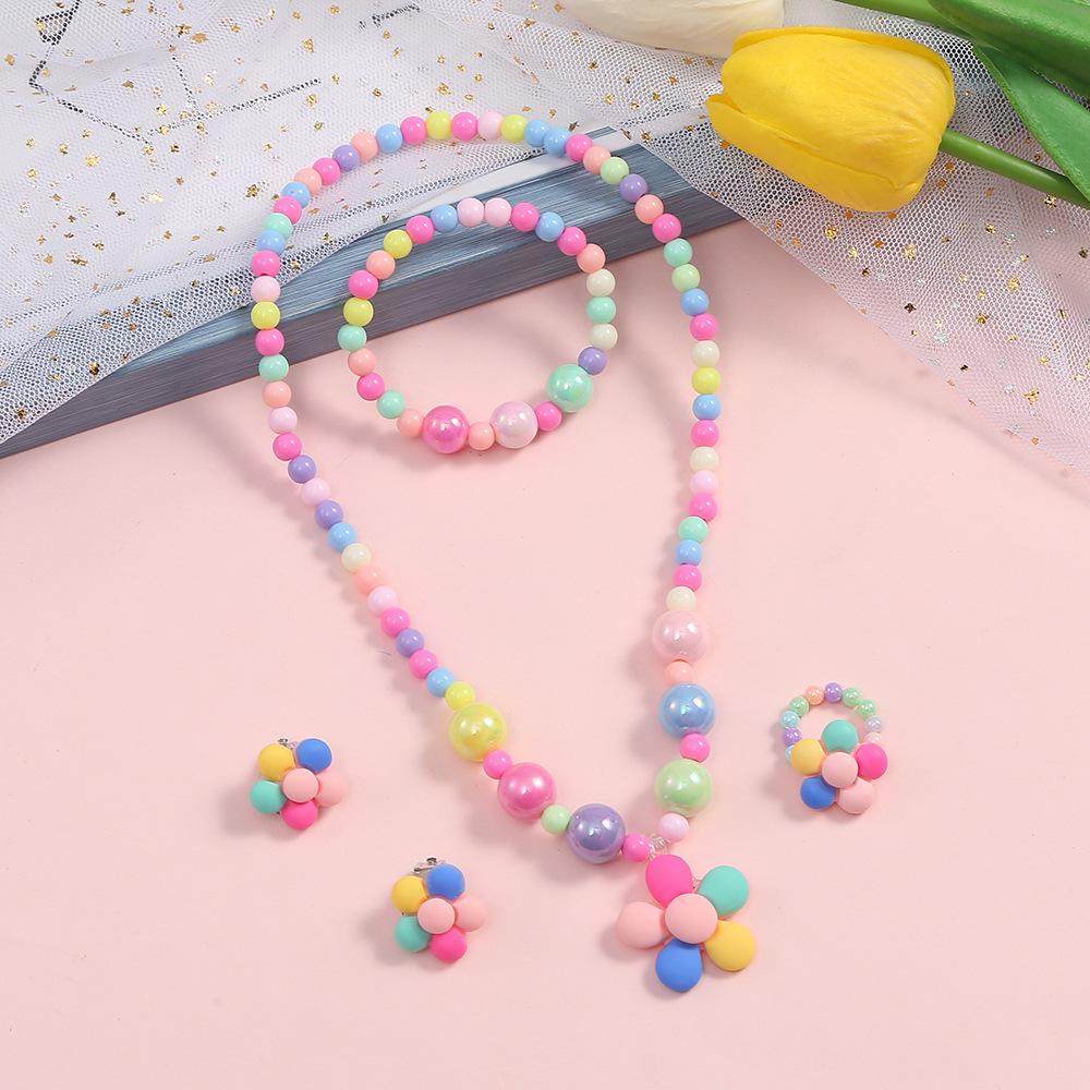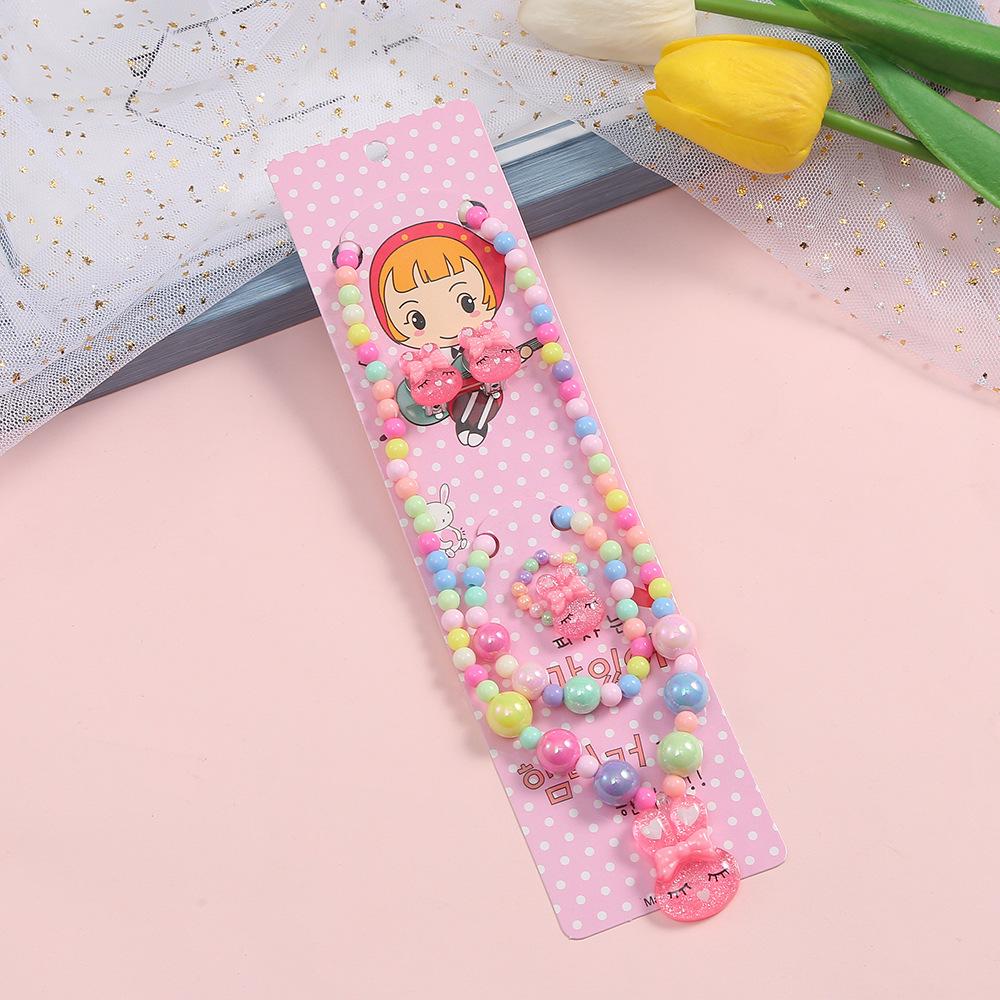 Clips para Orejas de Resina de Dibujos Animados, Anillos, Pulseras, Collares, Juego de Cinco Piezas, Accesorios de Joyería DIY de Perlas para Niñas