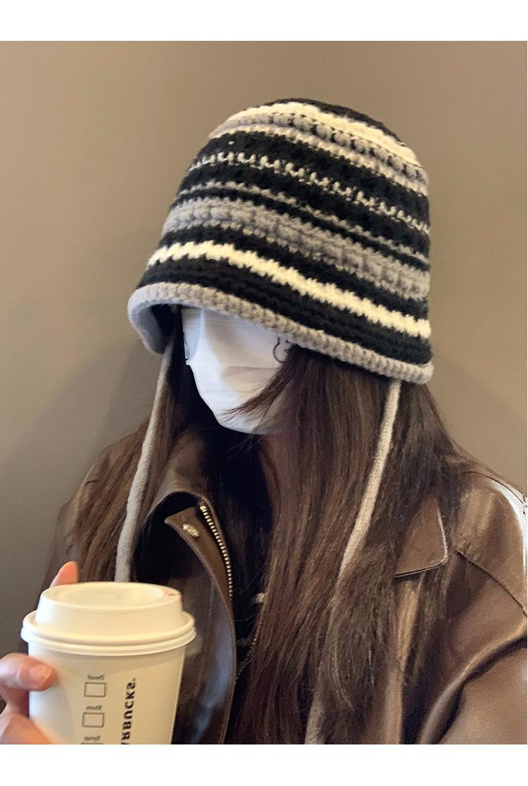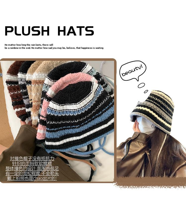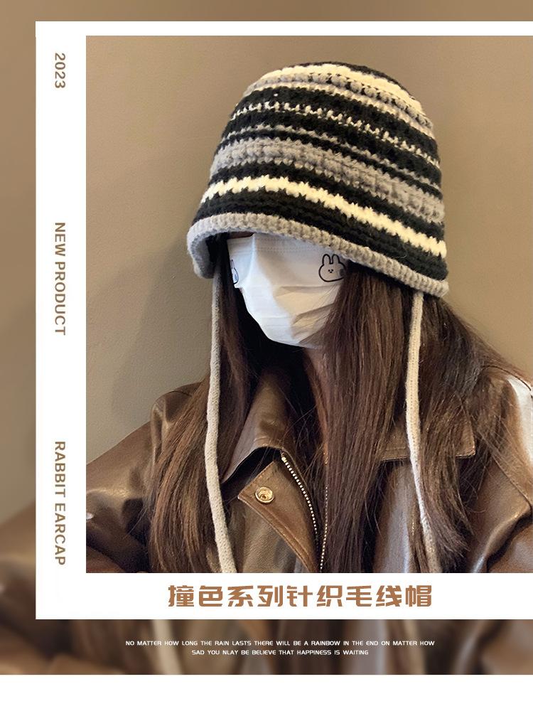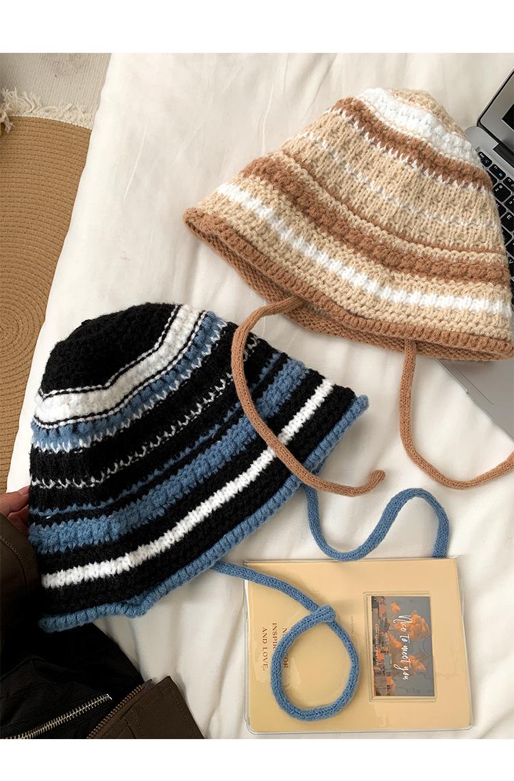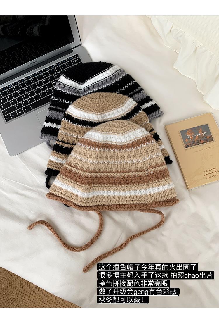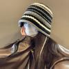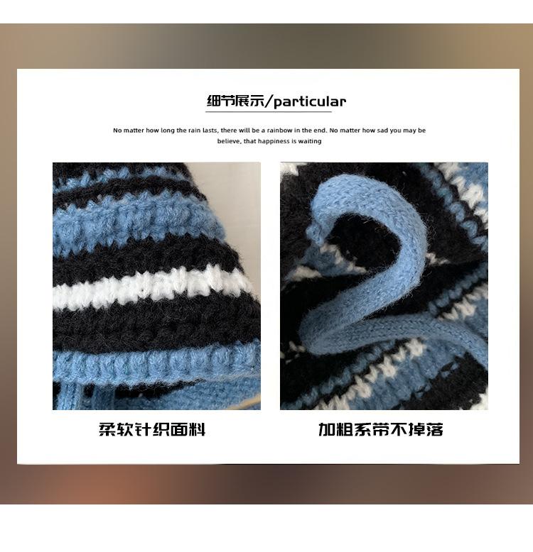 Gorro de pescador de lana a rayas de colores contrastantes, estilo Maillard, hecho a mano, para otoño e invierno, con protección para las orejas, tejido a mano.