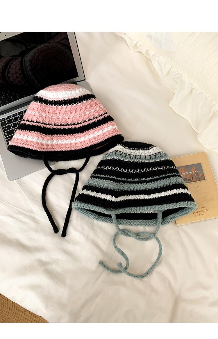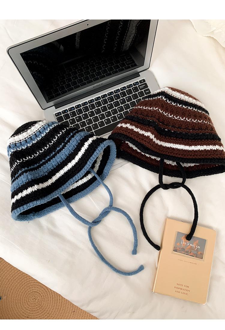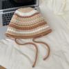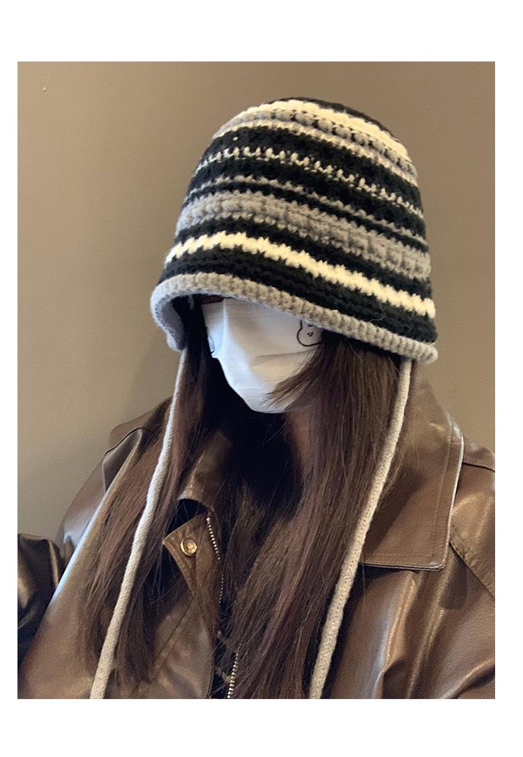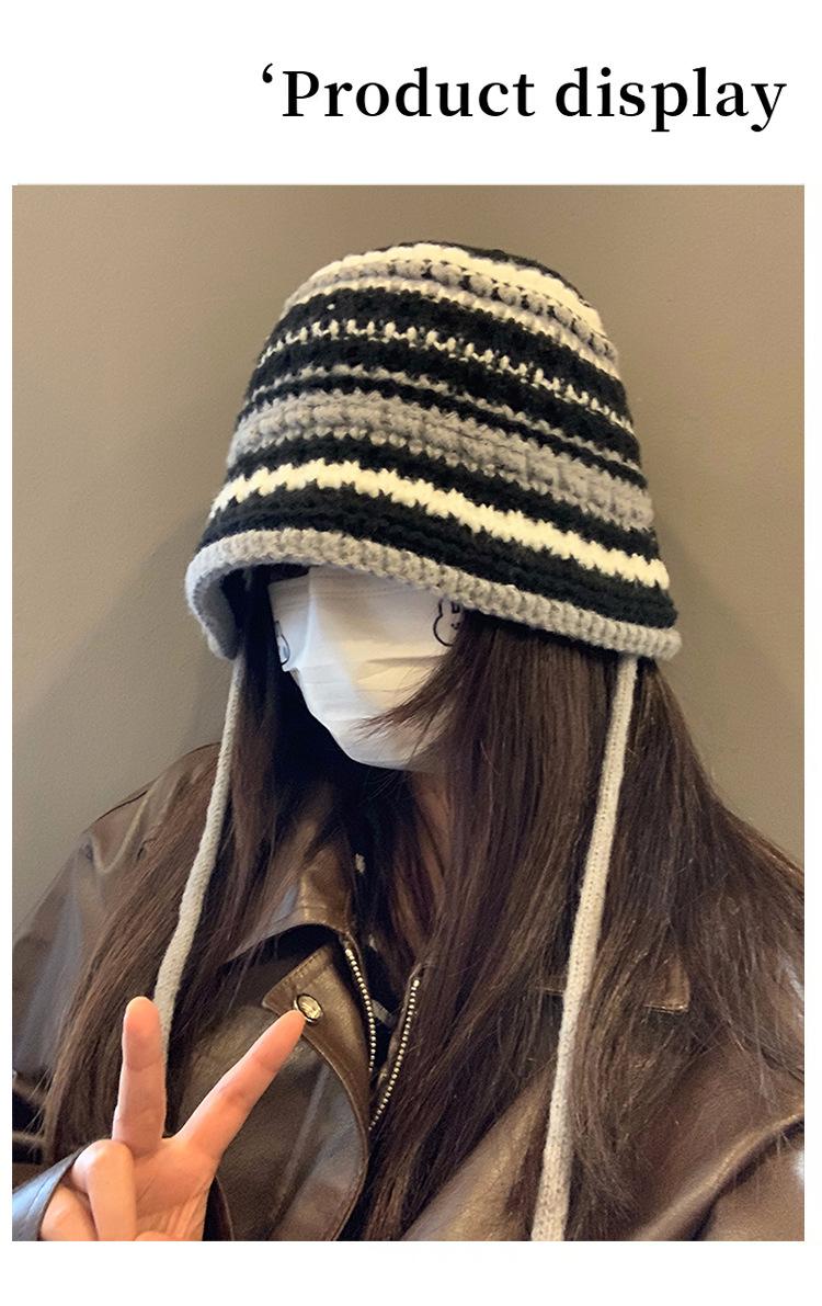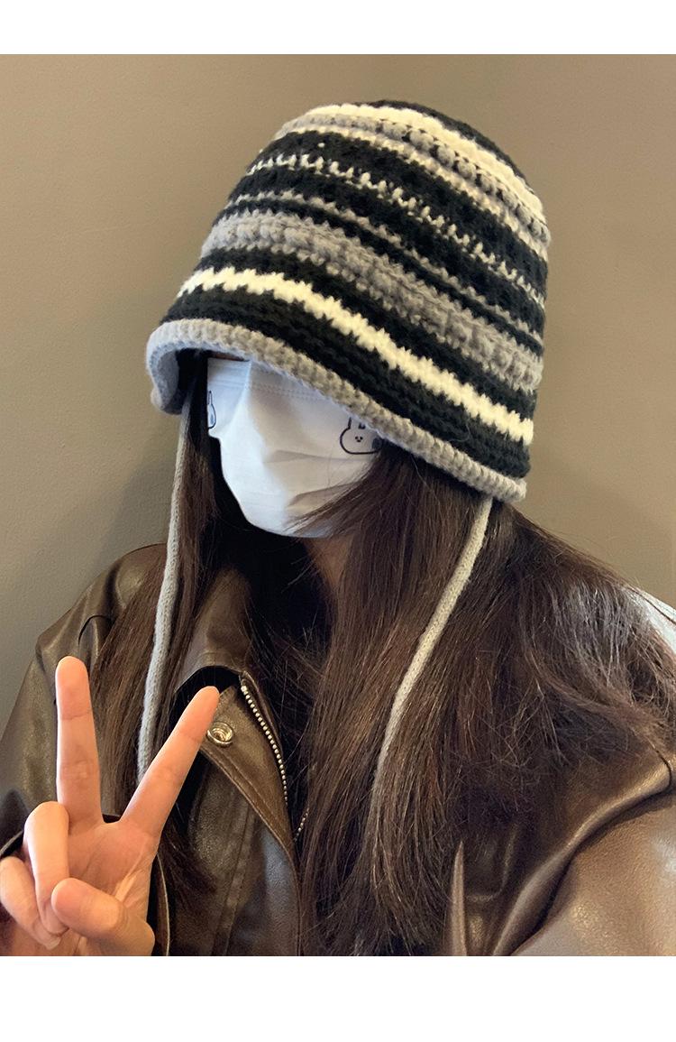 Gorro de pescador de lana a rayas de colores contrastantes, estilo Maillard, hecho a mano, para otoño e invierno, con protección para las orejas, tejido a mano.