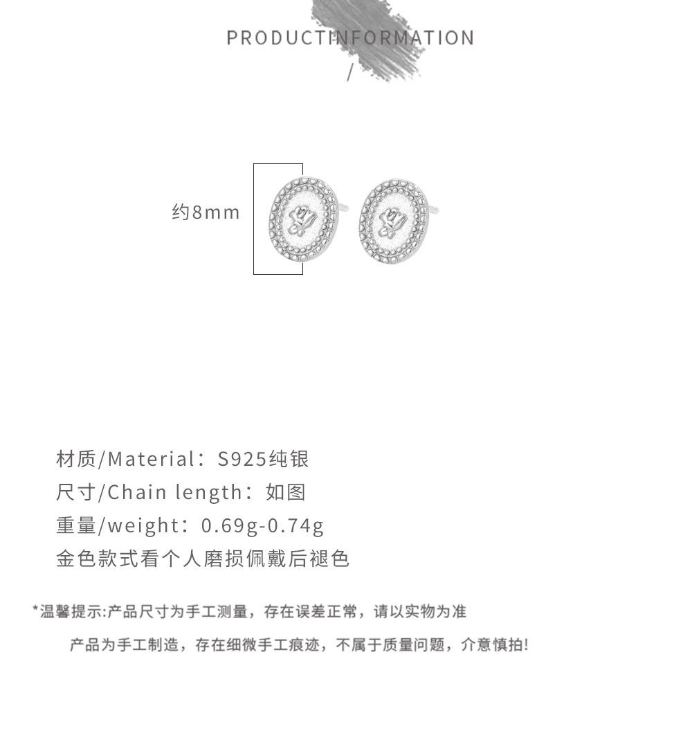 Pendientes de flor ovalada de plata esterlina S925, elegantes pendientes de nicho de alta gama, sencillos pendientes de flor francesa para mujer.