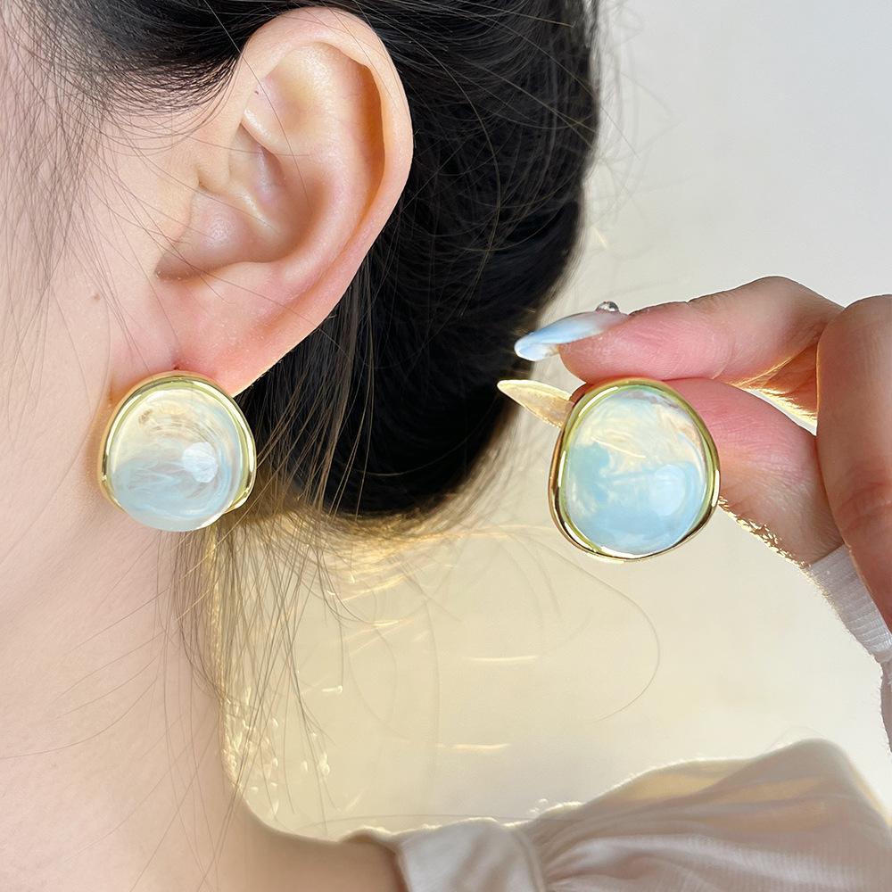 Pendientes de resina de color redondo francés retro simple de alta gama 2024 nuevos pendientes de primavera pendientes de temperamento de nicho