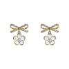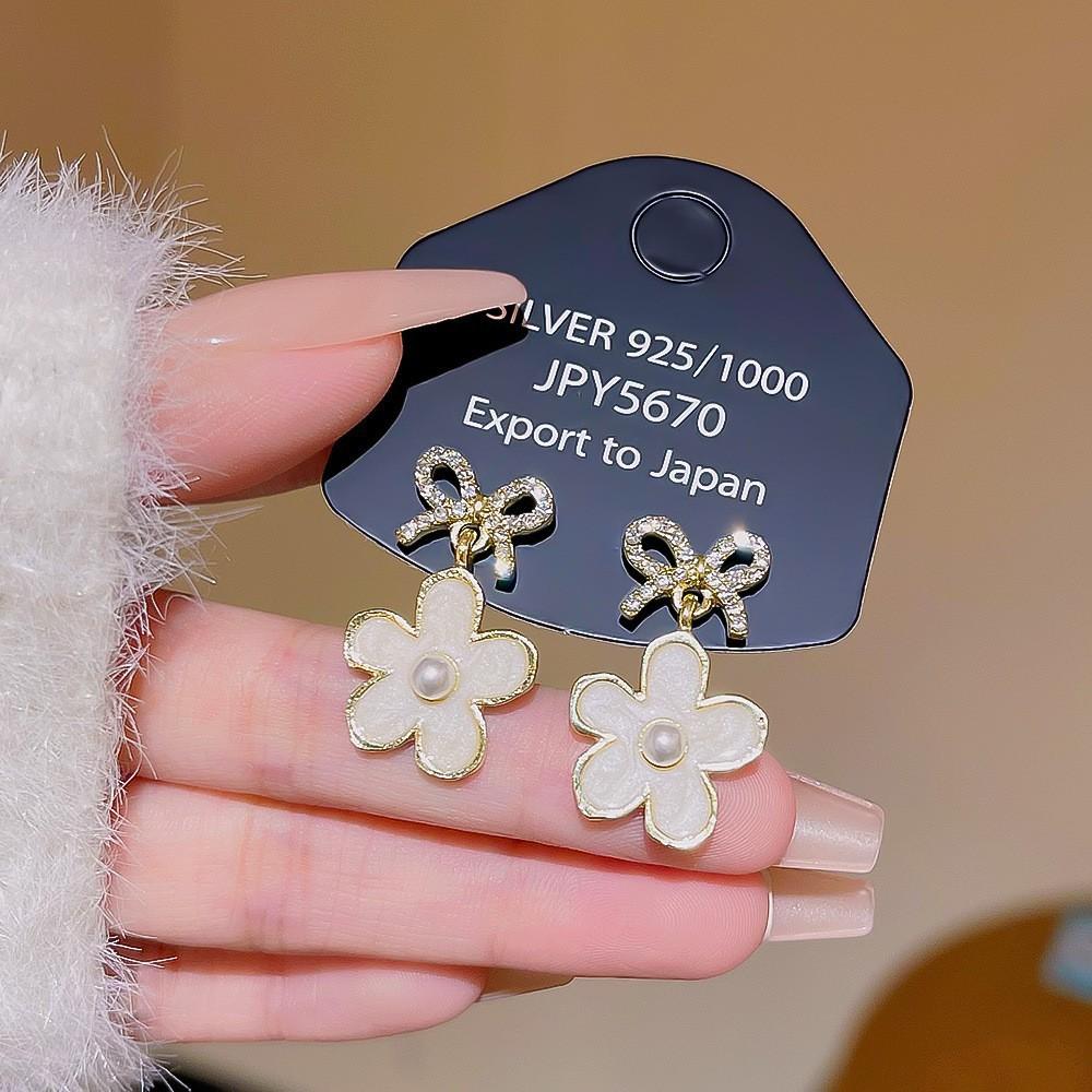 Elegantes pendientes de perlas, ligeros, de lujo, de nicho, de alta gama, de celebridades de Internet, pendientes de flores con lazo de primavera.