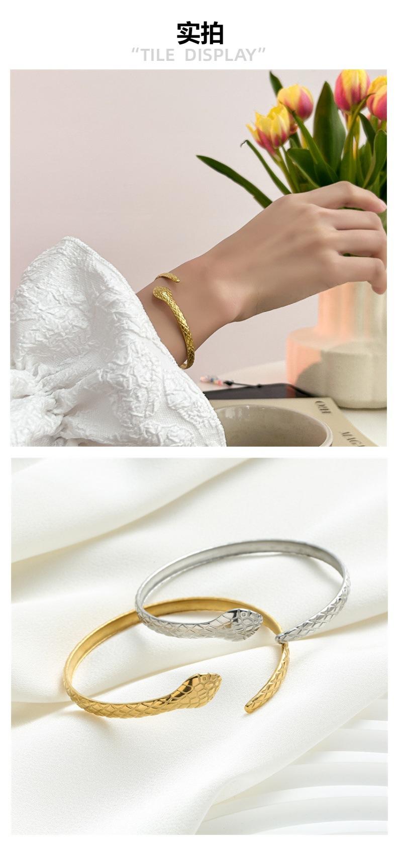 Pulsera Europea y Americana Simple en Forma de Serpiente de Acero de Titanio Personalizada Moda Transfronteriza Retro Nicho Acero Inoxidable Pulsera Abierta para Mujer