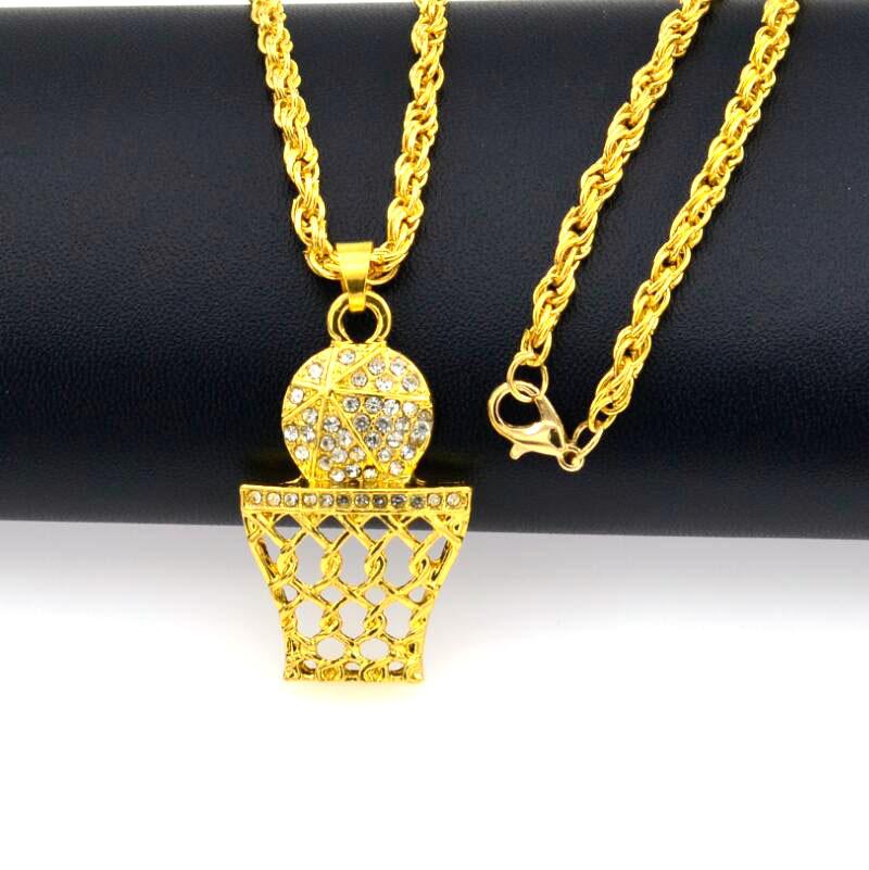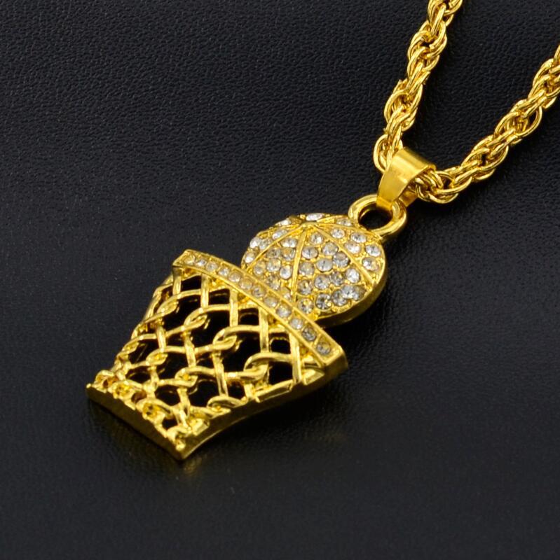 Nuevo collar de hip hop para hombre, estilo europeo y americano, con colgante de malla de baloncesto creativa y diamantes, joyería transfronteriza al por mayor