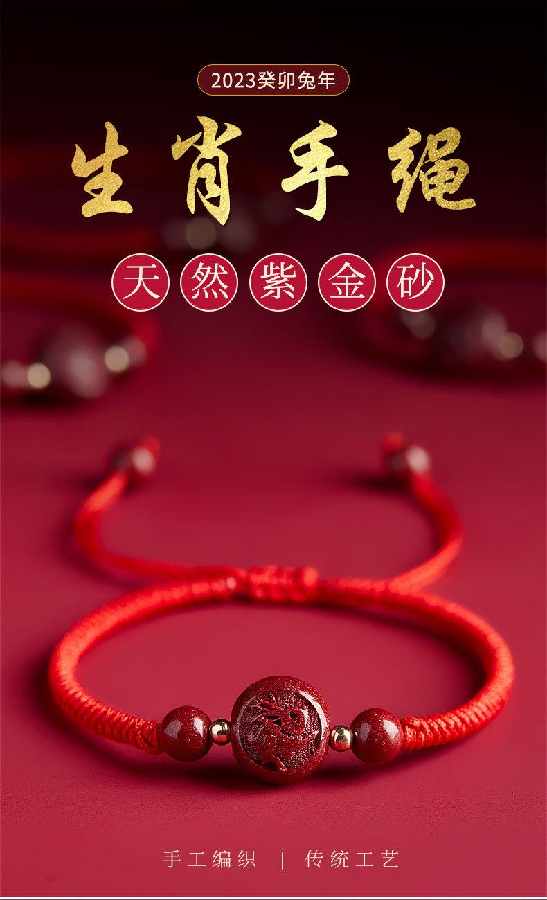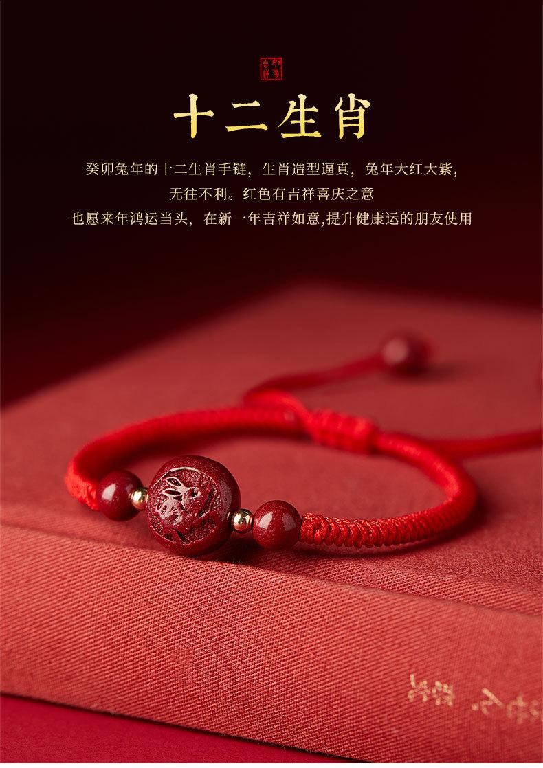 Pulsera de cinabrio del zodiaco chino para hombre 2023 año del conejo año de nacimiento pulsera de cuerda roja para mujer pulsera tejida de cuerda roja para hombre