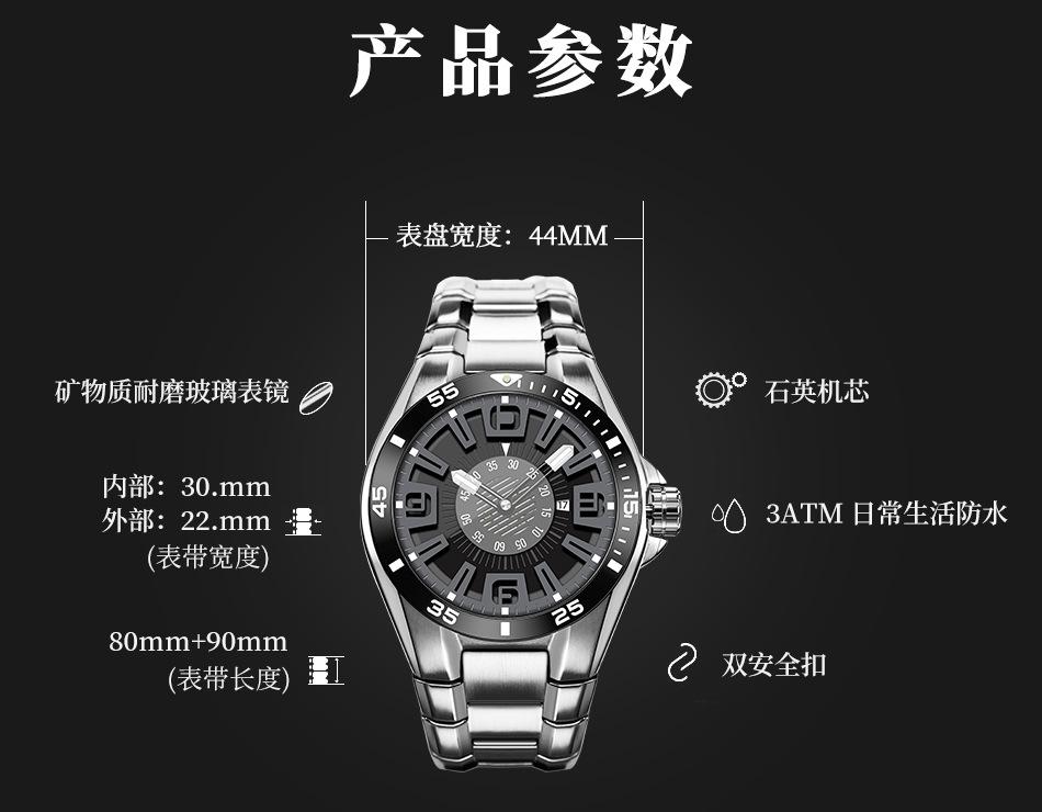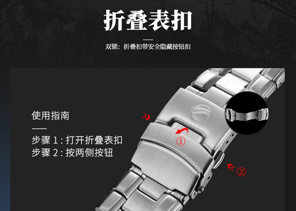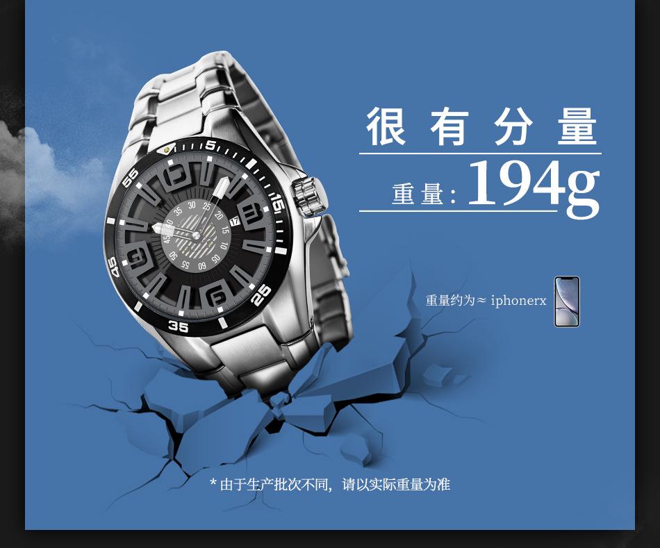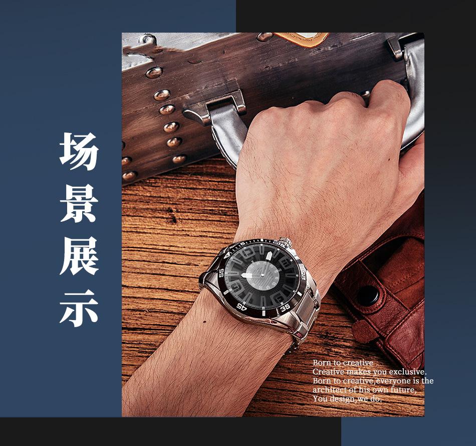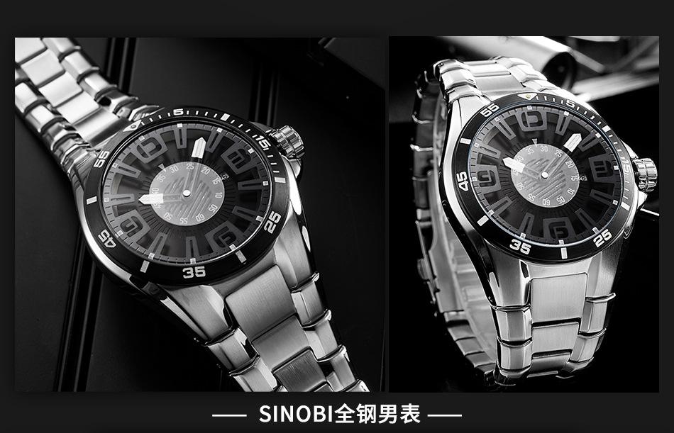 Reloj Sinobi para hombre, de negocios, con correa de acero hueca, no mecánico, luminoso, resistente al agua, venta al por mayor transfronteriza 1263