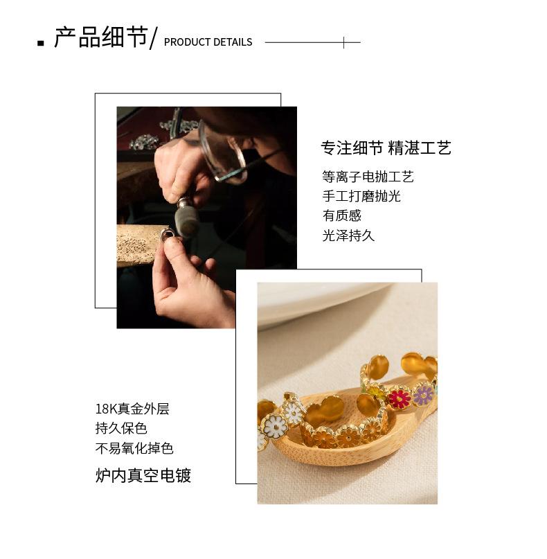 Compra Anillo abierto pequeño de margarita Tianyu fresco, simple y lindo, con flor de color gota, ajustable de acero de titanio al por mayor en Joom.pro