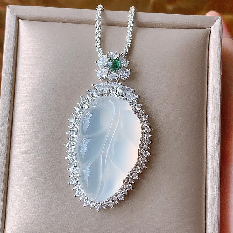 Compra Huyoumei joyas crilcedonia calcedonia blanca en las hojas de los nuevos accesorios de estilo chino viento nacional sorprendentemente hasta collares colgantes al por mayor en Joom.pro