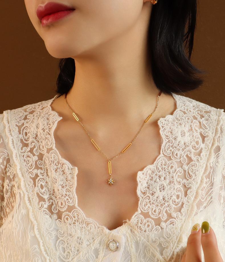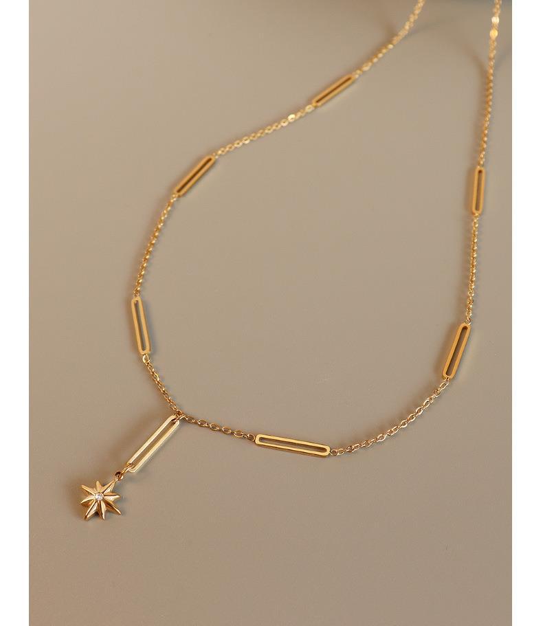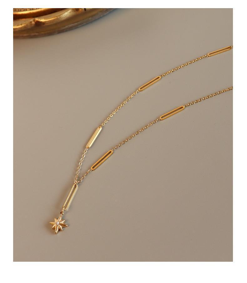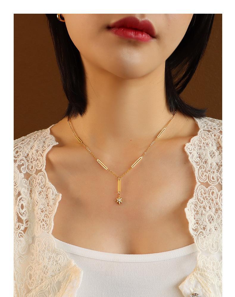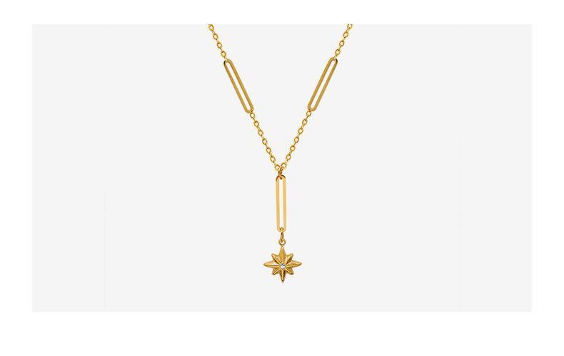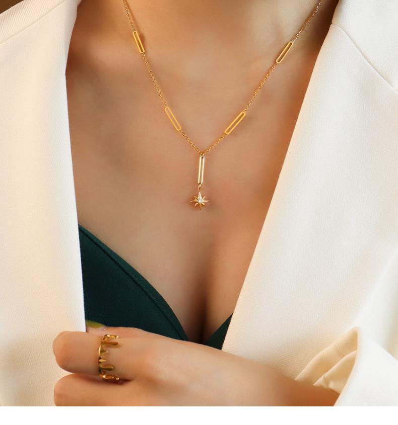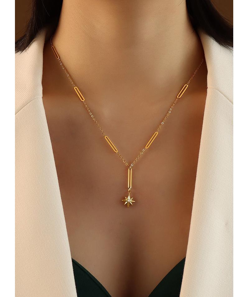 Gargantilla europea y americana de seis estrellas para hombre, collar de 18K, acero de titanio, largo, hecho a mano, chapado en oro de 18K, cadena para el cuello