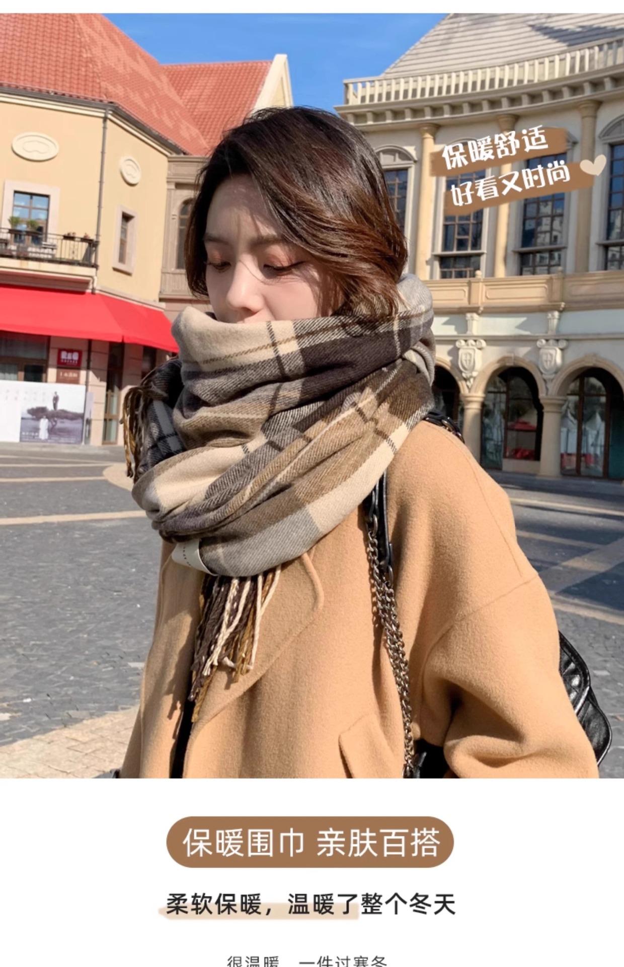 Bufanda a cuadros nueva 2023 para mujer, otoño e invierno, estilo coreano grueso y cálido, estilo cachemir, versátil, para estudiantes y parejas, para hombres