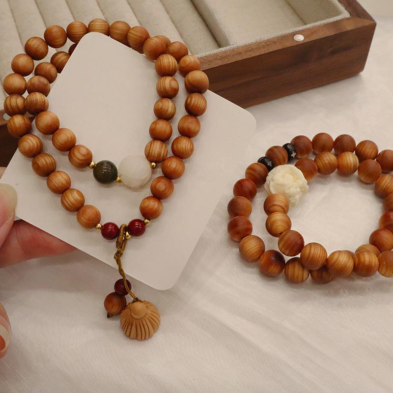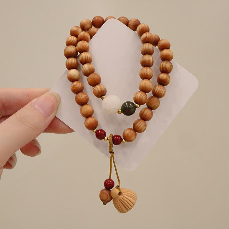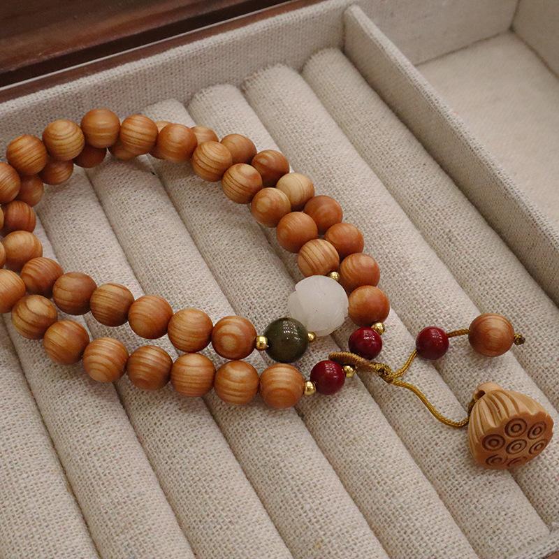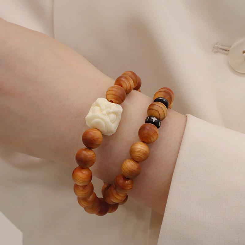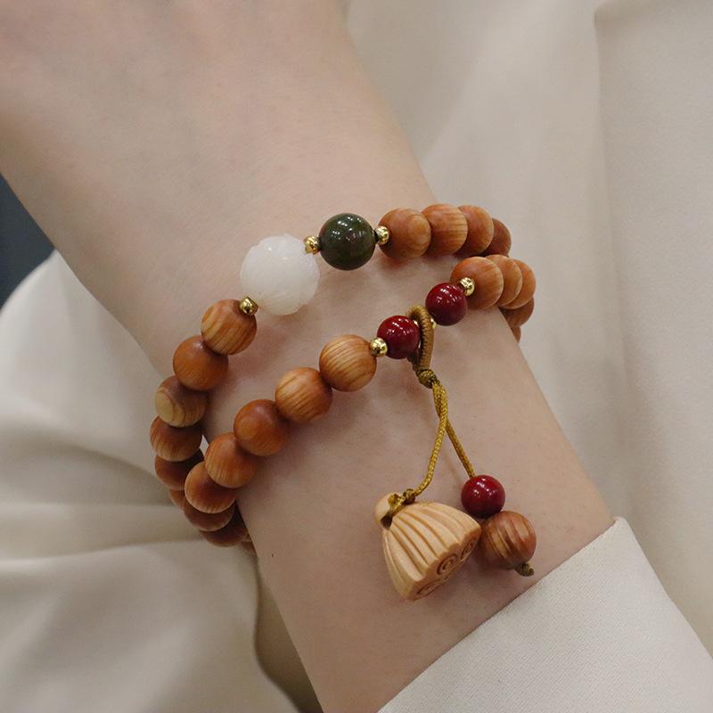 8mm Natural Thuja Double Circle Lotus Bracelet