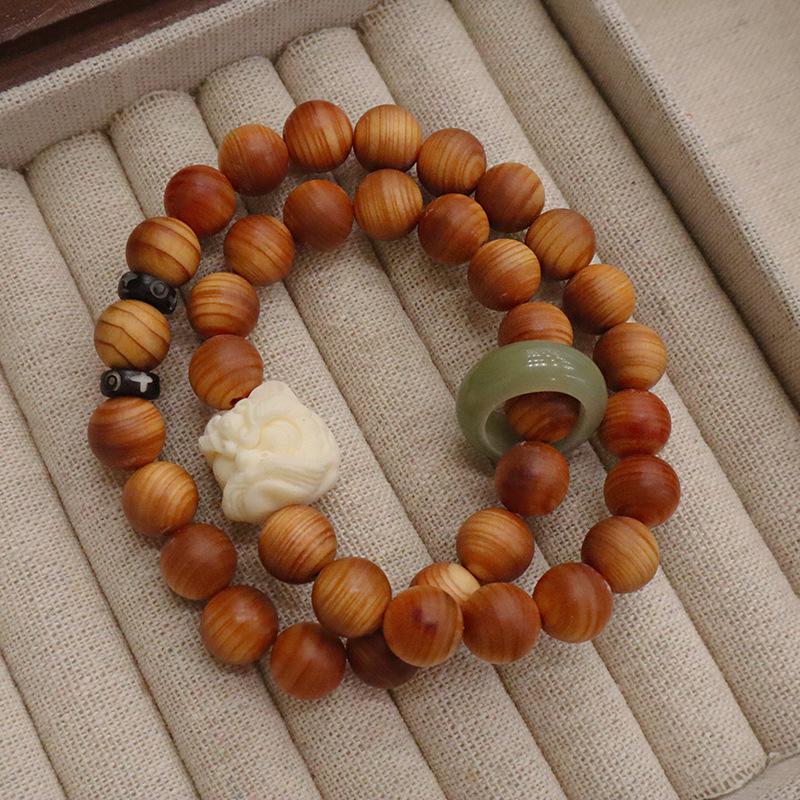 10mm Natural Thuja Double Circle Lion Bracelet, 8mm Natural Thuja Double Circle Lotus Bracelet