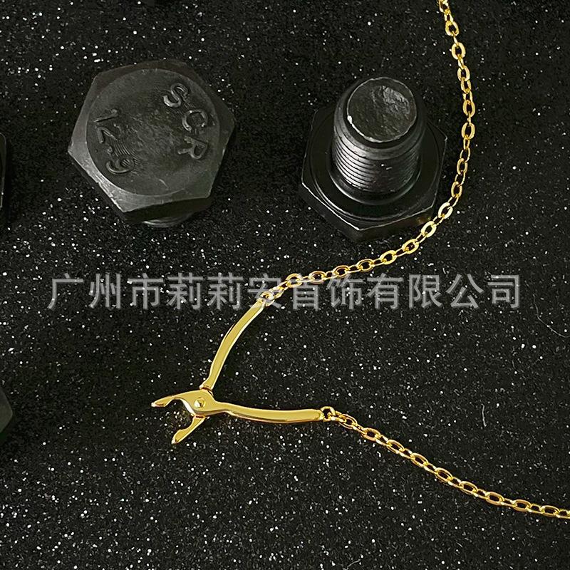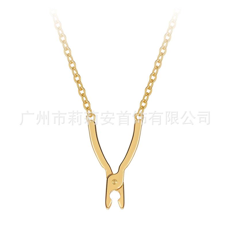 Collar con colgante de alicates de diseño original de latón chapado en oro de 18 quilates, cadena de clavícula con personalidad de nicho, estilo INS P223313