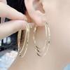 Compra Pendientes de plata s925 con forma de aguja, de Corea del Sur, para celebridades de Internet, con un estilo simple de metal y tres capas circulares. al por mayor en Joom.pro