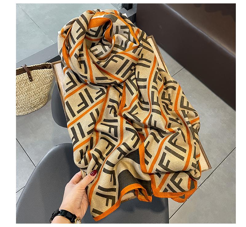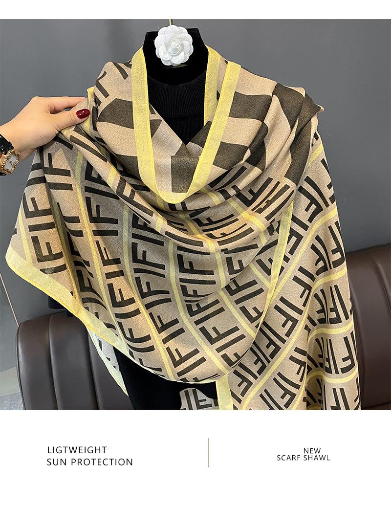 | Bufanda de seda con letras de nuevo estilo 2022, bufanda multifuncional para mujer, chal de protección solar de verano, ropa exterior, bufanda para el cuello de otoño e invierno. |