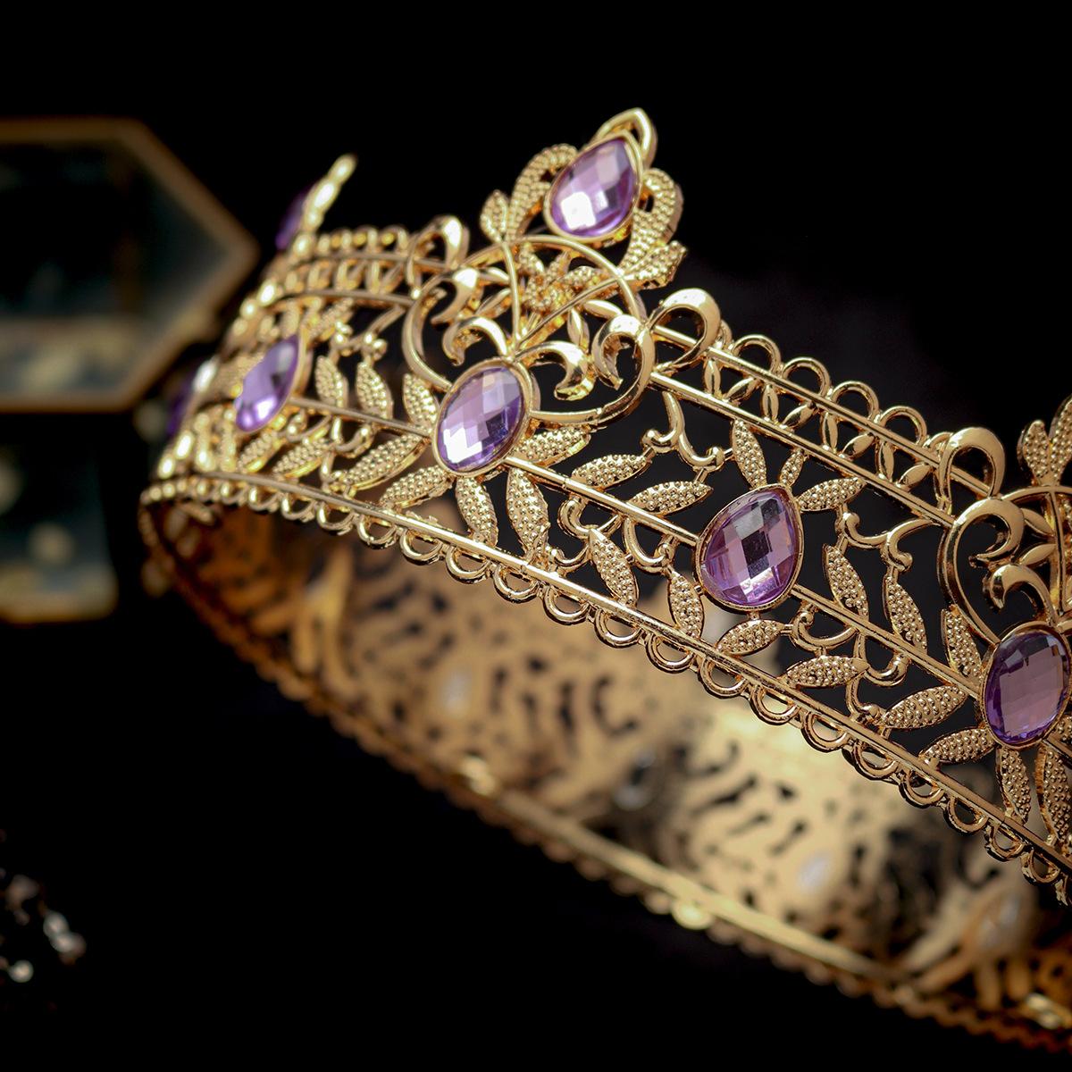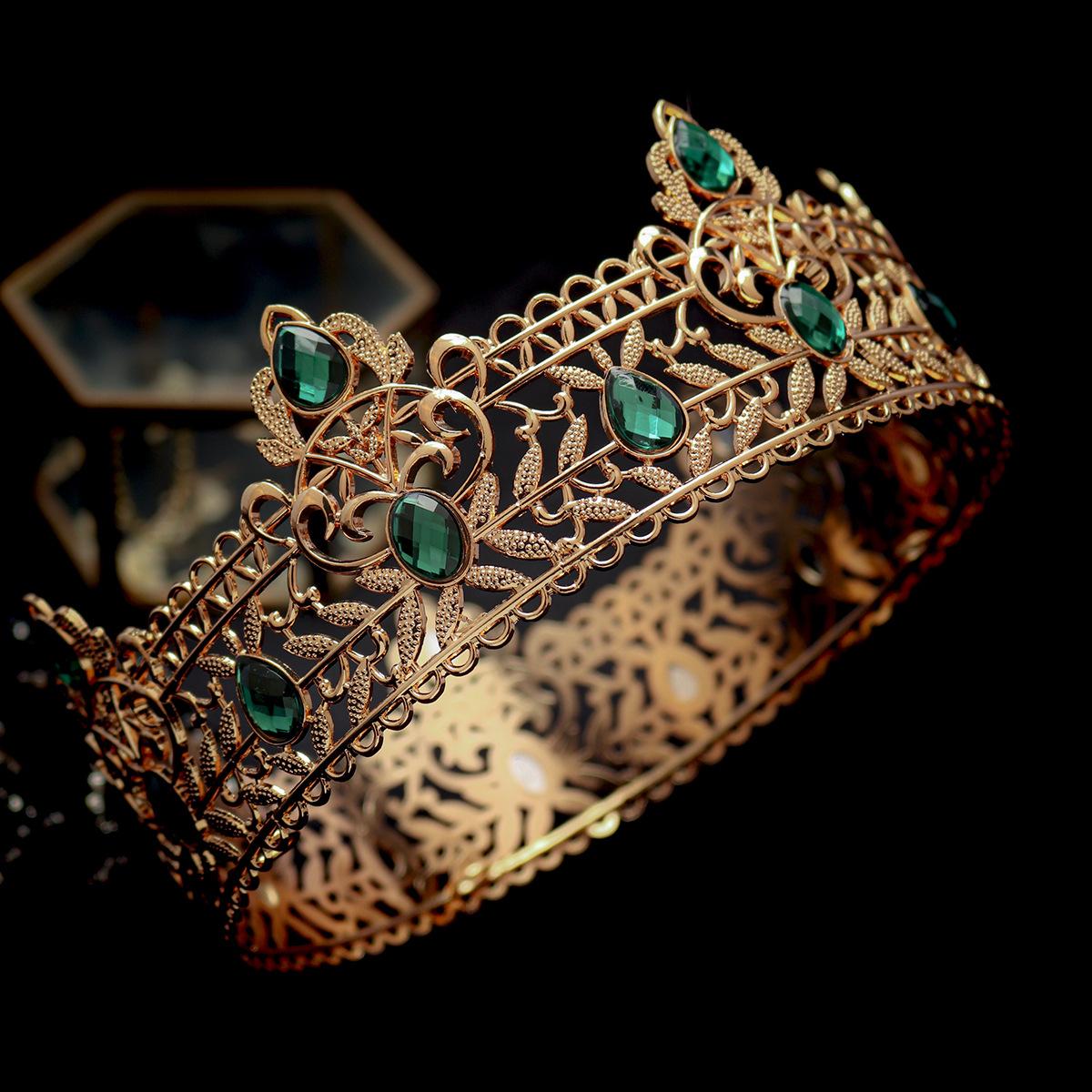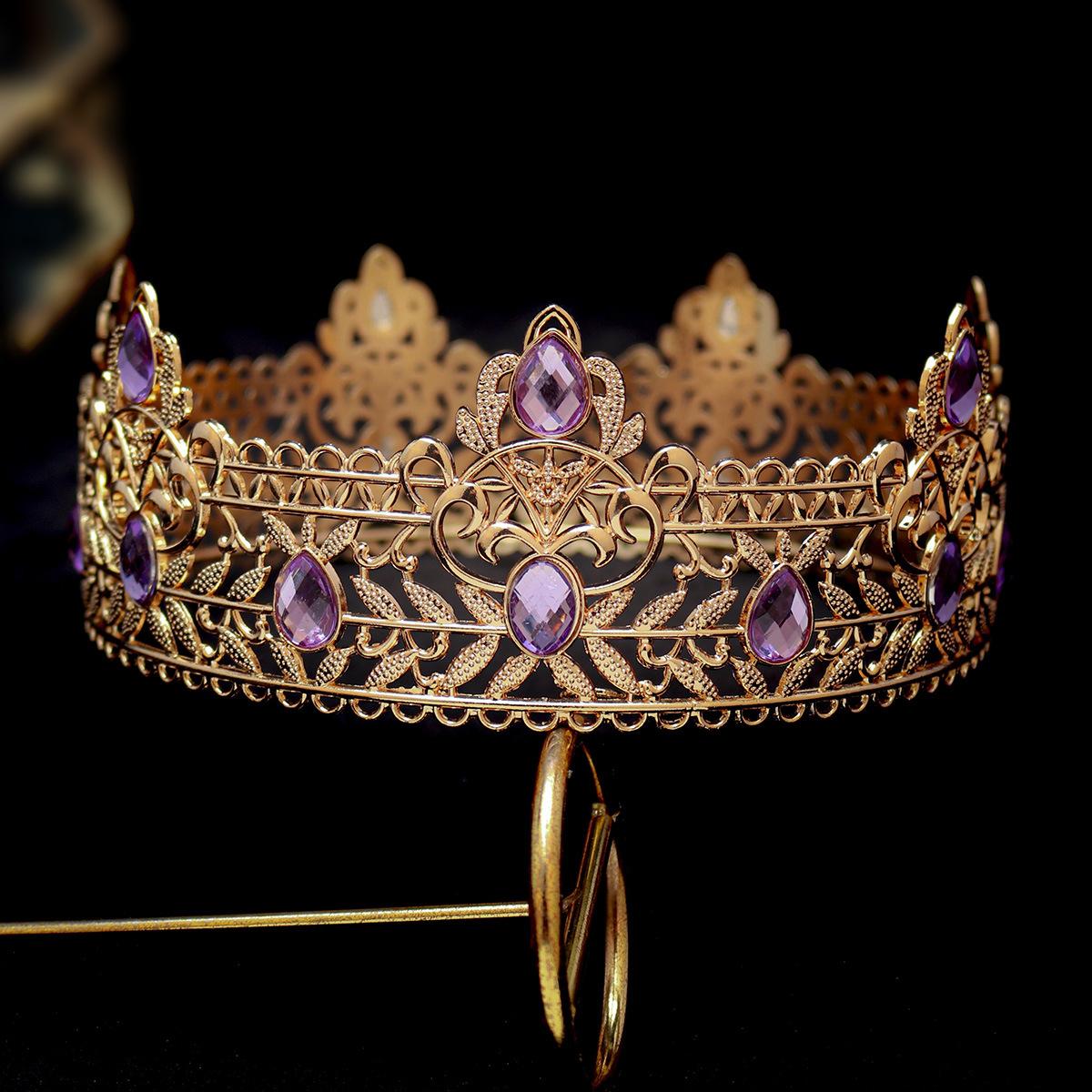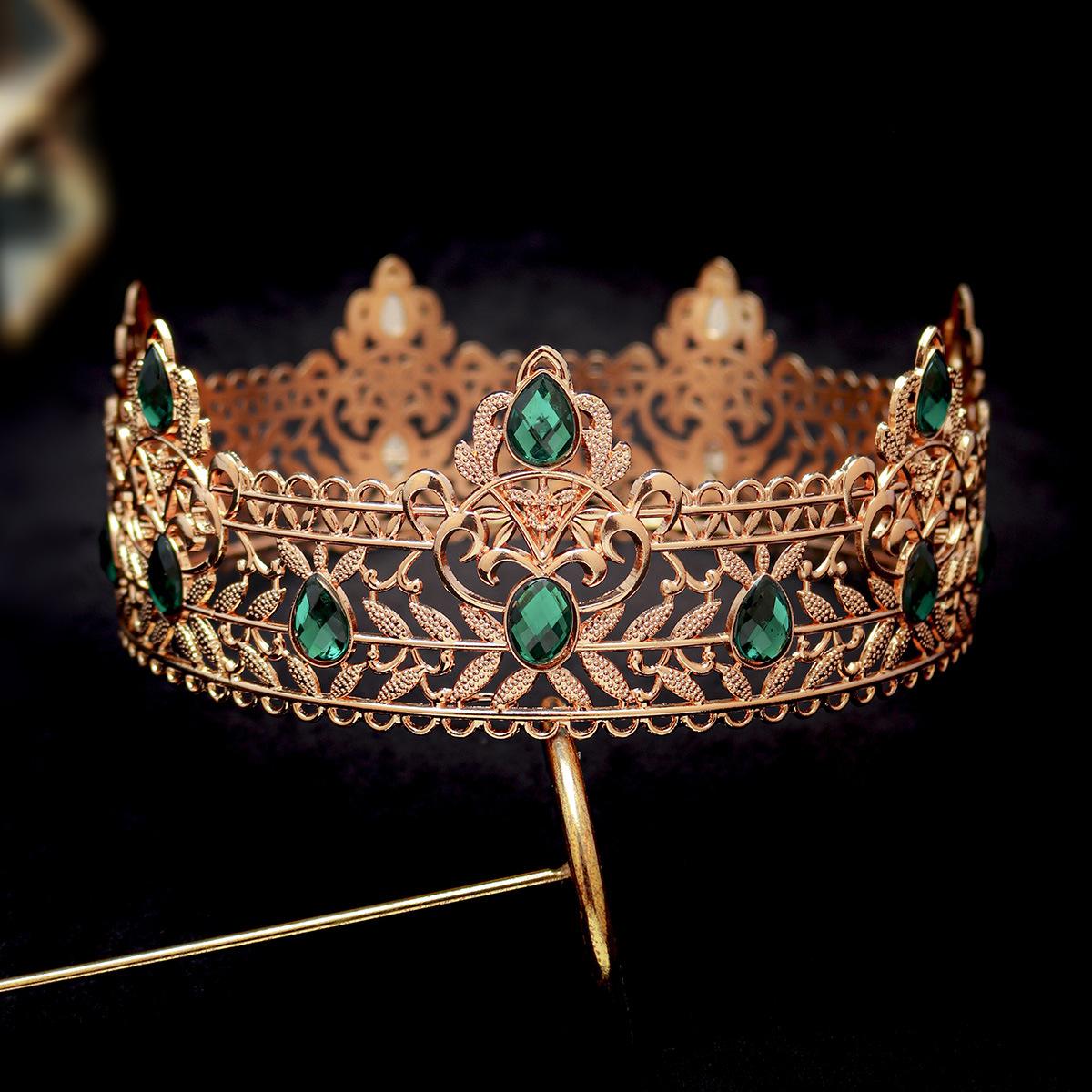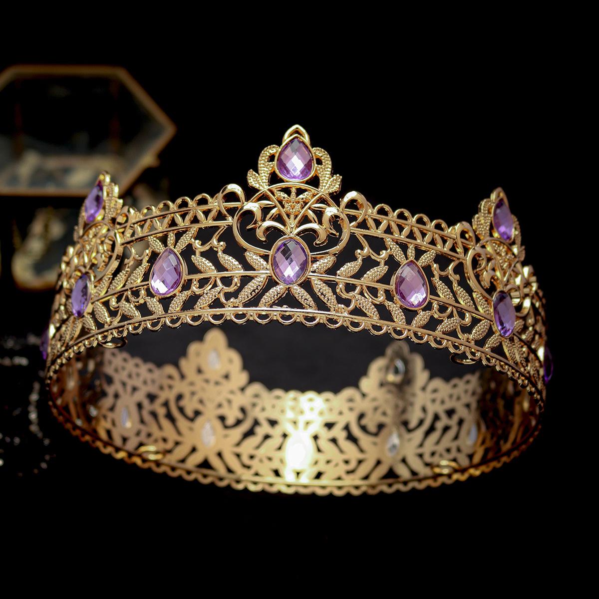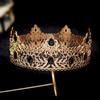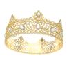 Corona barroca vintage de rey, tocado de lujo de alta calidad, corona de novia de aleación de color diamante, corona redonda