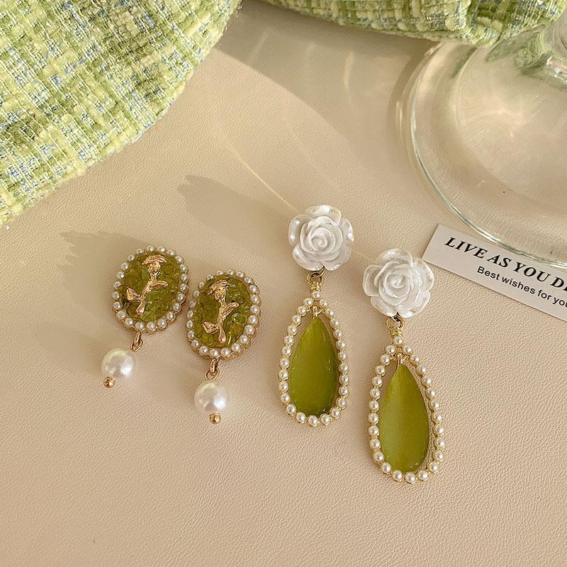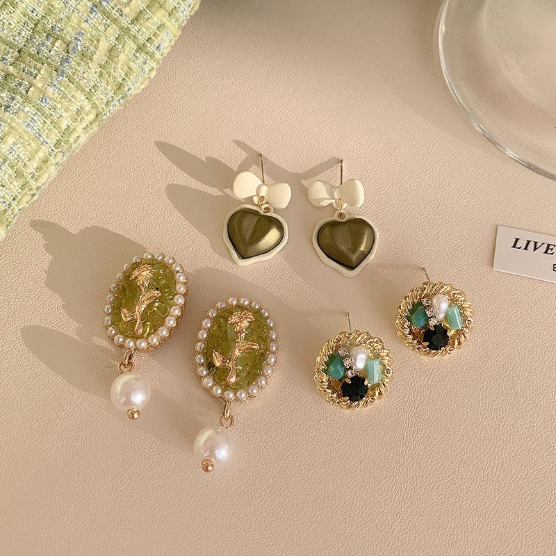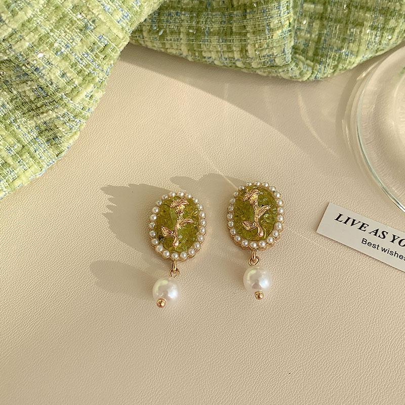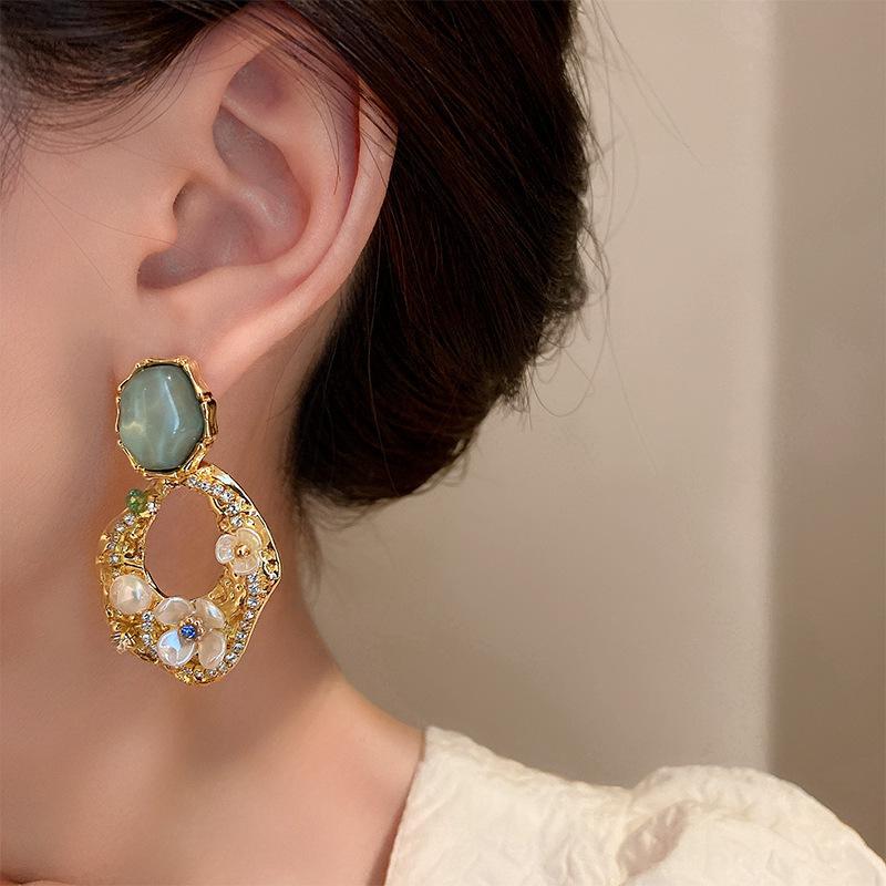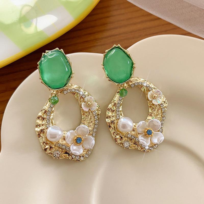 Pendientes geométricos de perlas retro francesas, pendientes de temperamento de moda exagerada, pendientes de lujo ligeros de nicho de alta gama, venta al por mayor para mujeres