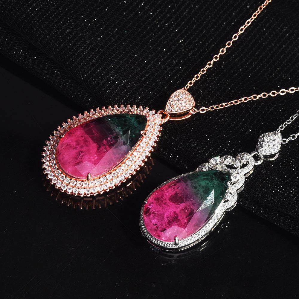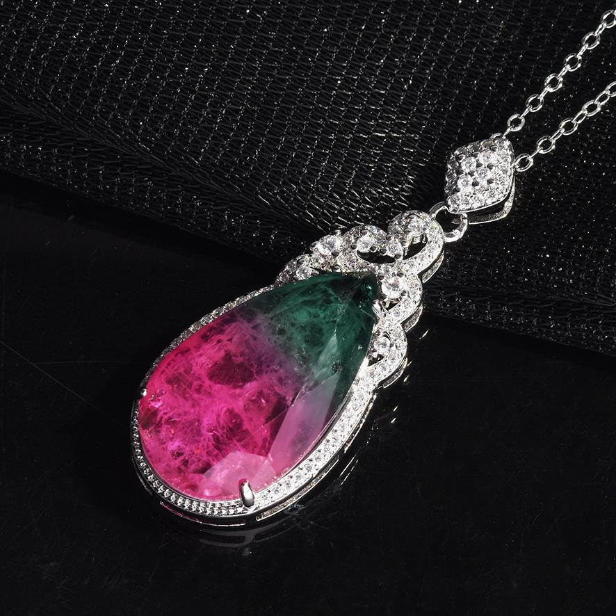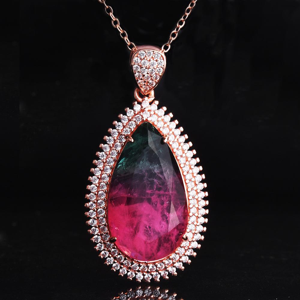 Collar Shake Tone Live de turmalina de imitación natural de algodón y sandía, bañado en oro rosa de 18 quilates, con forma de gota de color, para mujer.