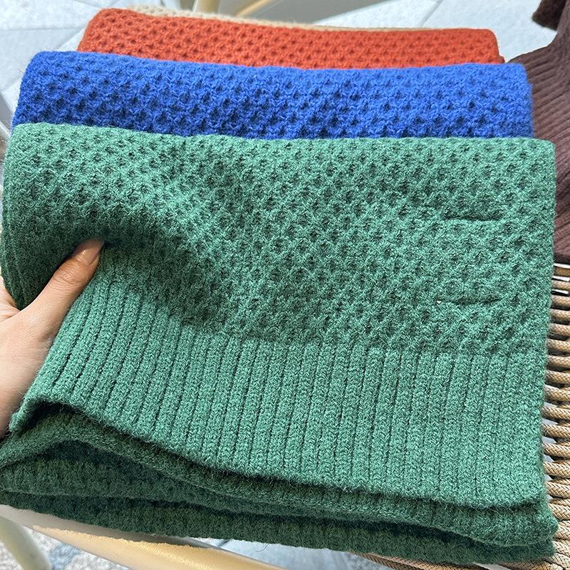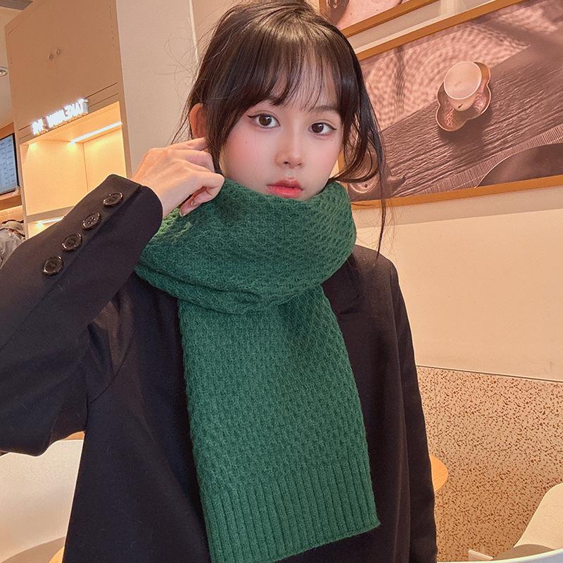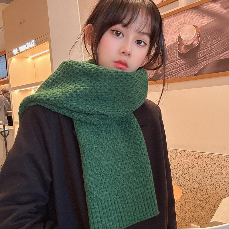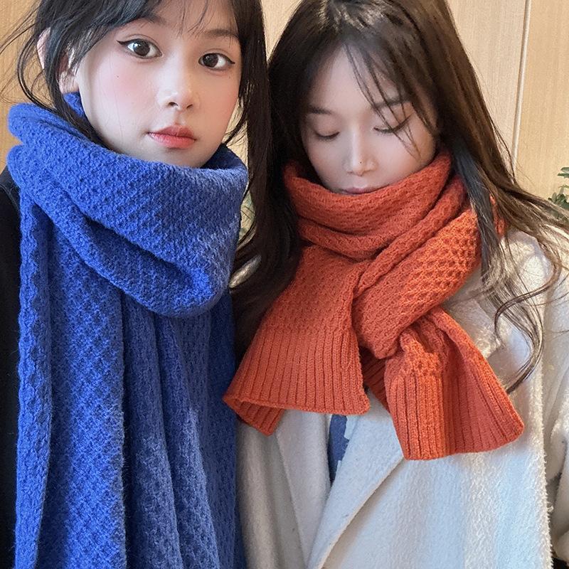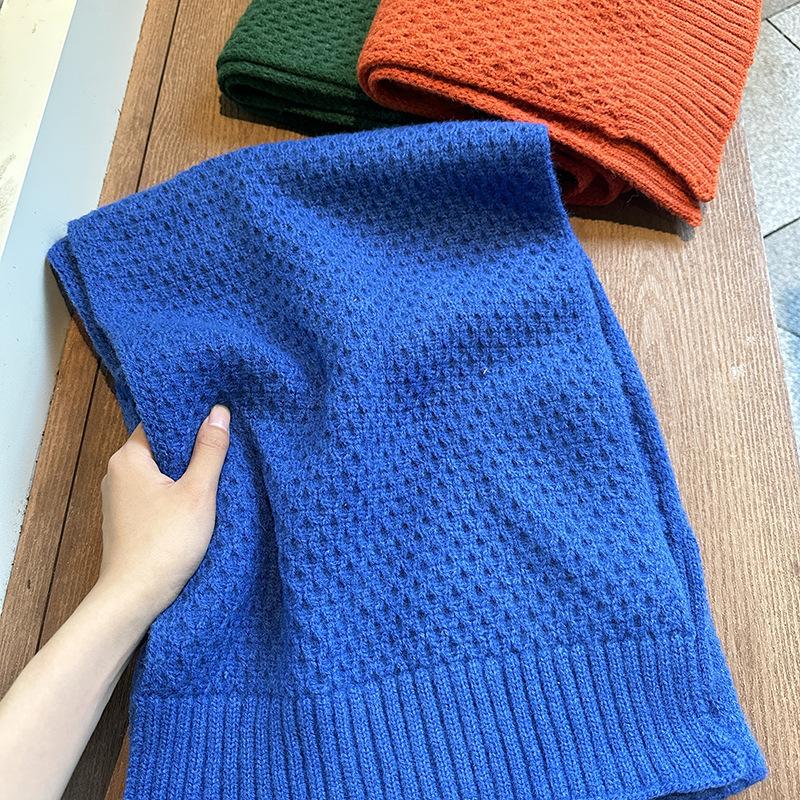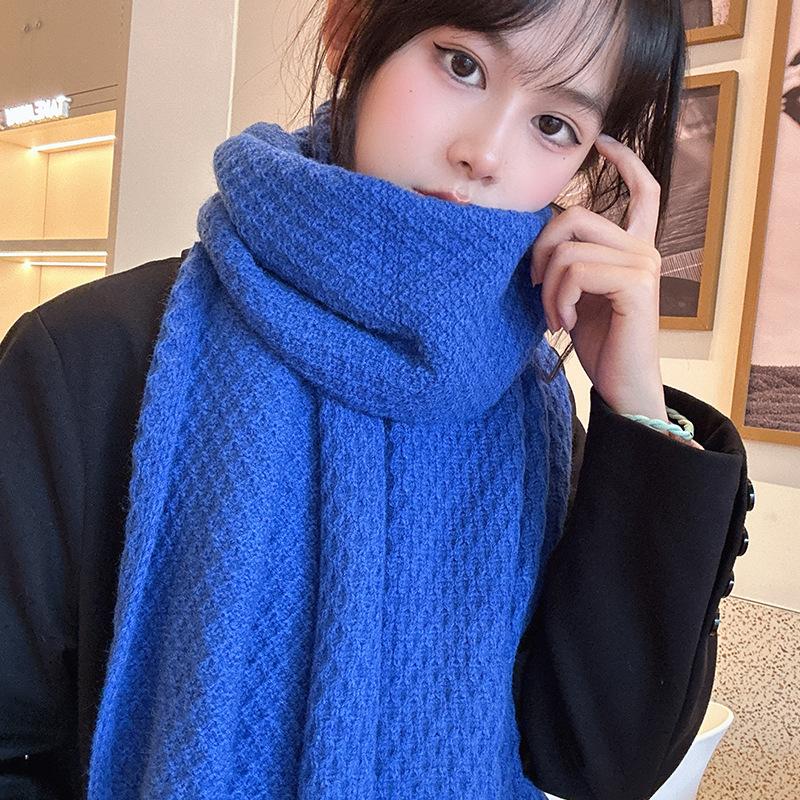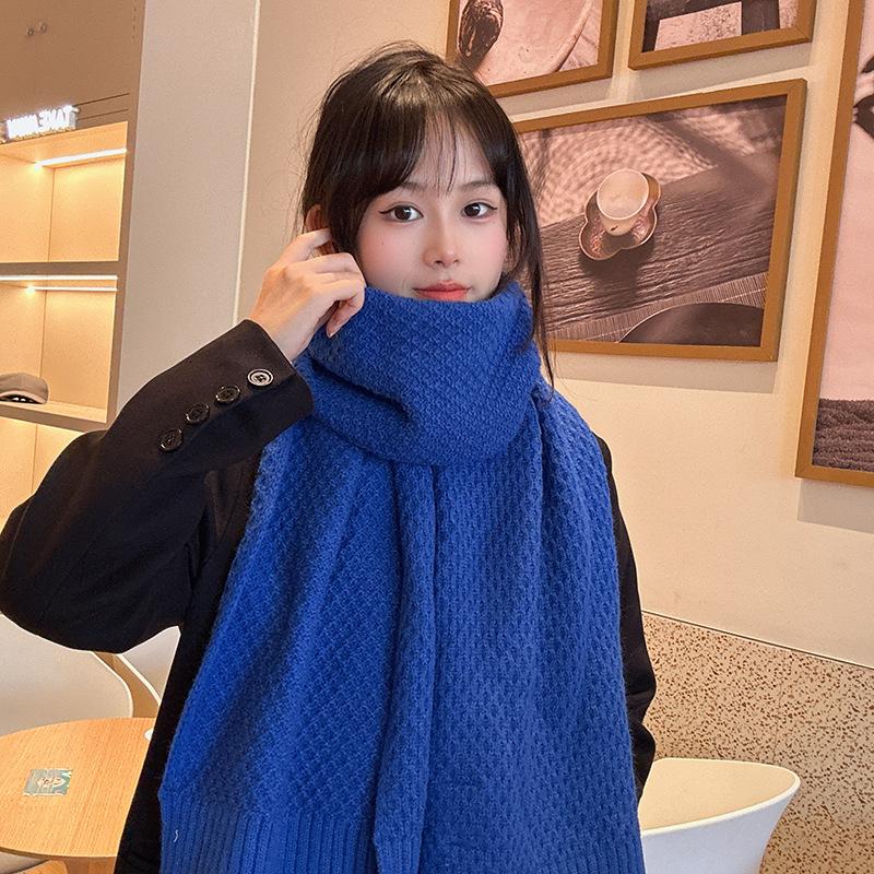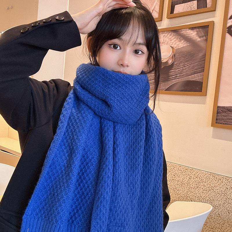 Regla blanca ~ azul oscuro azul claro * color sólido estilo coreano versátil bufanda cálida bufanda de lana tejida para estudiantes otoño e invierno