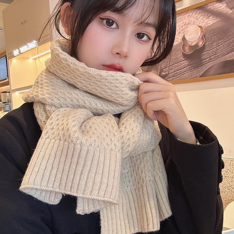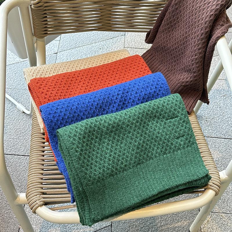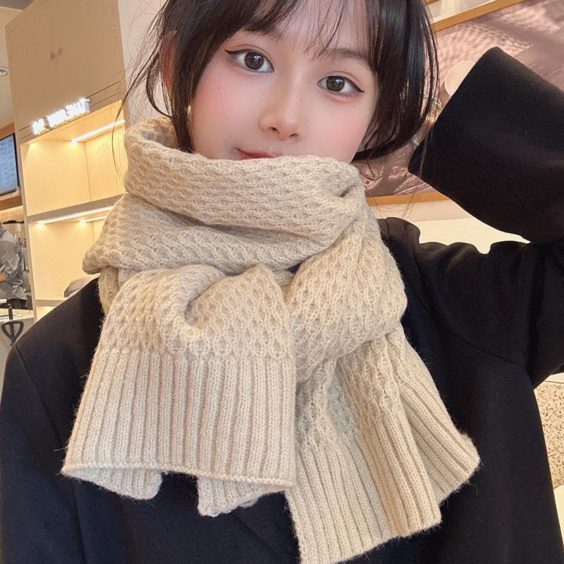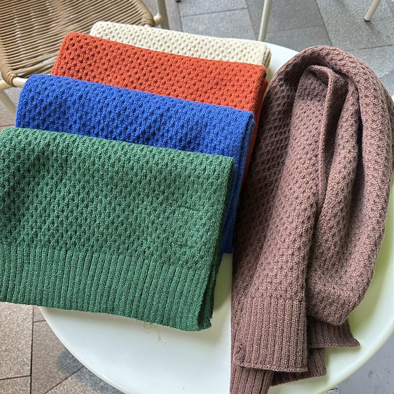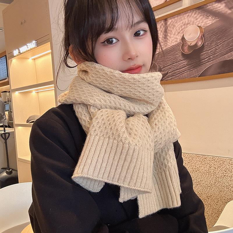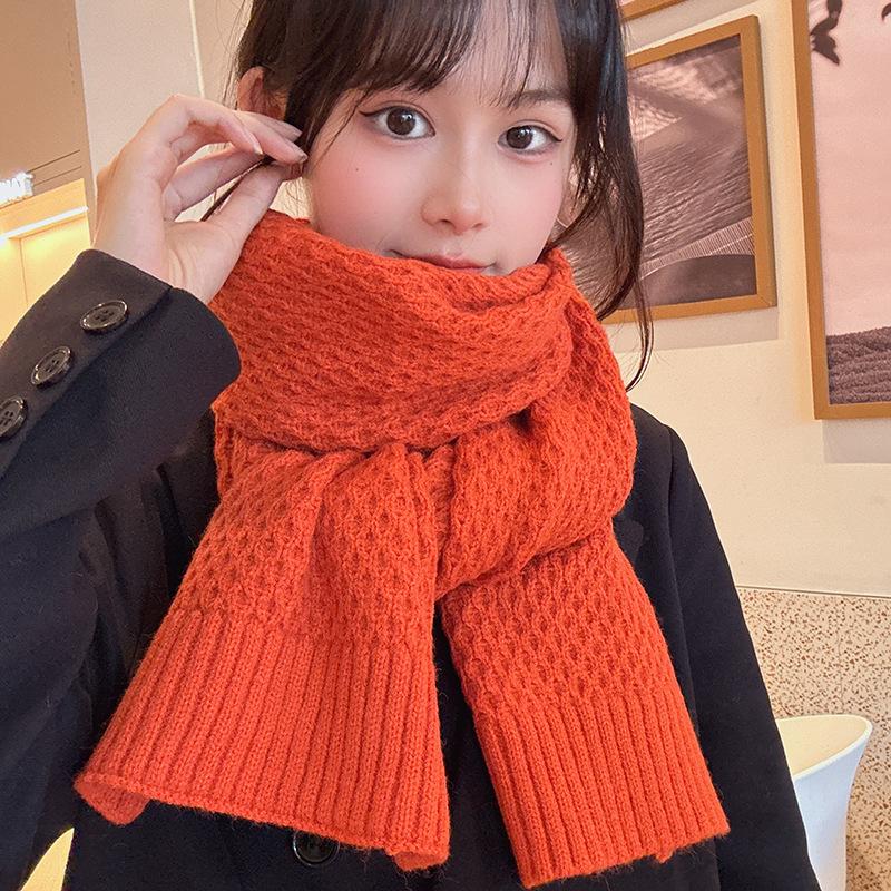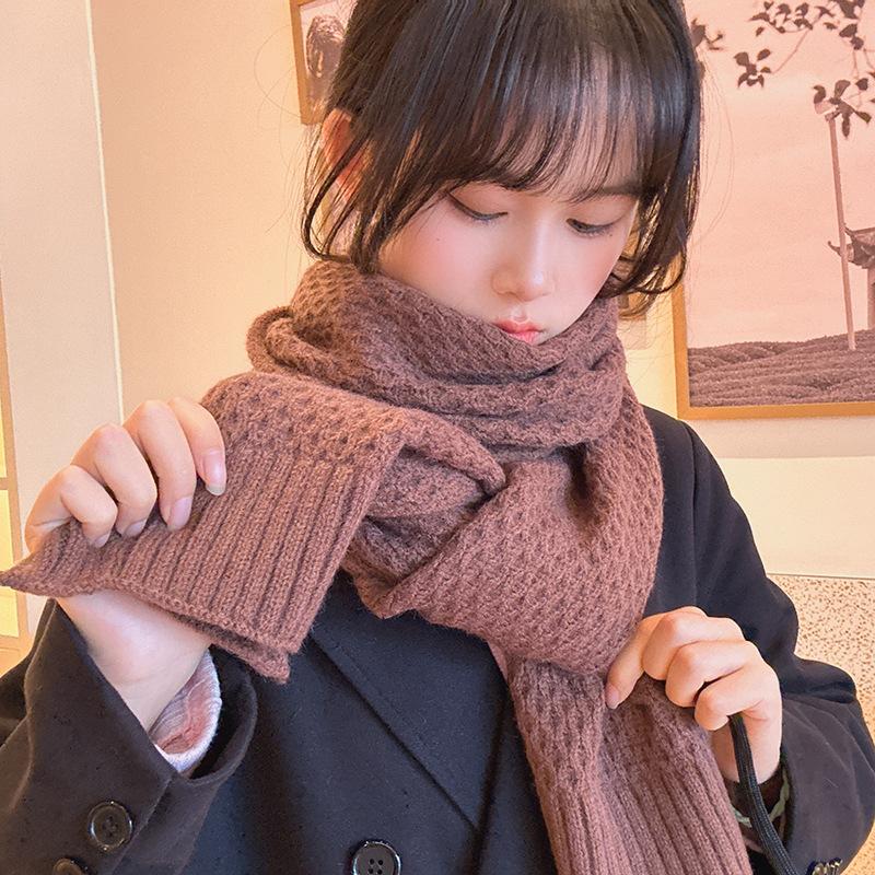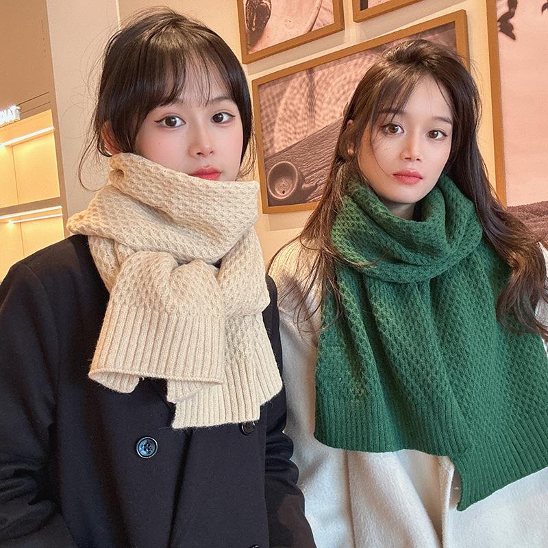 Regla blanca ~ azul oscuro azul claro * color sólido estilo coreano versátil bufanda cálida bufanda de lana tejida para estudiantes otoño e invierno