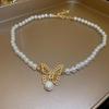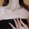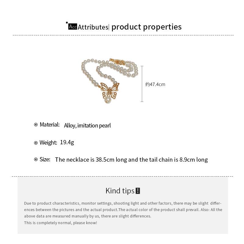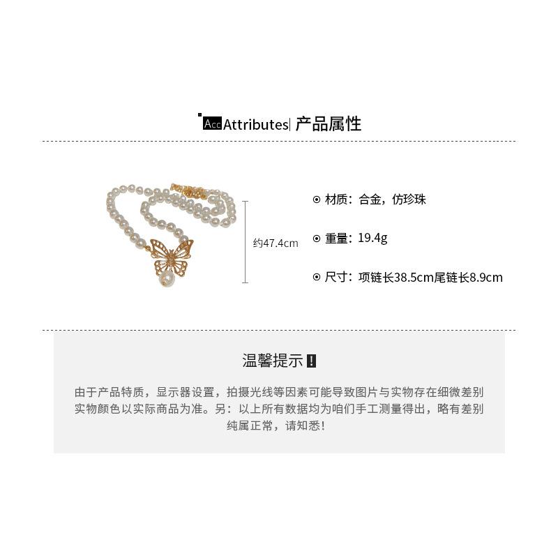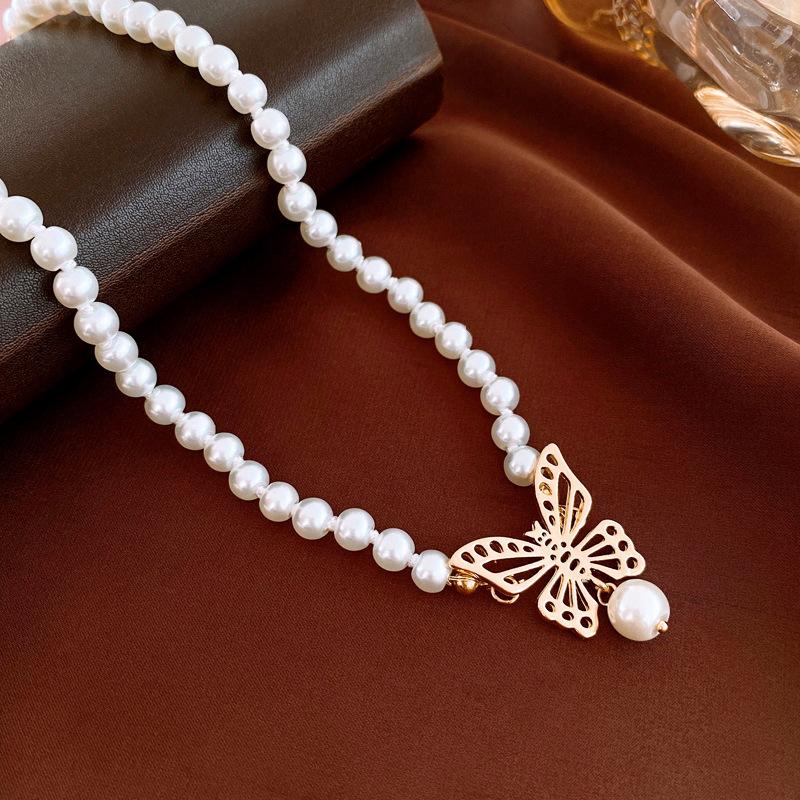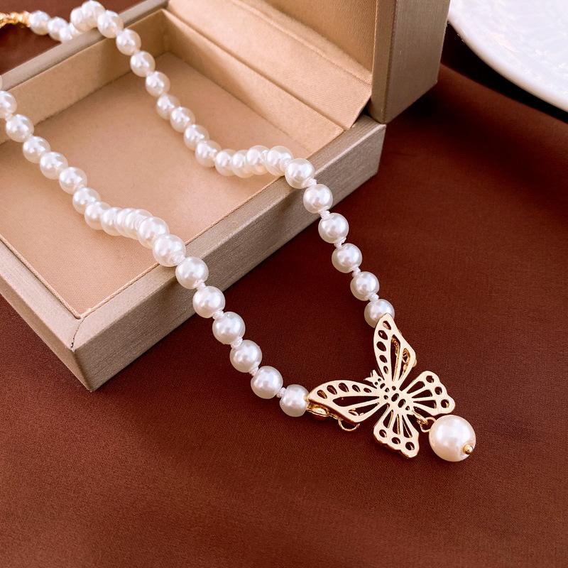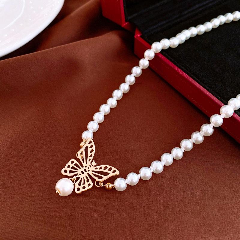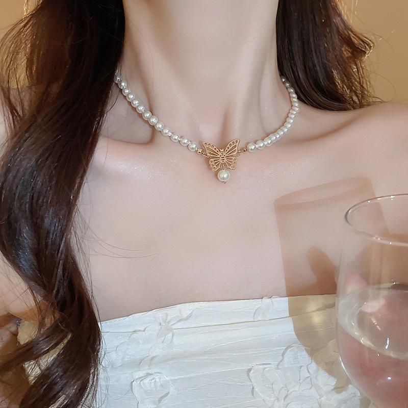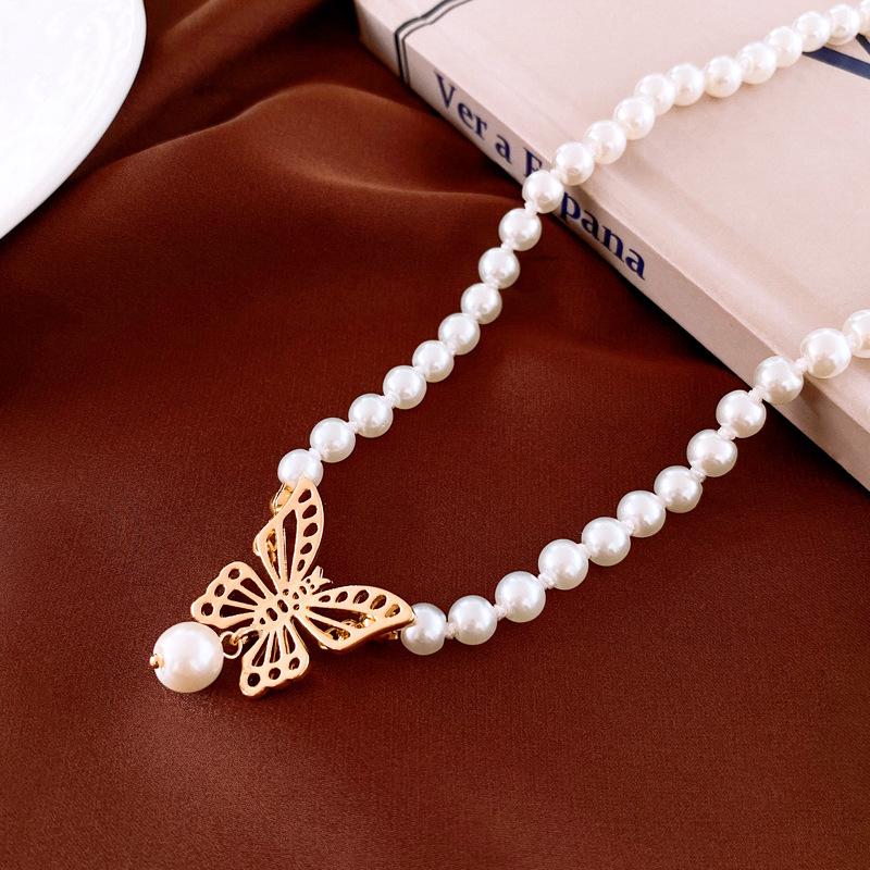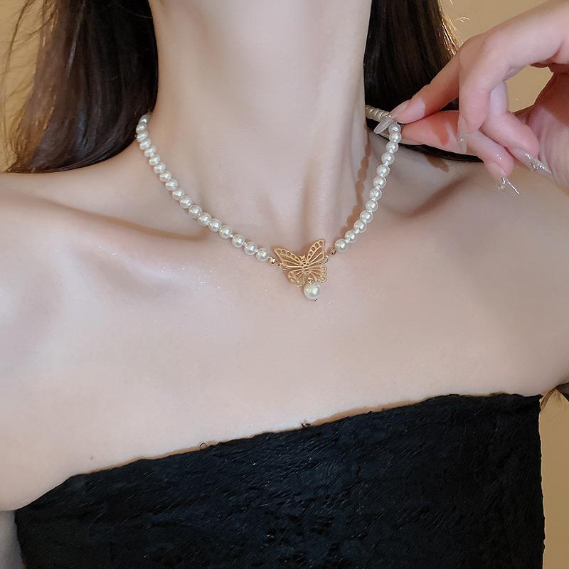 Gargantilla de perlas de imitación con forma de mariposa hueca metálica, elegante y sencilla, de alta calidad, para mujer.