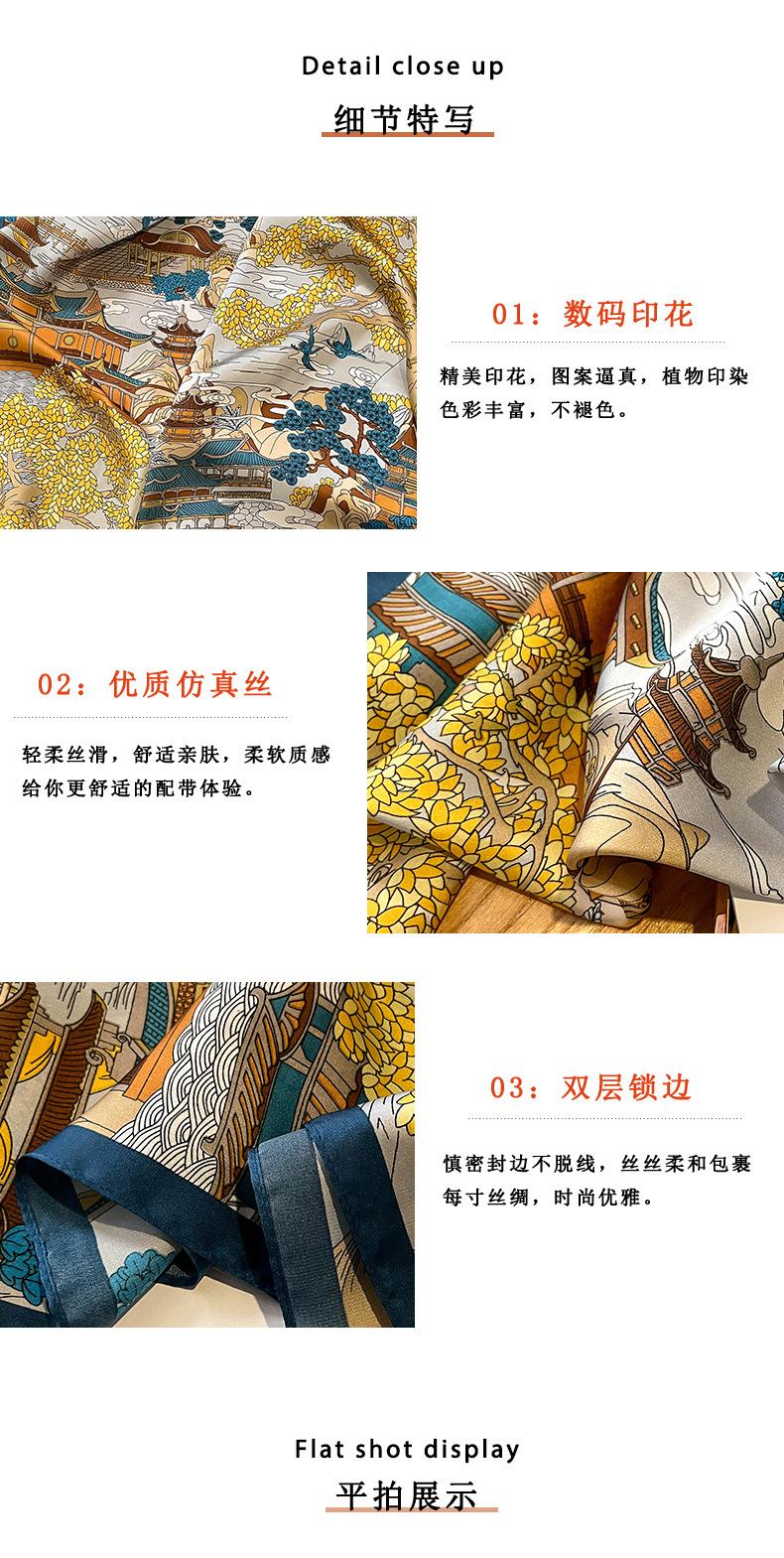 | Bufanda de seda retro, bufanda estrecha y larga de imitación de seda, decoración femenina con esquinas afiladas, decoración de moda, diadema de seda, bufanda al por mayor |