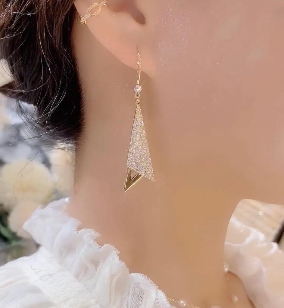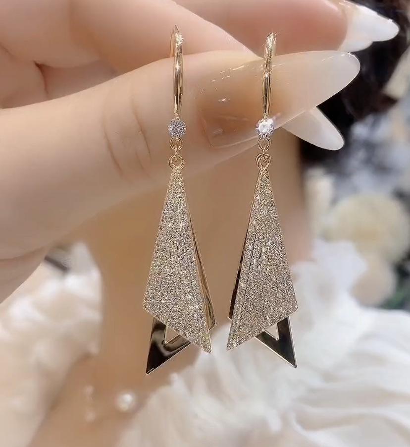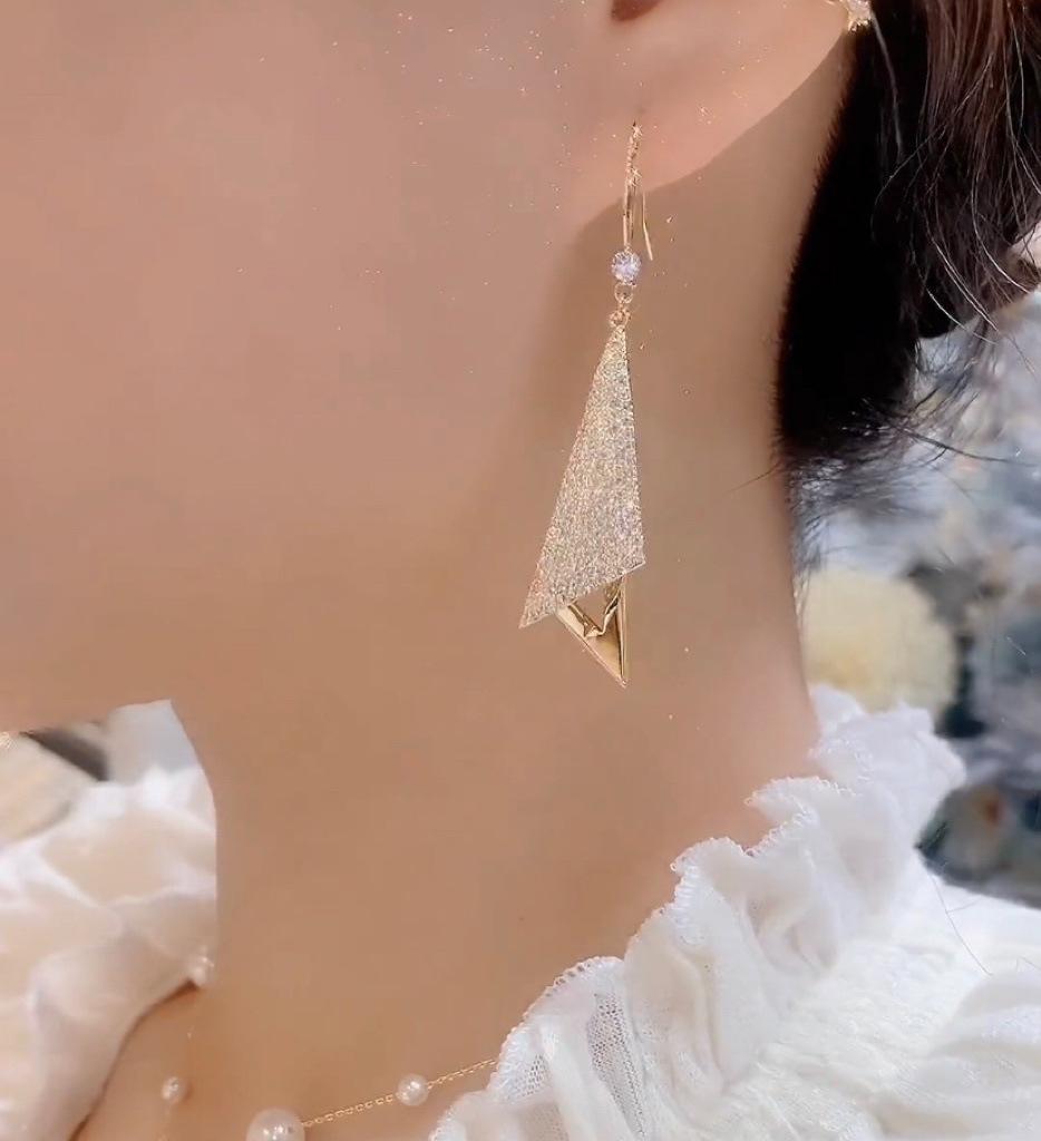 Pendientes elegantes de lujo con microincrustaciones de diamantes, ligeros y de estilo triangular geométrico, con personalidad, diseño de nicho, para mujer, 2023.