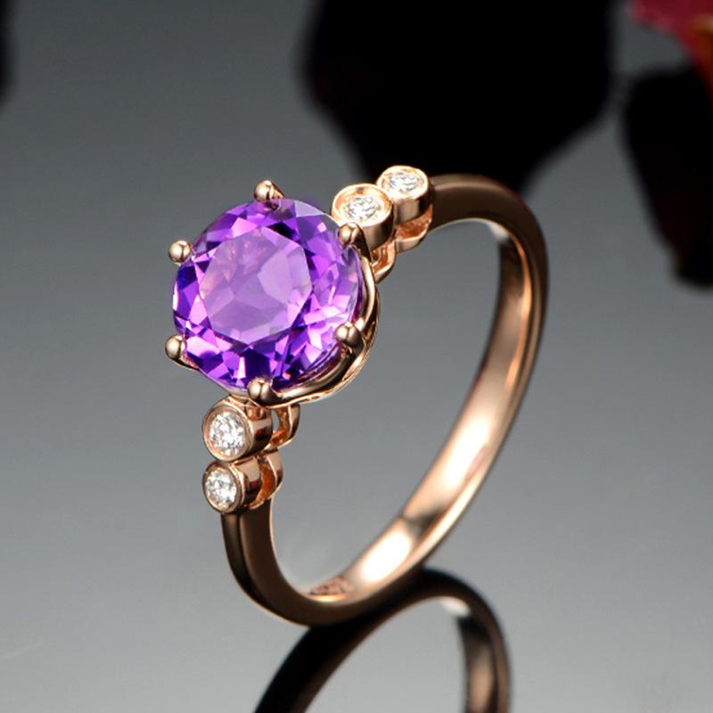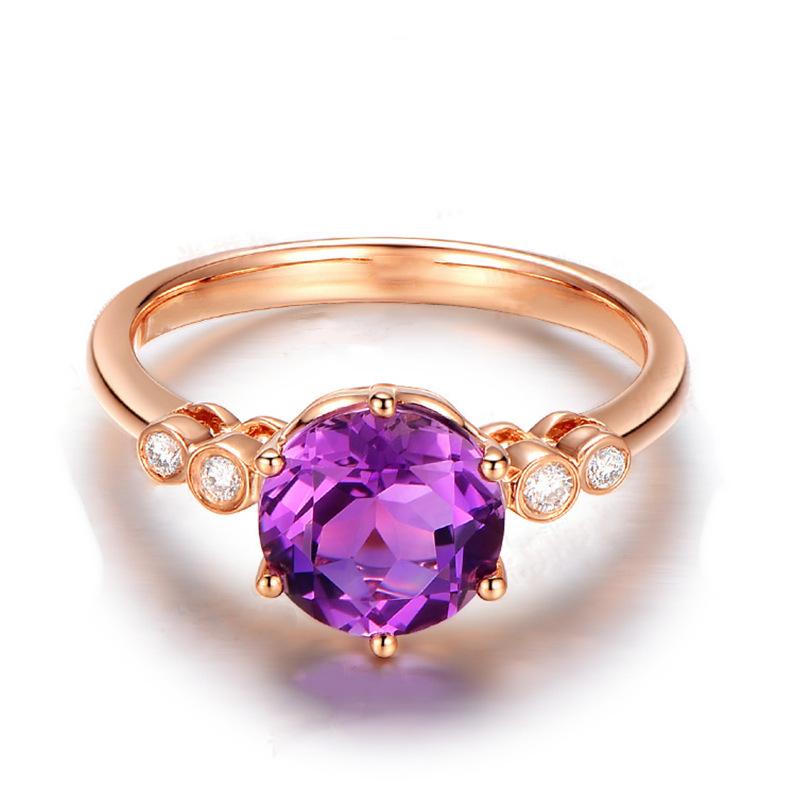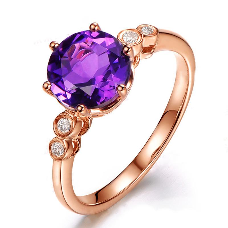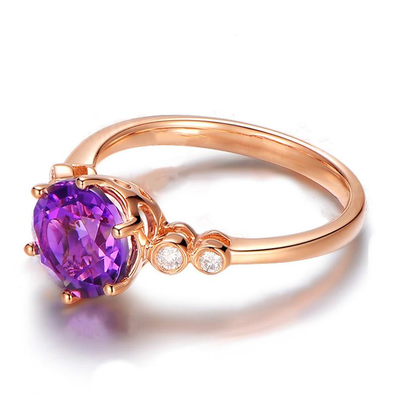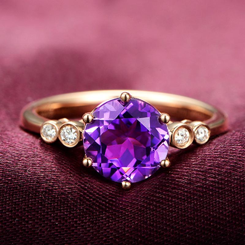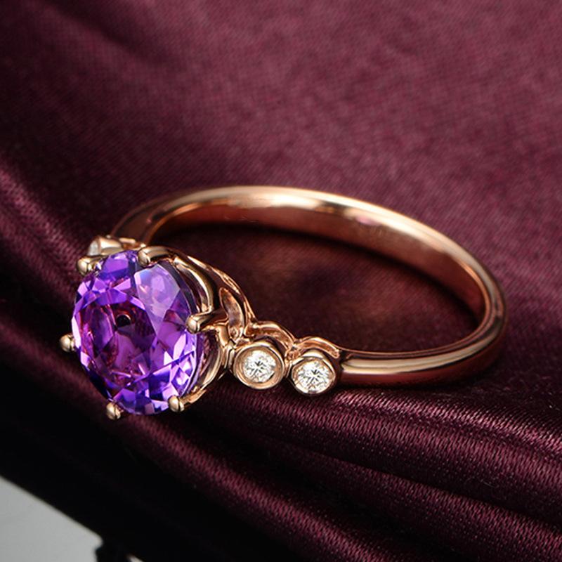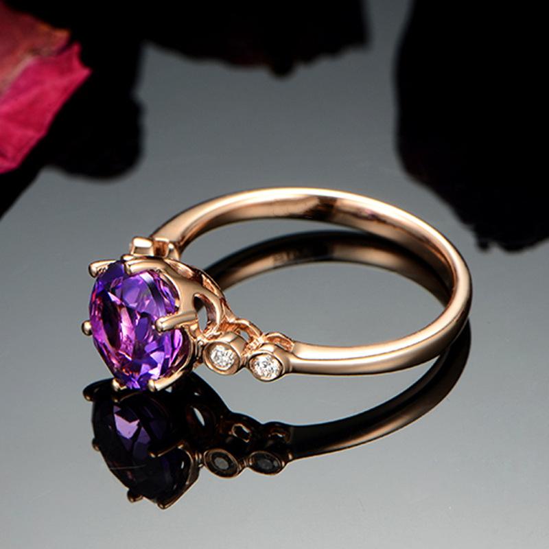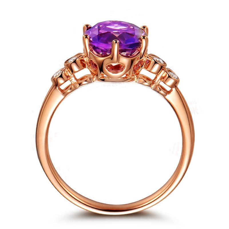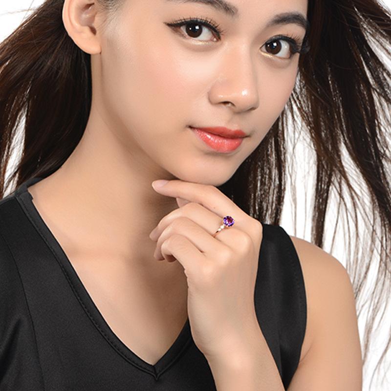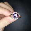 Anillo abierto de circonita morada bañado en oro rosa de 18 k con imitación de amatista natural. Anillo de compromiso Caibao con diamantes.