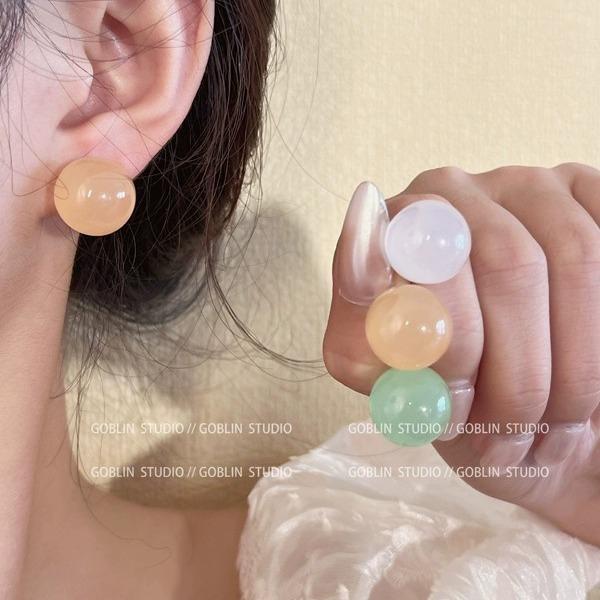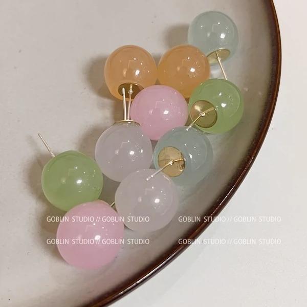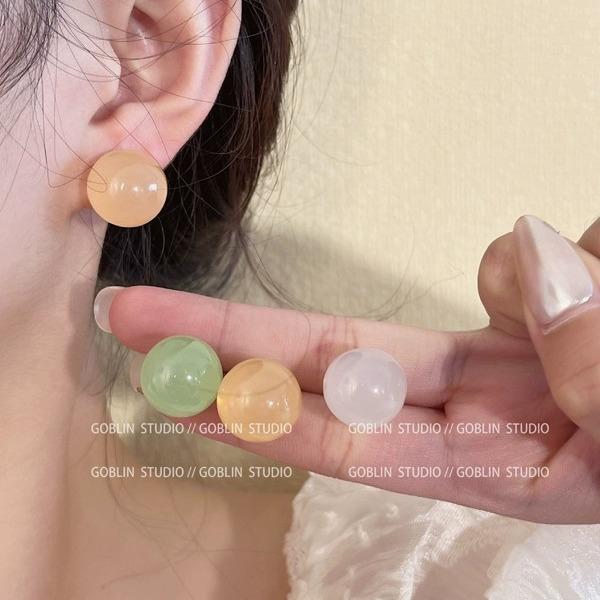 Pendientes de cuentas redondas de color acrílico para mujer, nuevos pendientes versátiles de primavera y verano, pendientes de temperamento simple de alta gama