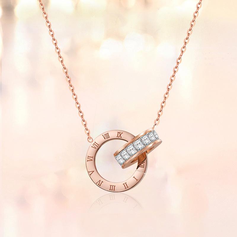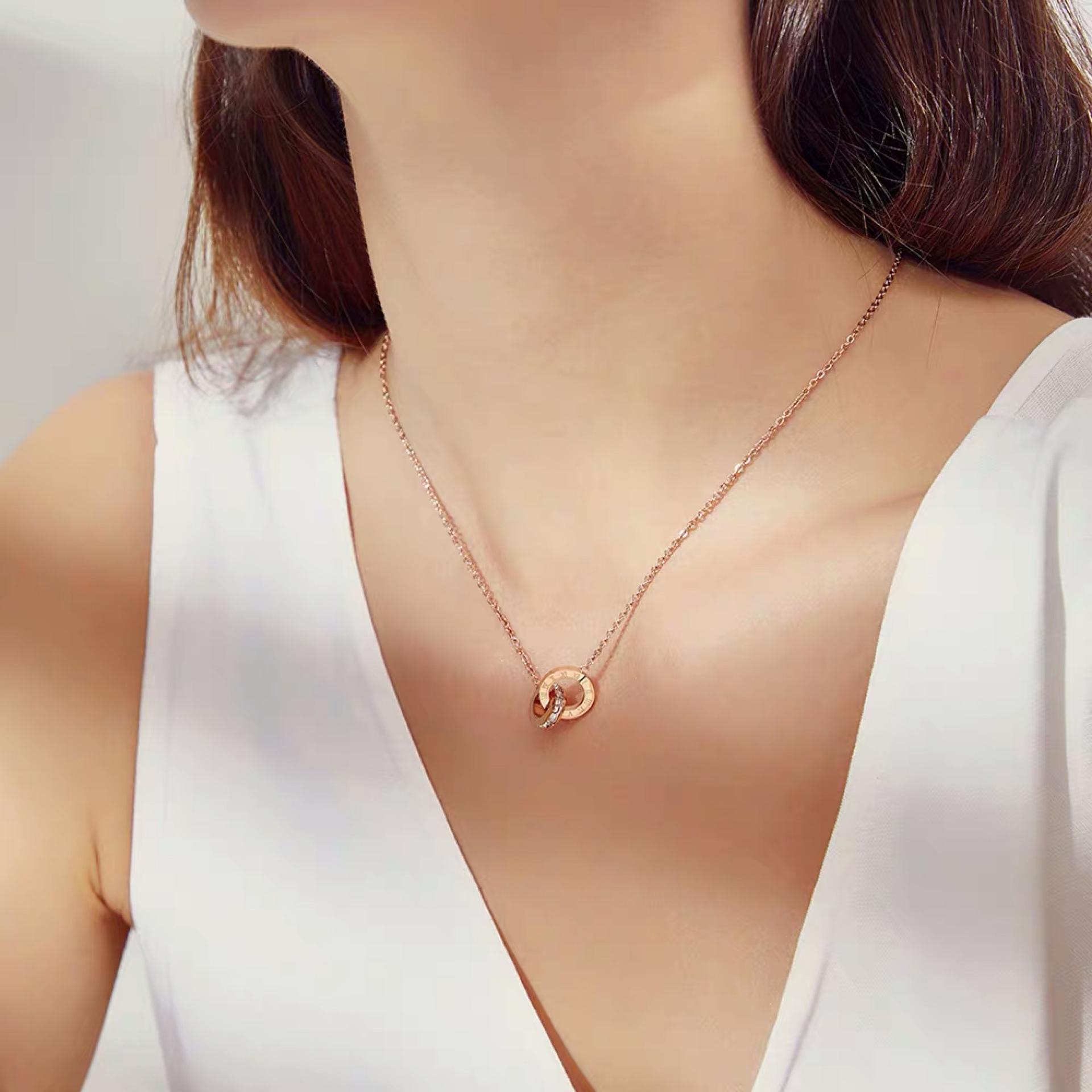 Compra Collar de doble anillo digital romano de lujo ligero de plata esterlina s925 para mujer, estilo japonés y coreano, elegante y sencillo, regalo para estudiantes, cadena de clavícula. al por mayor en Joom.pro