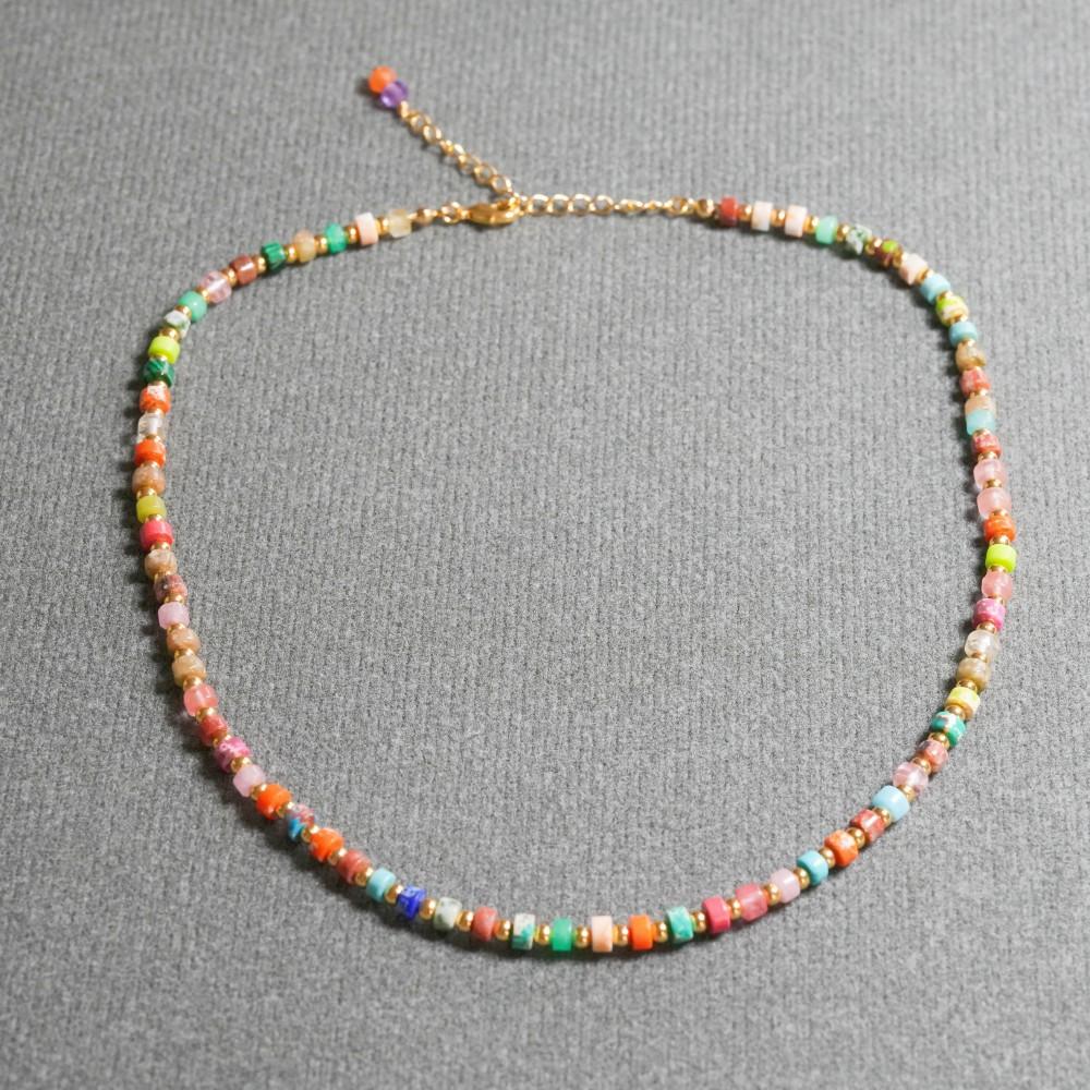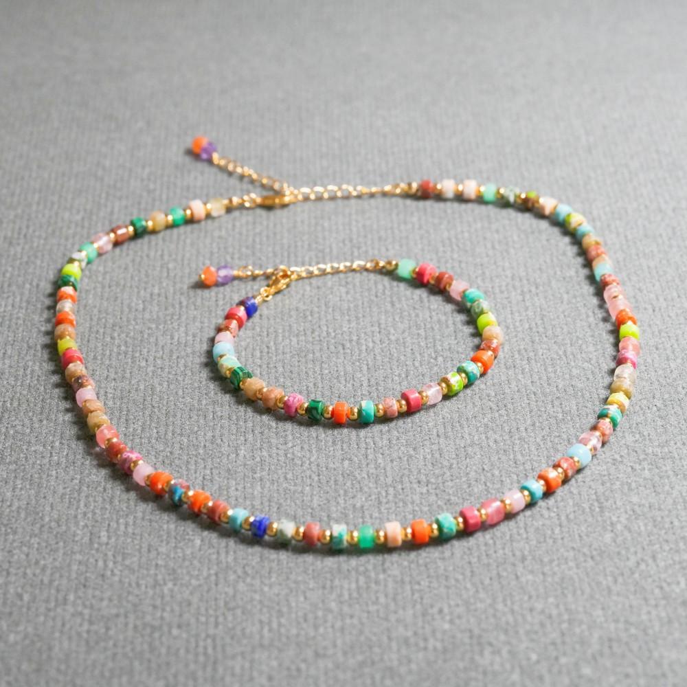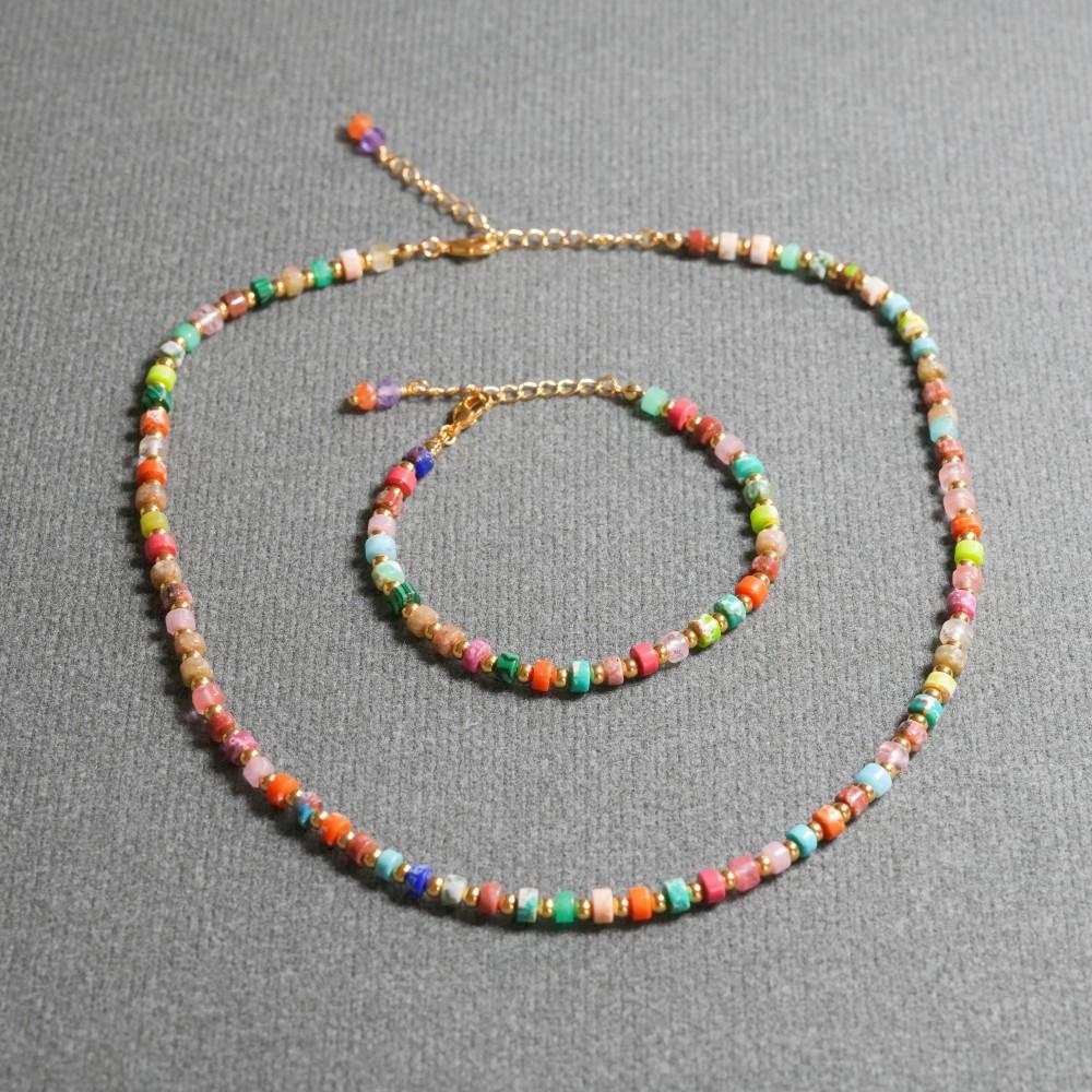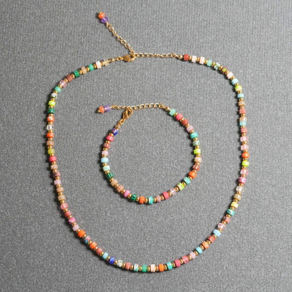 Compra Collar pulsera traje collar al por mayor estilo bohemio japonés y coreano colorido cilíndrico piedra de color natural con cuentas al por mayor en Joom.pro